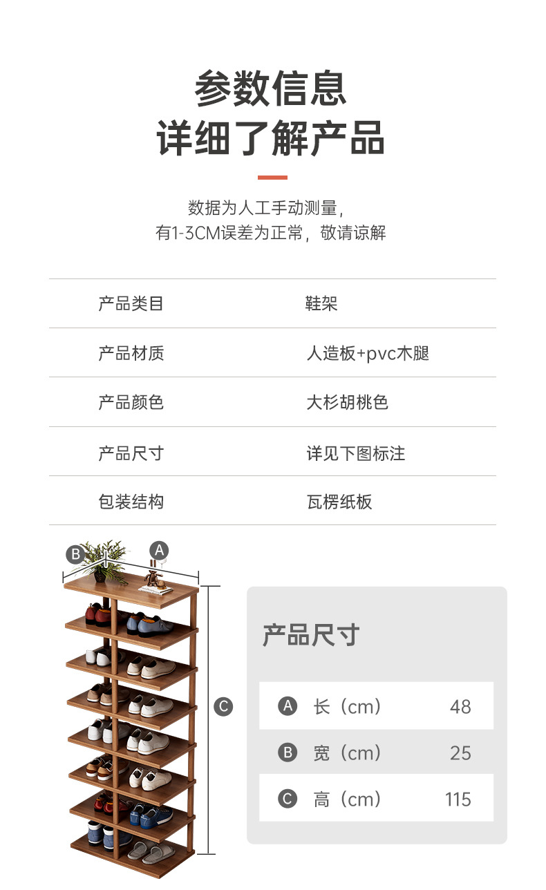 • [6겹 2cm 증가] 대형 전나무 호두색 48*24*82cm (참고: 밀도판입니다)