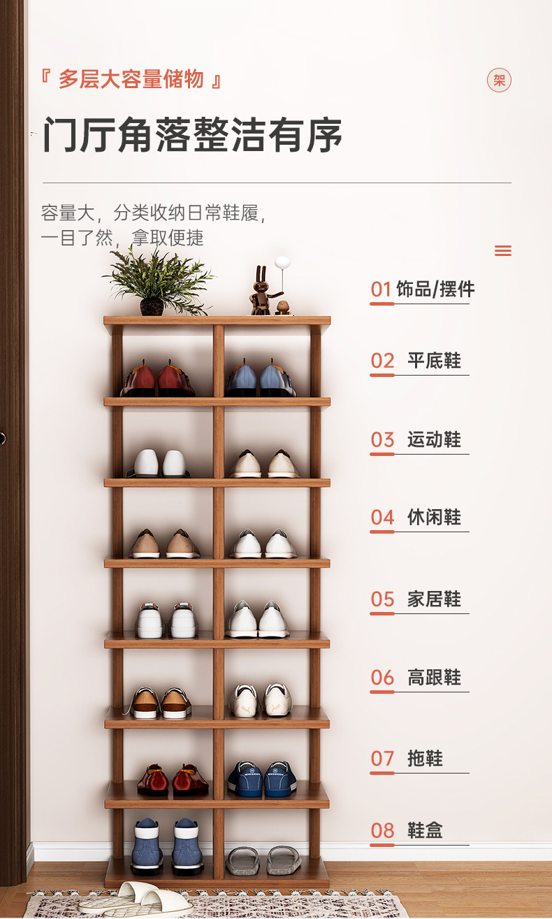 신발장 간단한 문 작은 좁은 보관 유물 공간 절약형 계층 파티션 항목 임대 기숙사 신발장 단단한 나무 다리