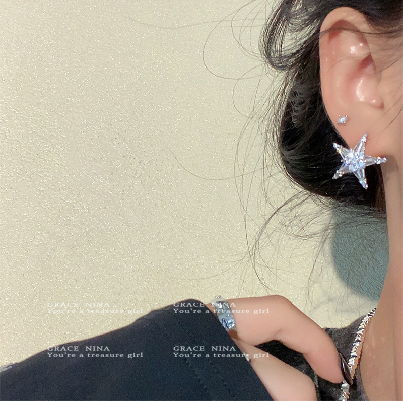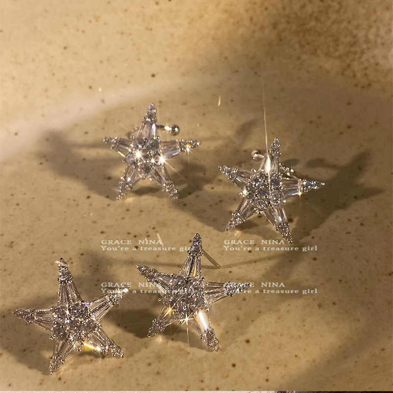 빛나지 마세요! 작고 절묘한 5 각형 별 귀걸이 여성 틈새 디자인 감각 그물 빨간 귀걸이 기질 모든 매치 귀걸이