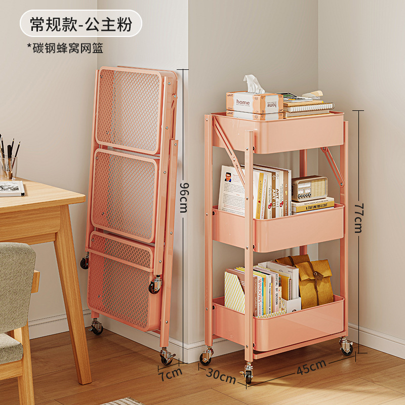 접이식 카트 책장 보관 랙 바닥 침실 스낵 랙 모바일 바퀴 달린 주방 수납 랙