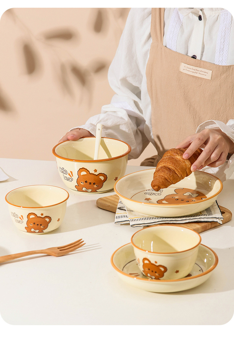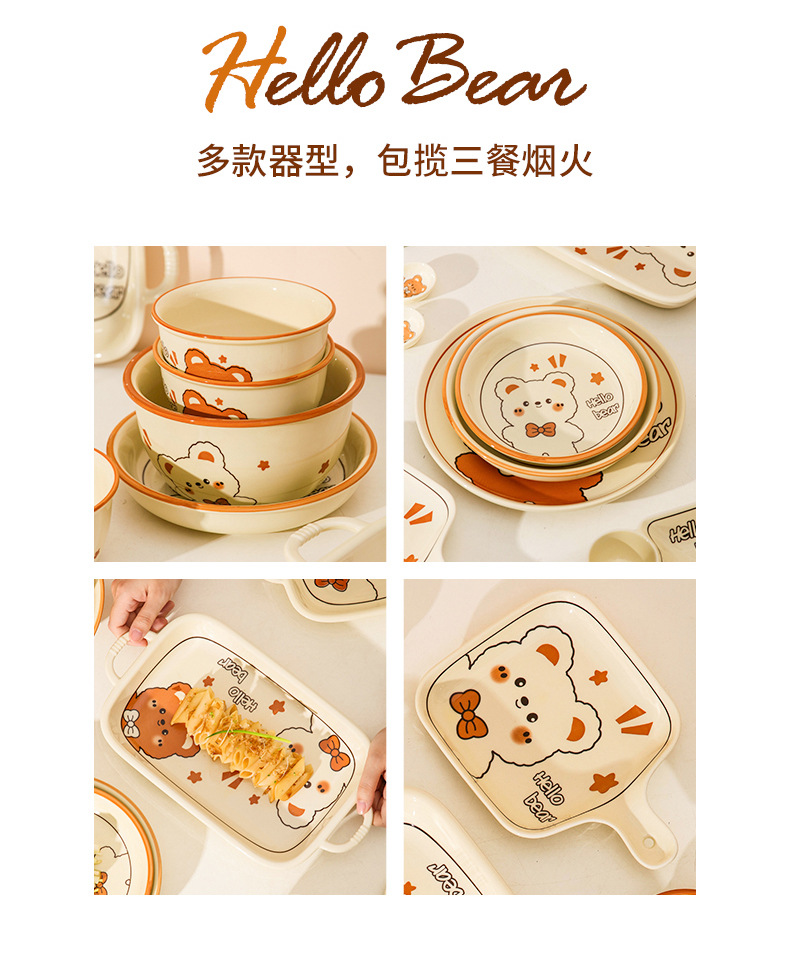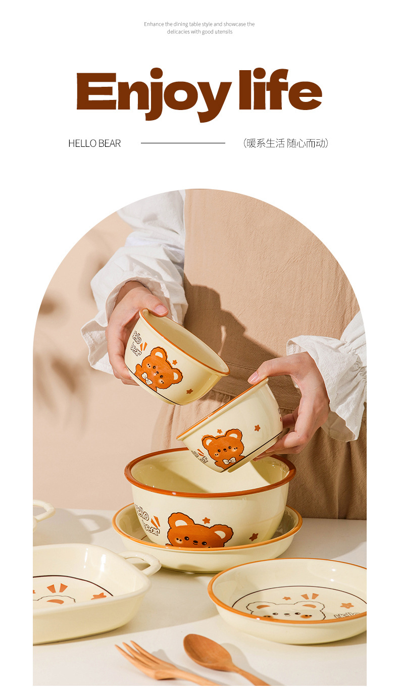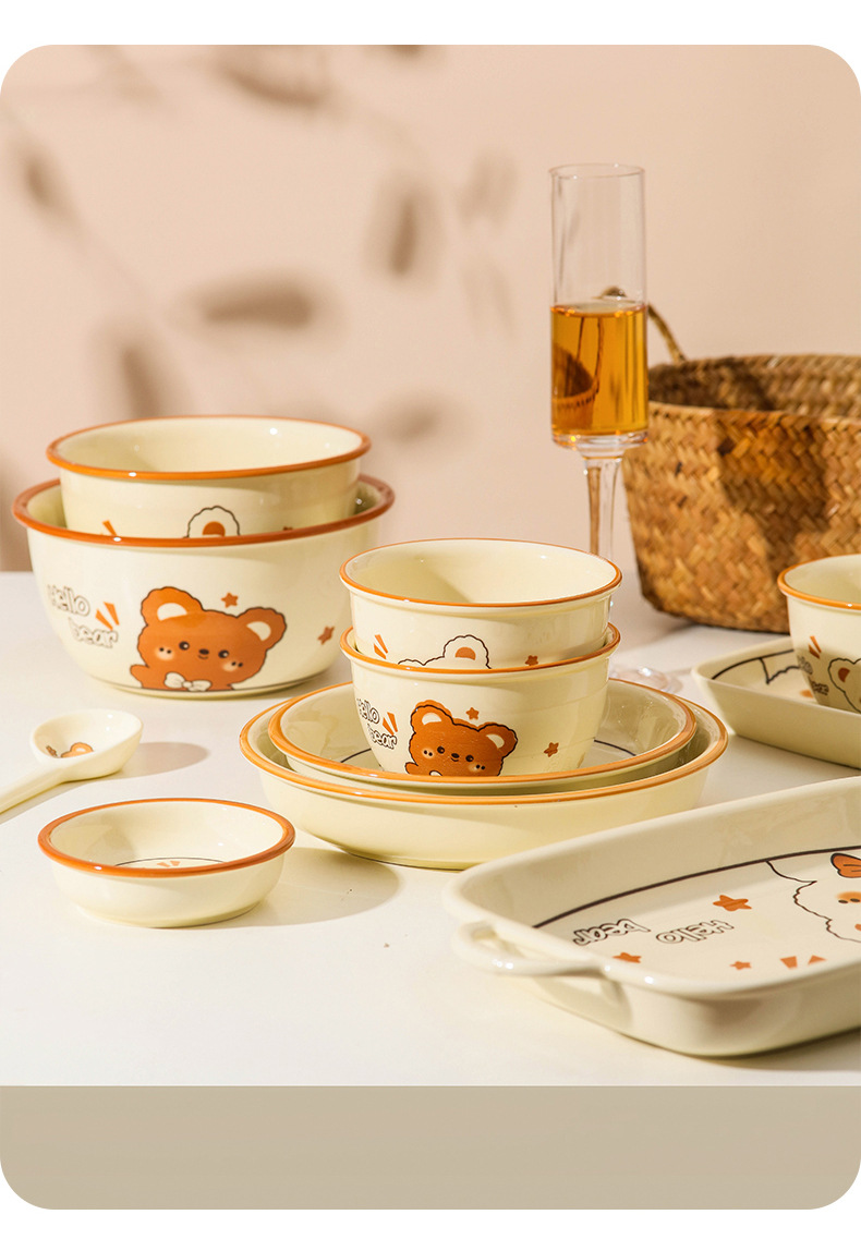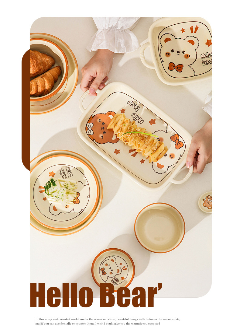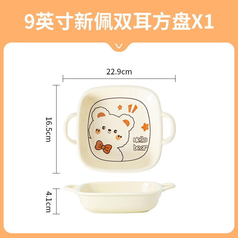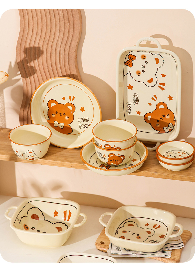 그릇에 높은 가치 만화 귀여운 Mengeng 곰 가정용 세라믹 그릇 세트 식기 밥그릇 더블 귀 그릇 접시