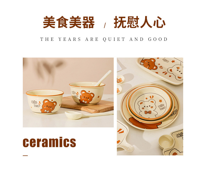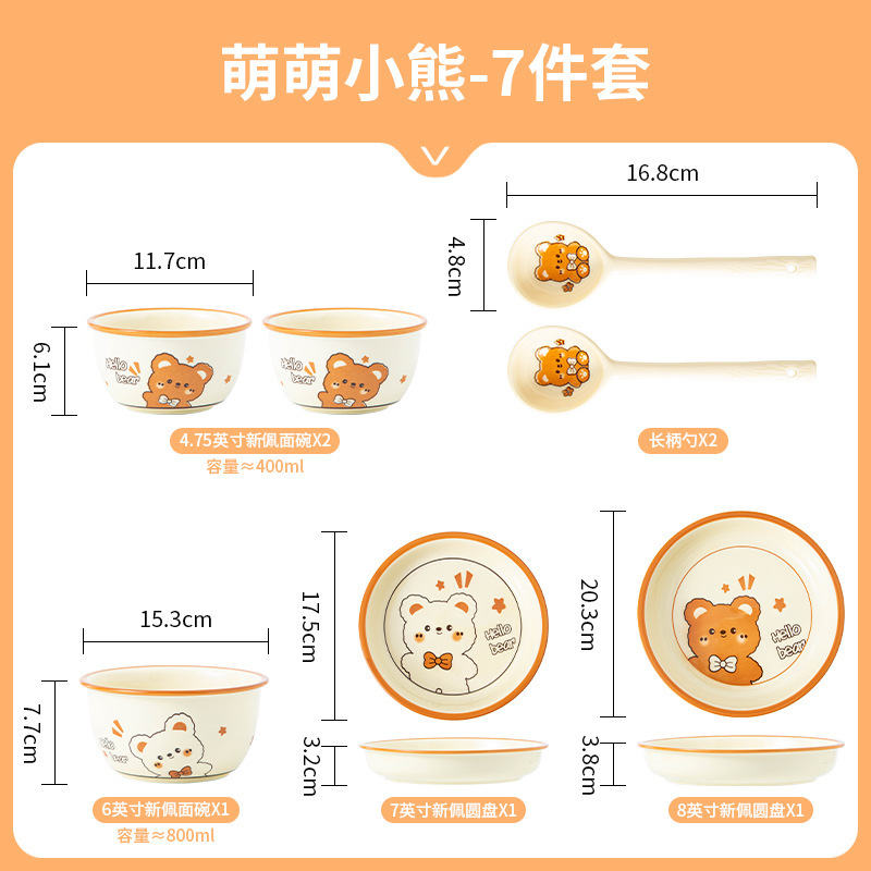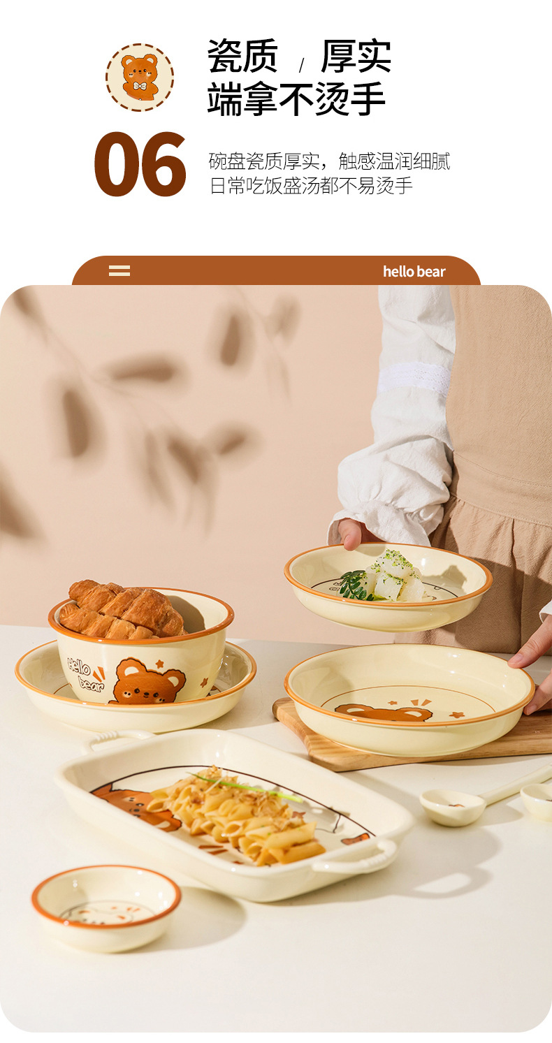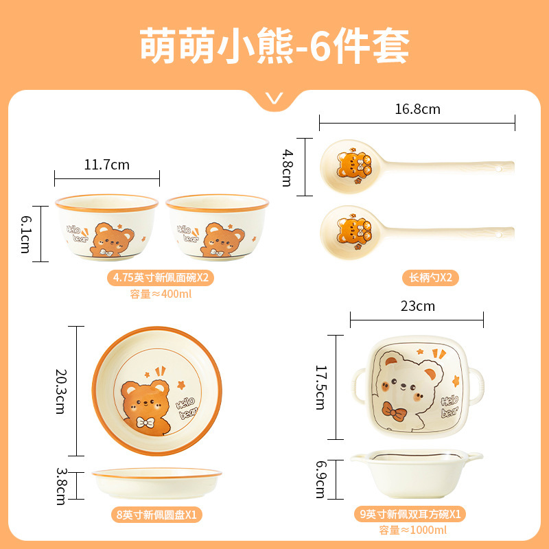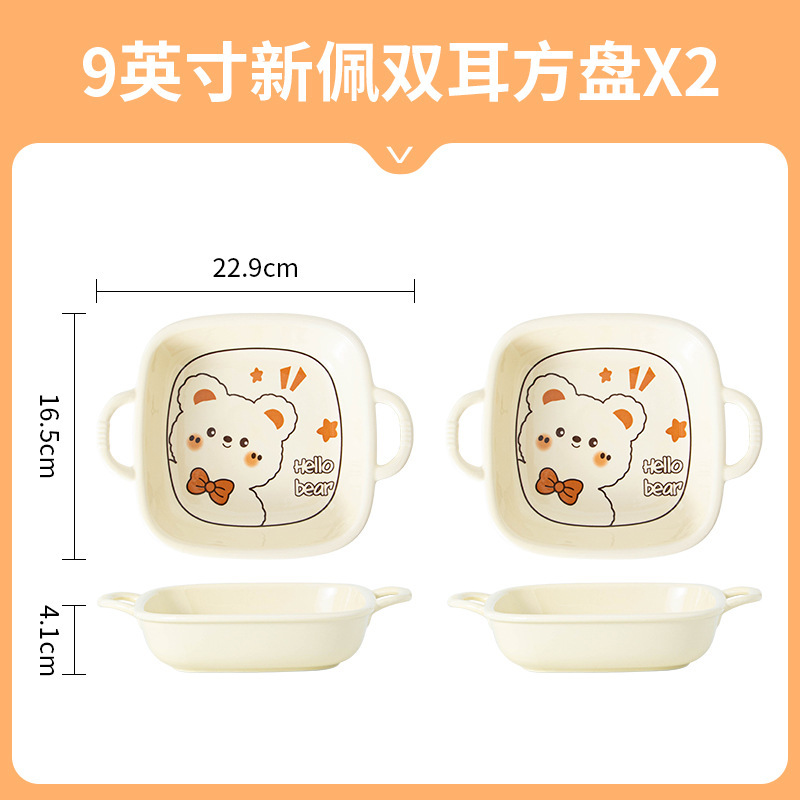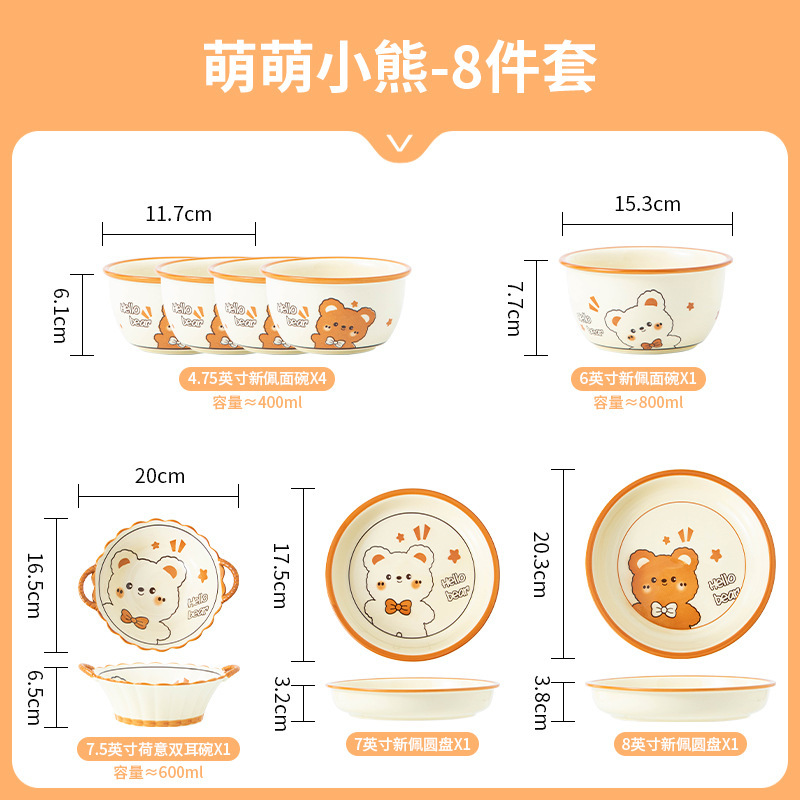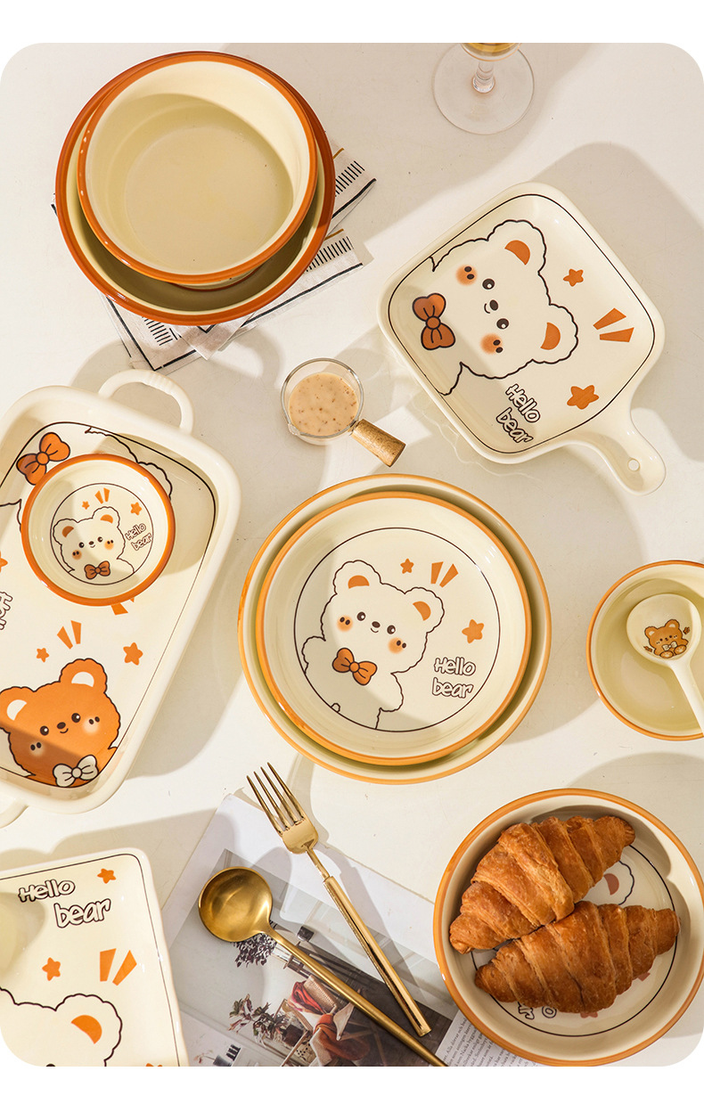 그릇에 높은 가치 만화 귀여운 Mengeng 곰 가정용 세라믹 그릇 세트 식기 밥그릇 더블 귀 그릇 접시
