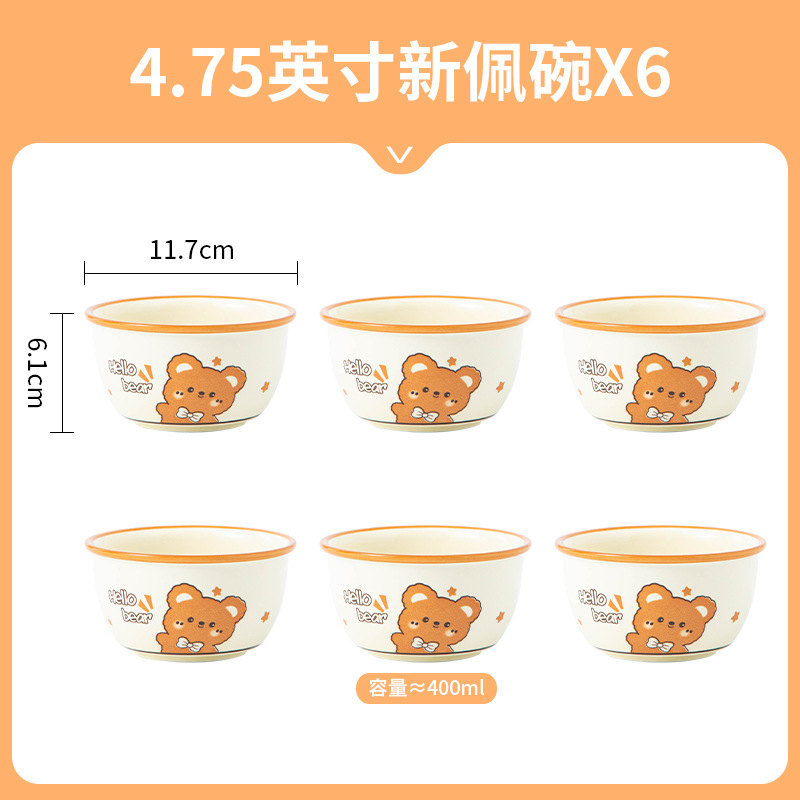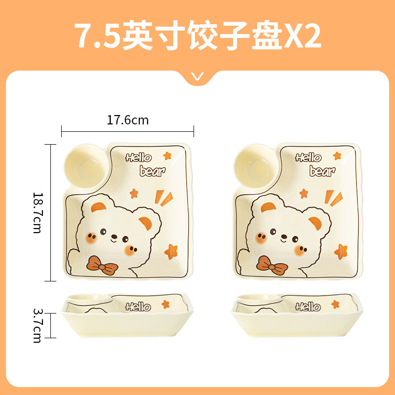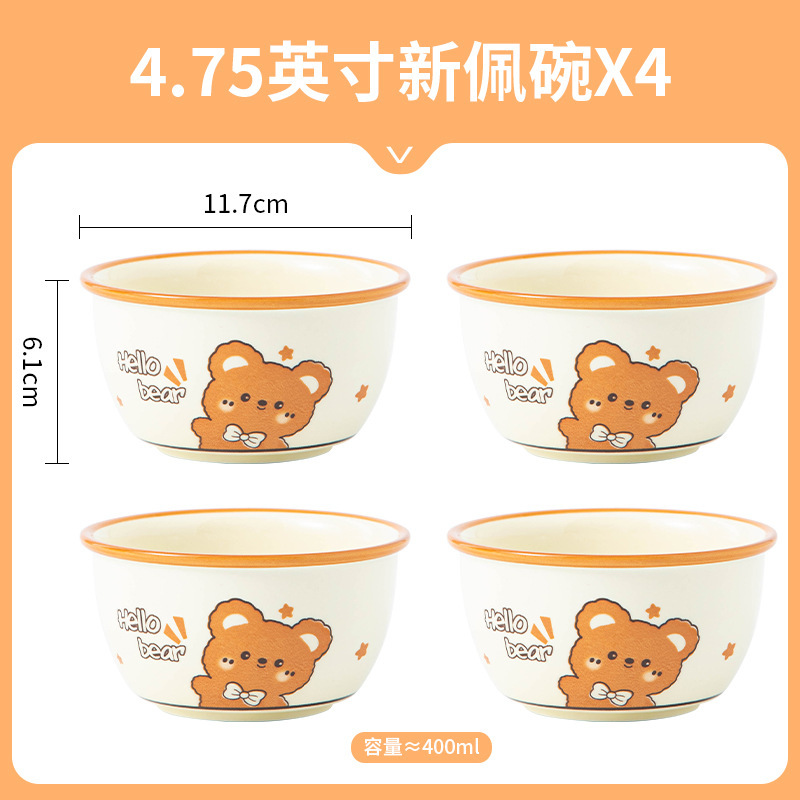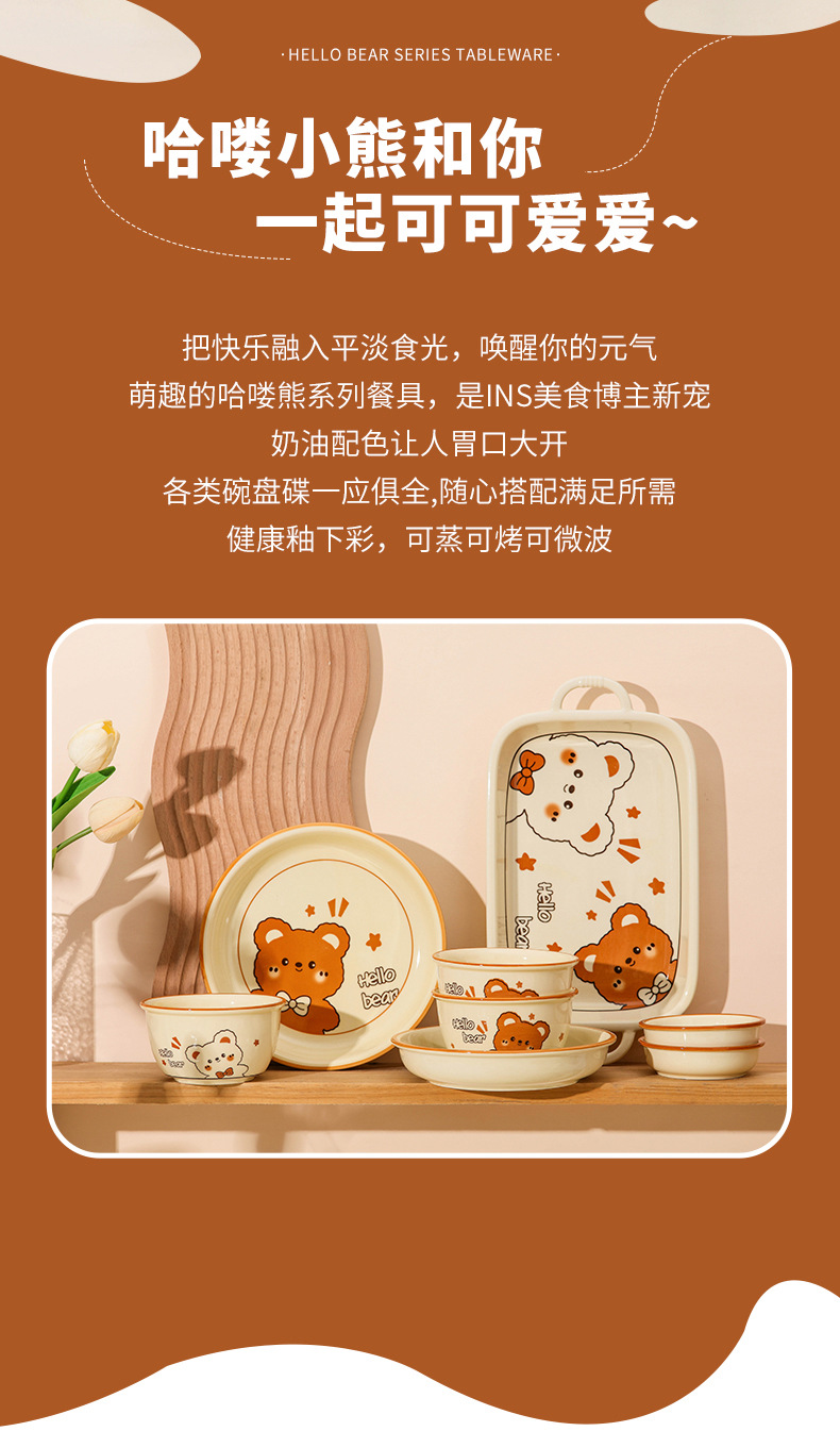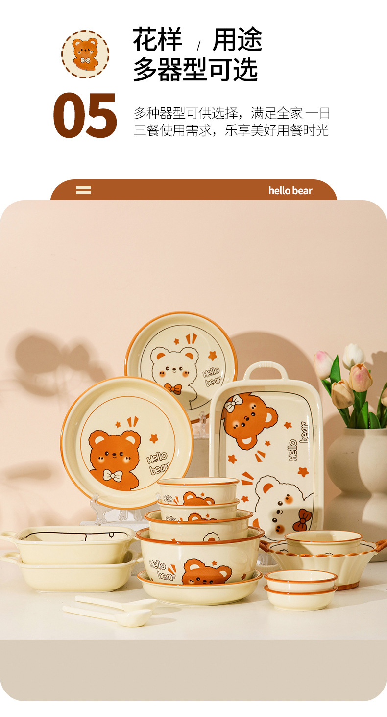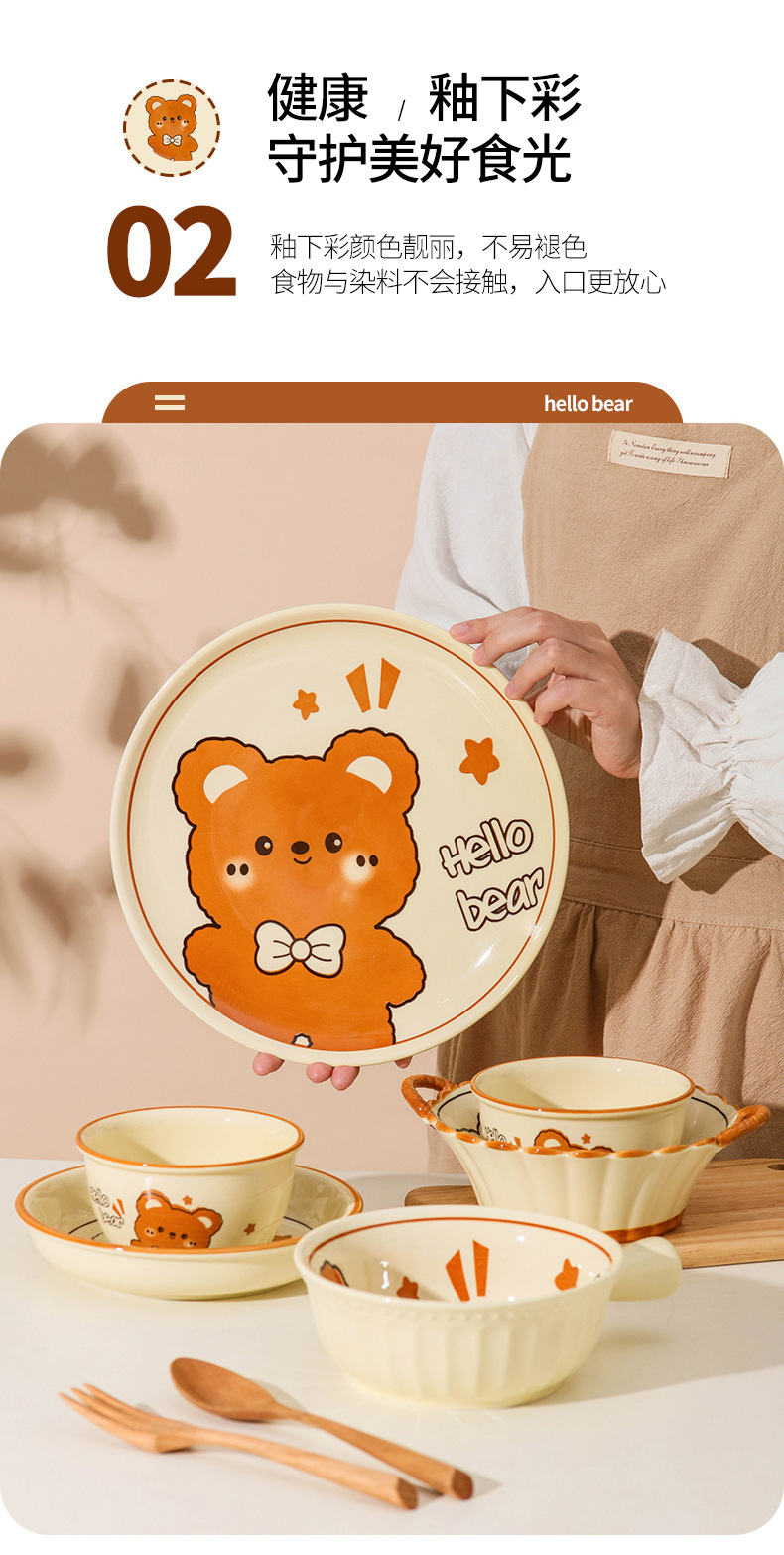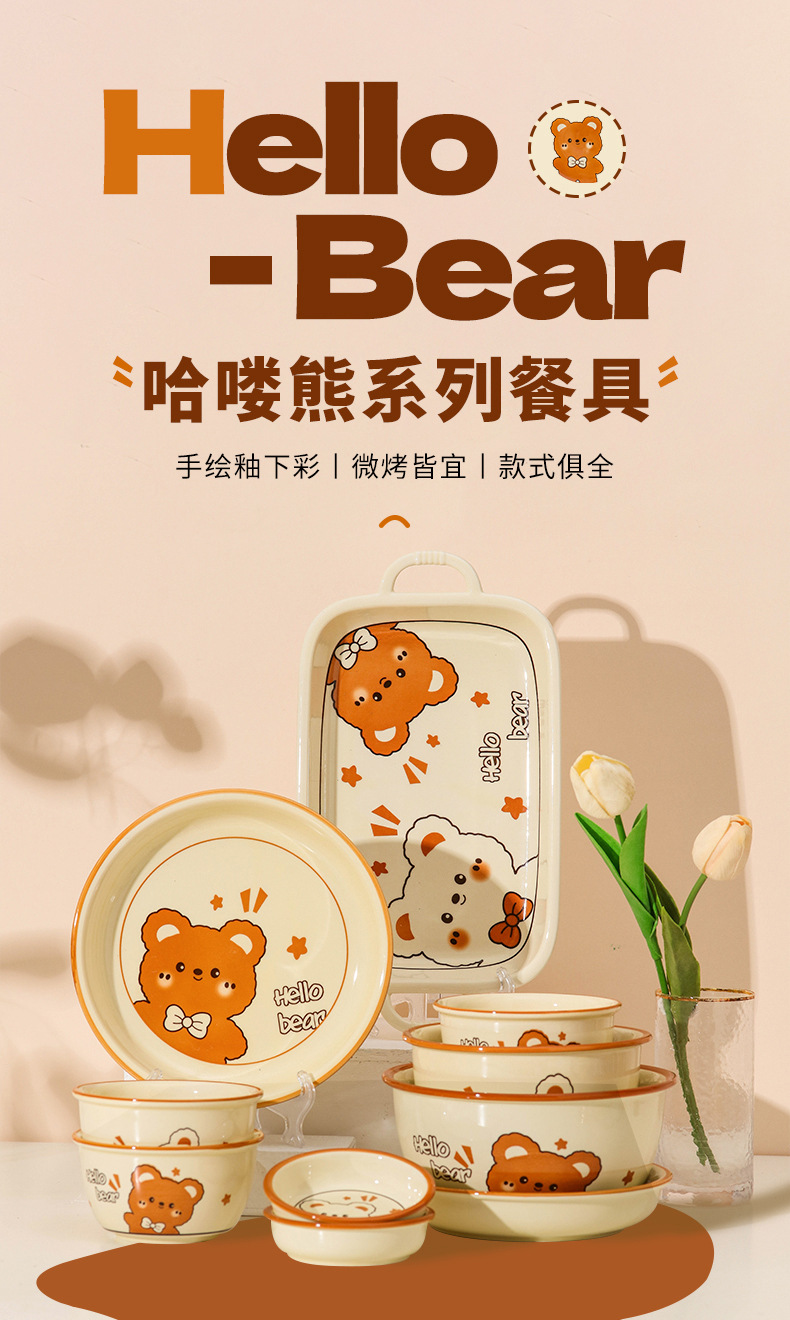 그릇에 높은 가치 만화 귀여운 Mengeng 곰 가정용 세라믹 그릇 세트 식기 밥그릇 더블 귀 그릇 접시