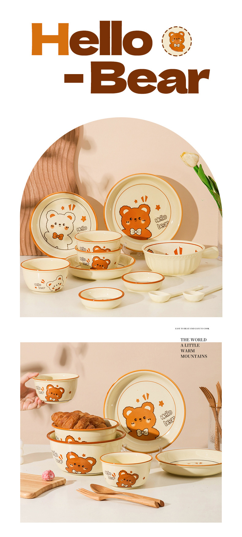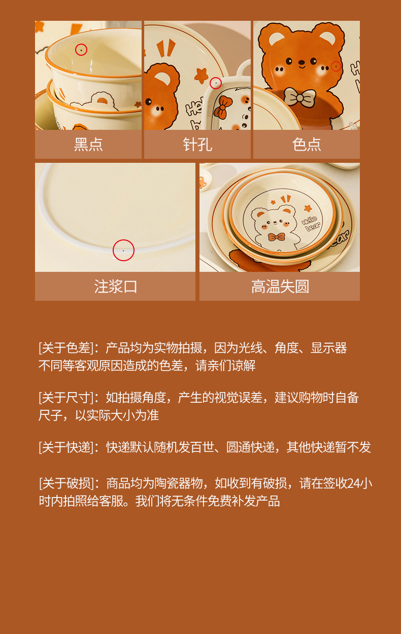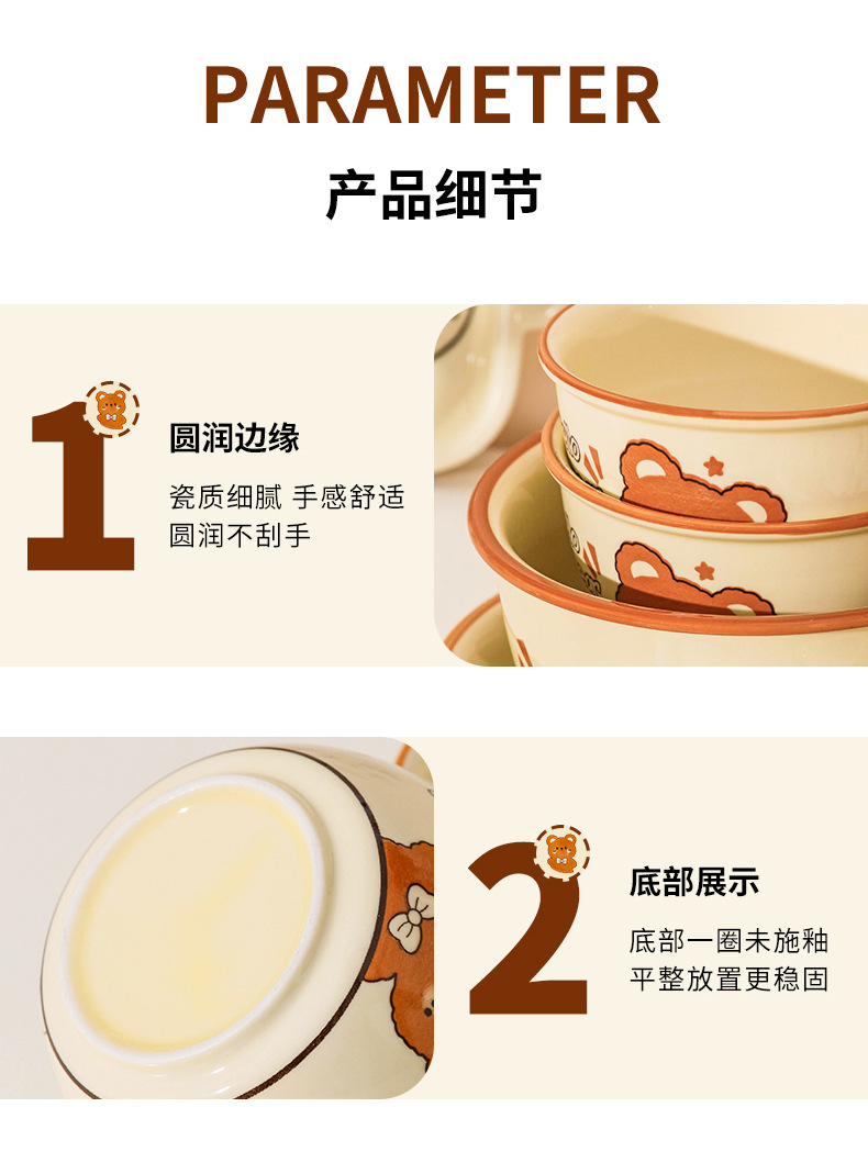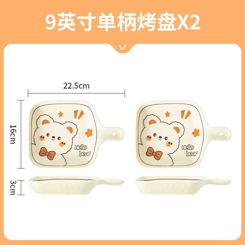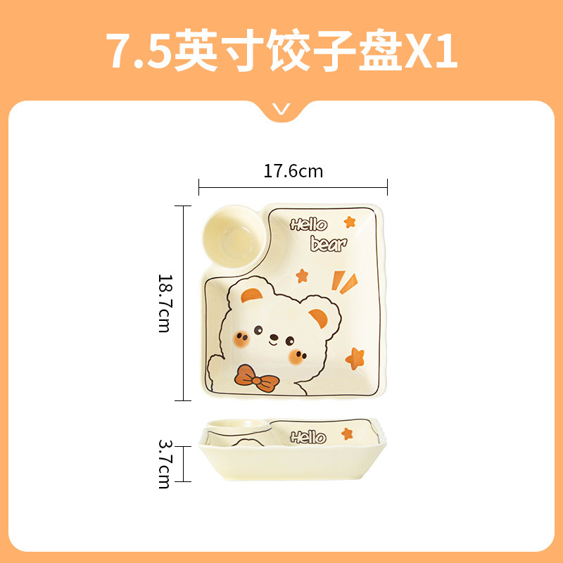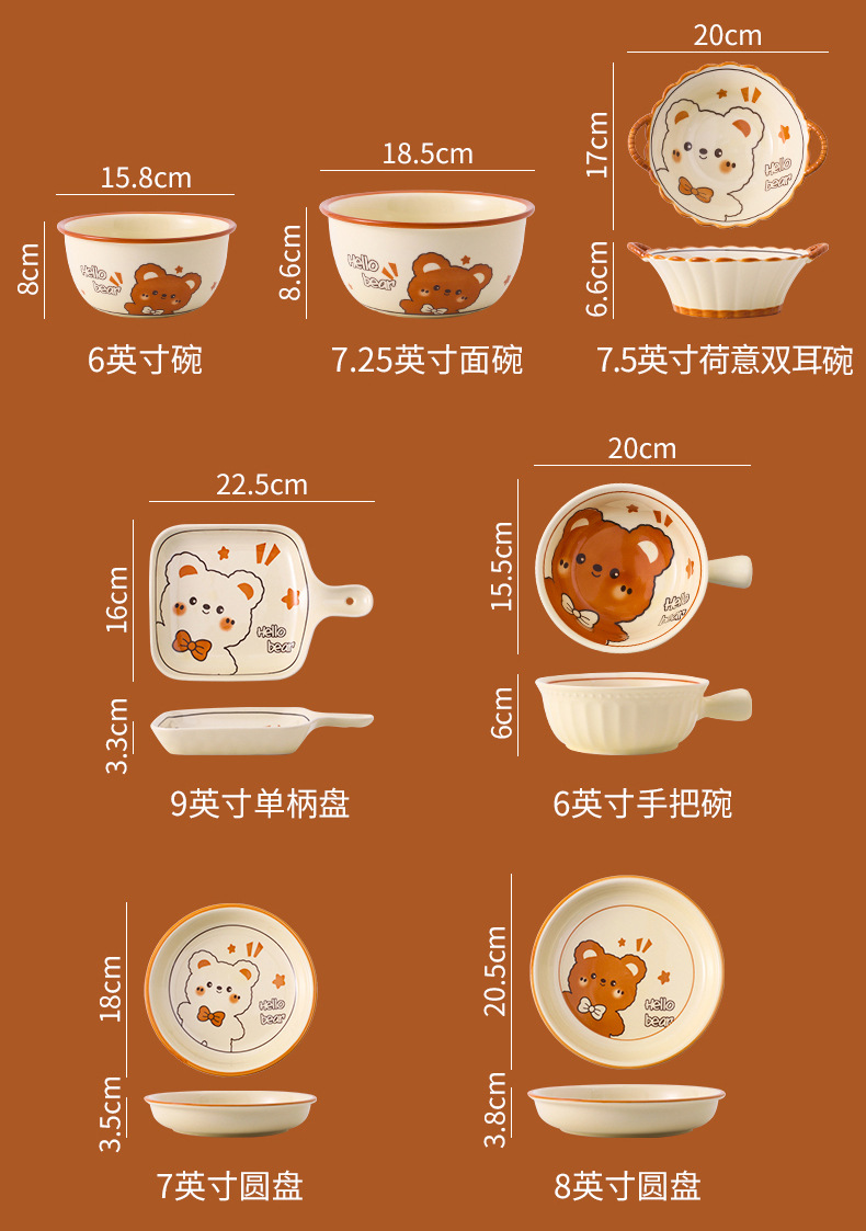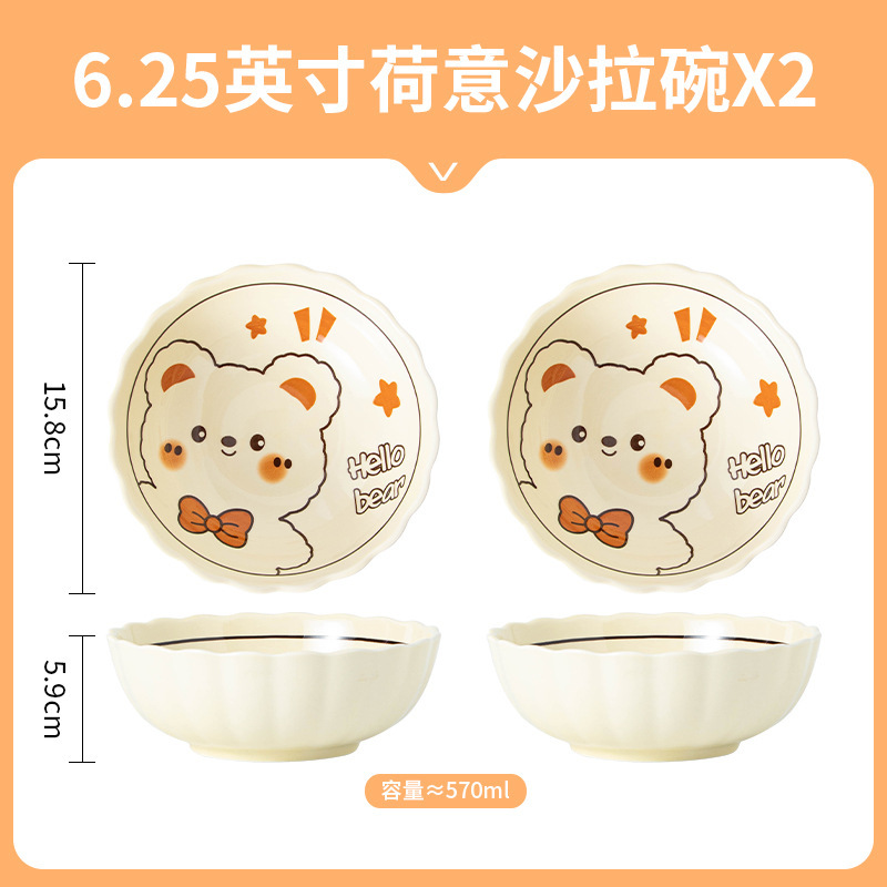 그릇에 높은 가치 만화 귀여운 Mengeng 곰 가정용 세라믹 그릇 세트 식기 밥그릇 더블 귀 그릇 접시