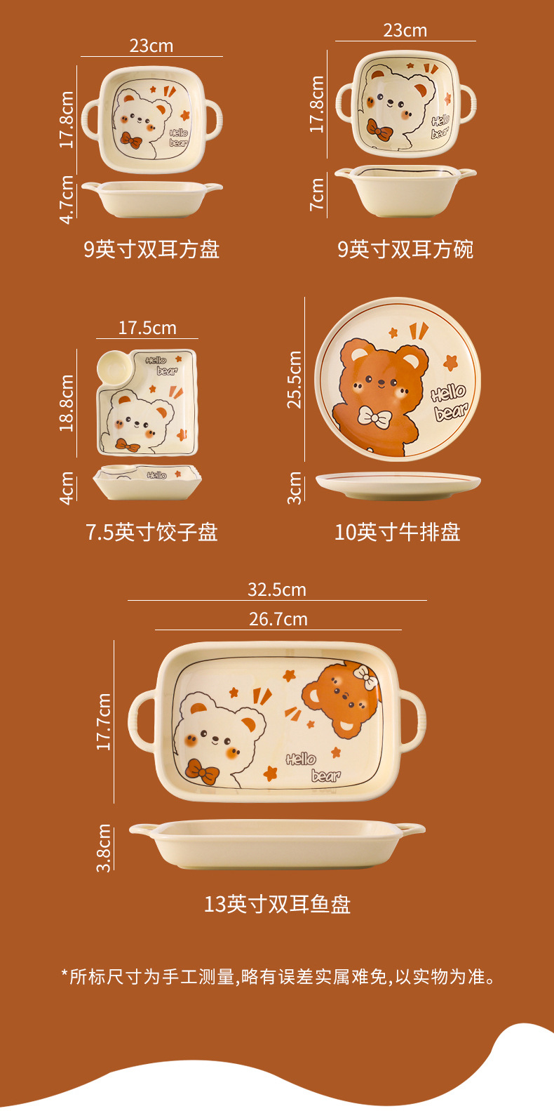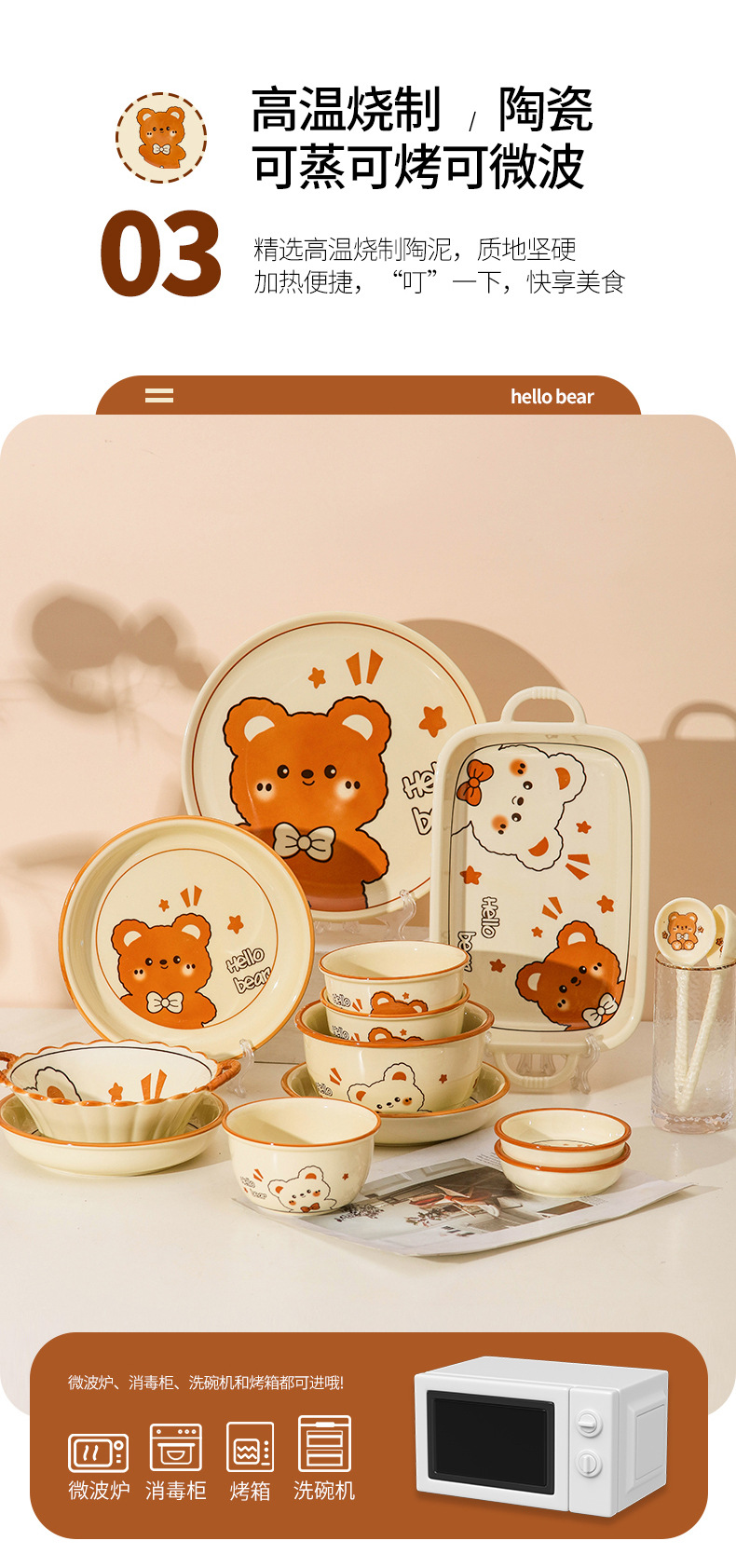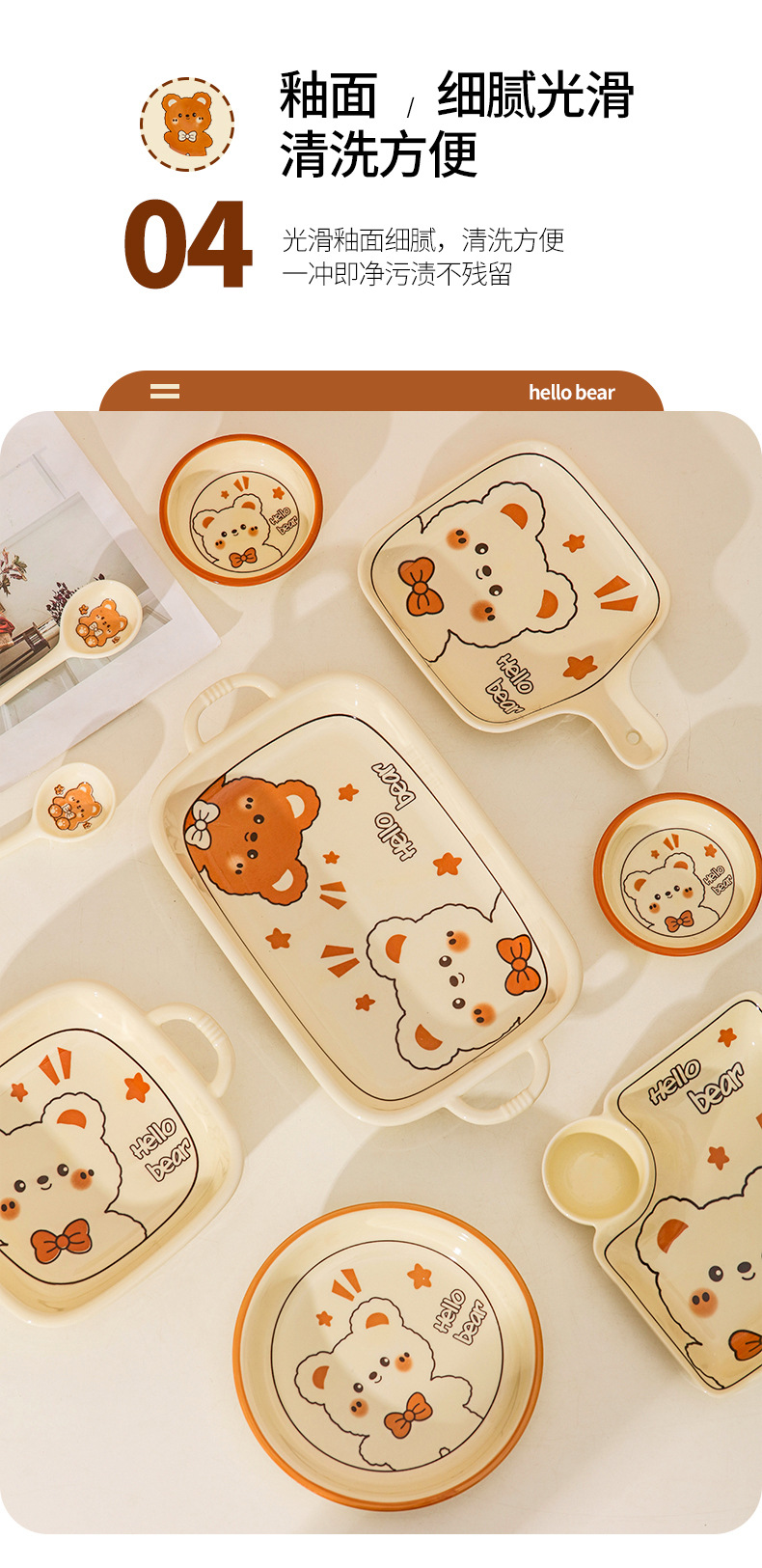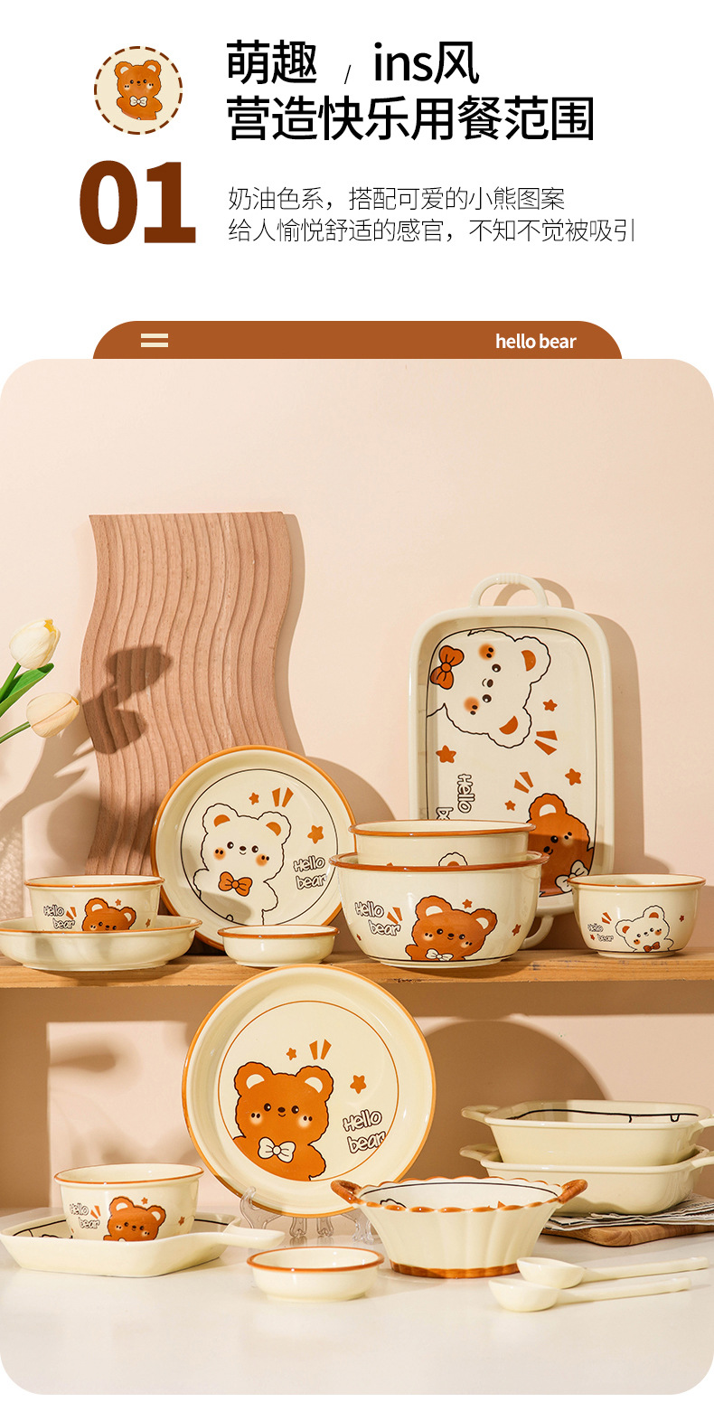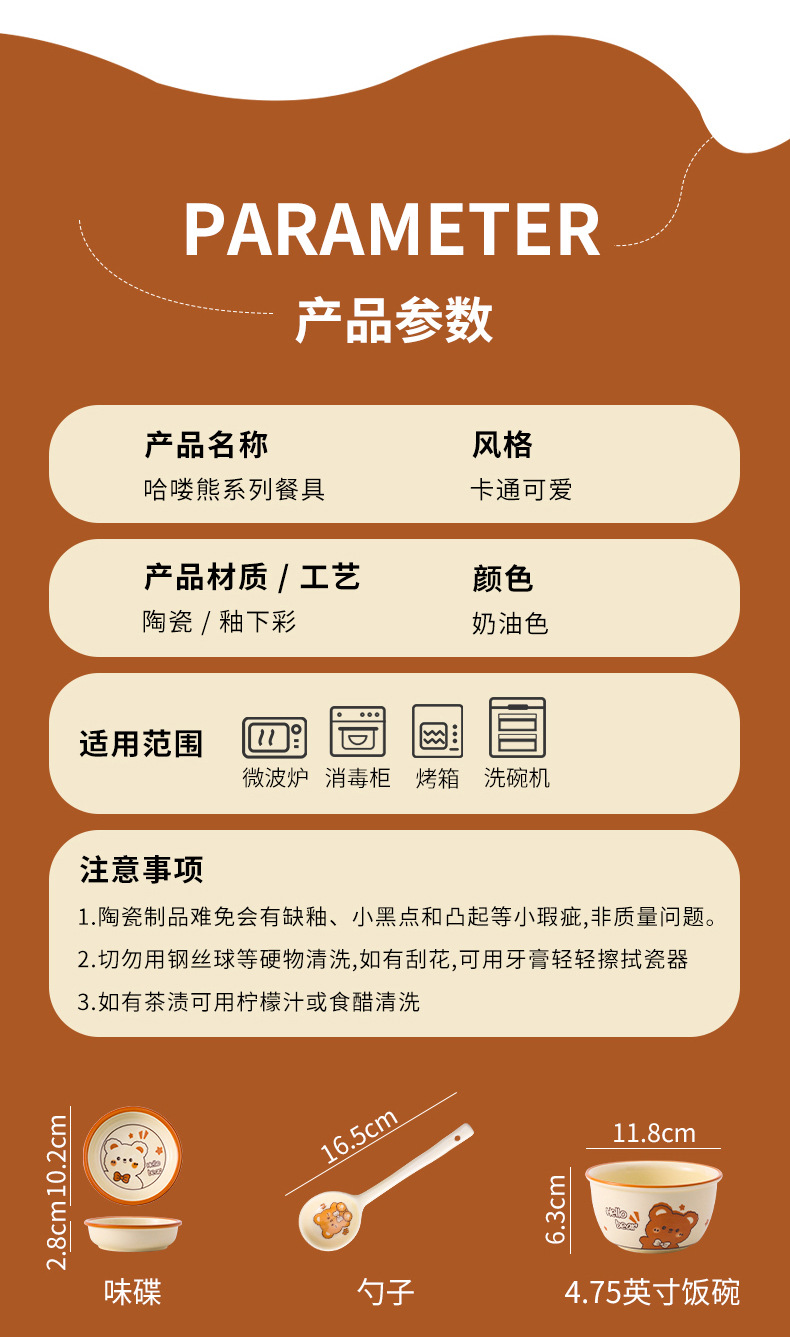 그릇에 높은 가치 만화 귀여운 Mengeng 곰 가정용 세라믹 그릇 세트 식기 밥그릇 더블 귀 그릇 접시