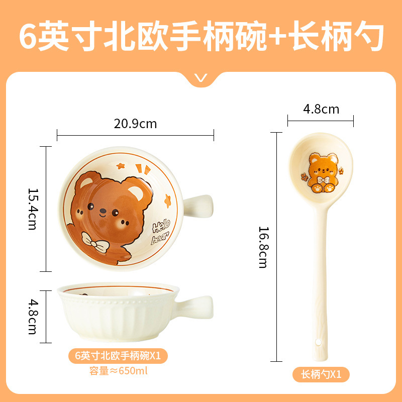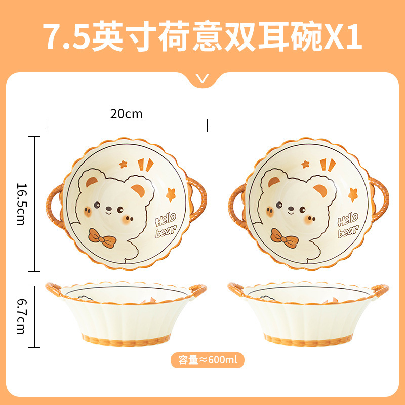 그릇에 높은 가치 만화 귀여운 Mengeng 곰 가정용 세라믹 그릇 세트 식기 밥그릇 더블 귀 그릇 접시스토어 가기