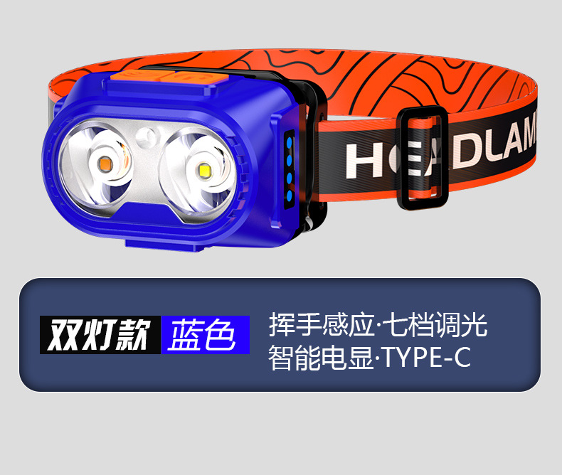 새로운 LED 강한 빛 야외 캠핑 유도 헤드 라이트 Type-c 충전 하이킹 방수 COB 헤드 장착 야간 낚시 조명