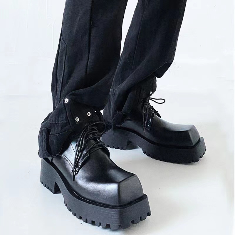 남녀공용 스퀘어토 2025 신상 가죽신 트렌디 여성 두꺼운 밑창 캐주얼 더비 슈즈 블랙 스퀘어토 가죽신스토어 가기