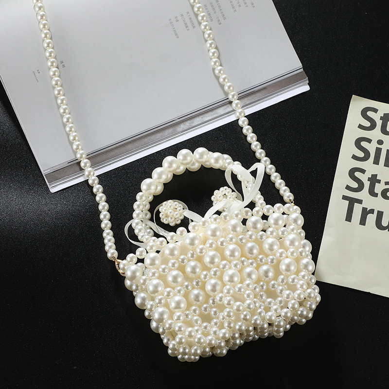 고급 스몰 스퀘어 펄 핸드메이드 펄 백 데일리 올매치 숄더 크로스바디 비즈 한국 펄 백