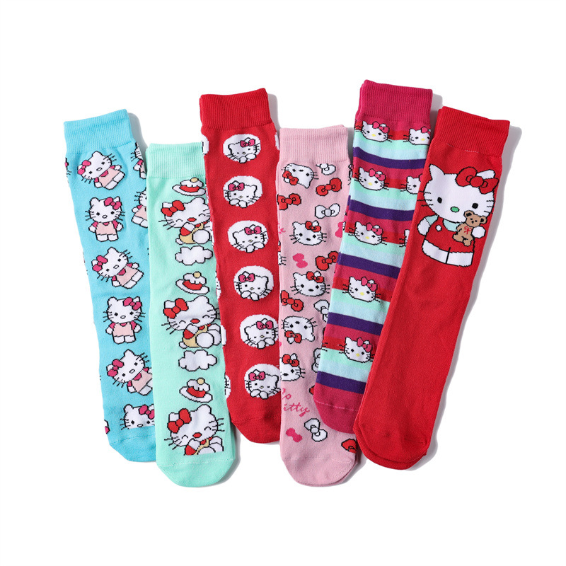 여성용 면 사계절 애니메이션 헬로 키티 양말 패션 양말 헬로 키티 여성의 아마존 여성 양말 대외 무역 양말스토어 가기