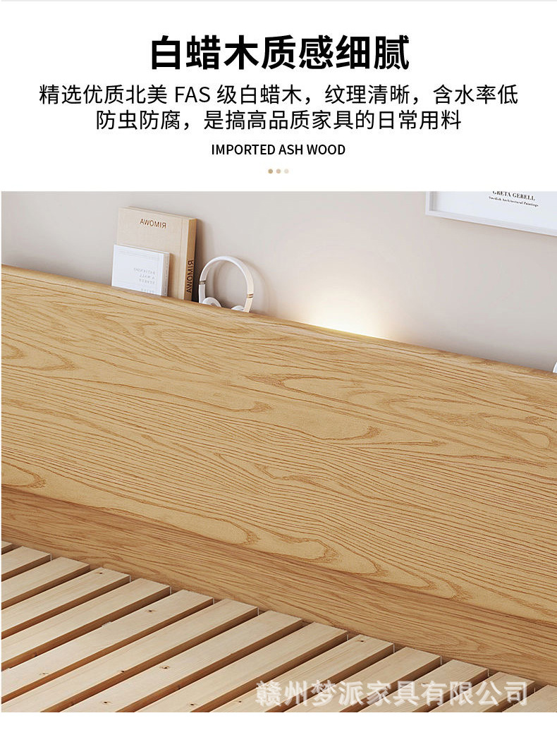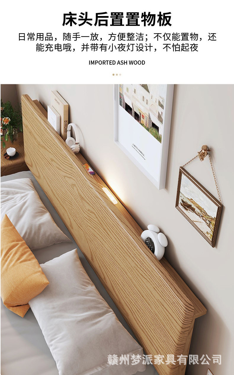 북유럽 단단한 나무 침대 더블 침대 1.8 m 마스터 침실 현대 간단한 작은 아파트 1.2 싱글 침대 애쉬 로그 스타일