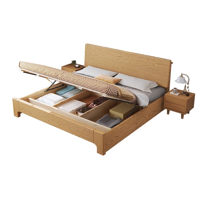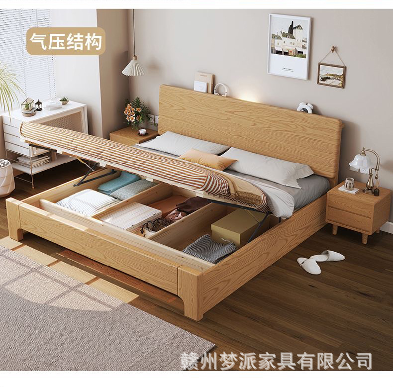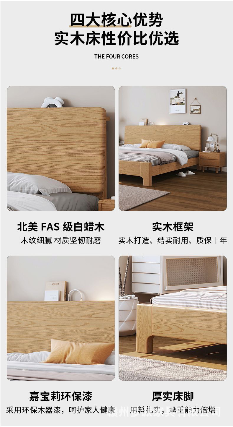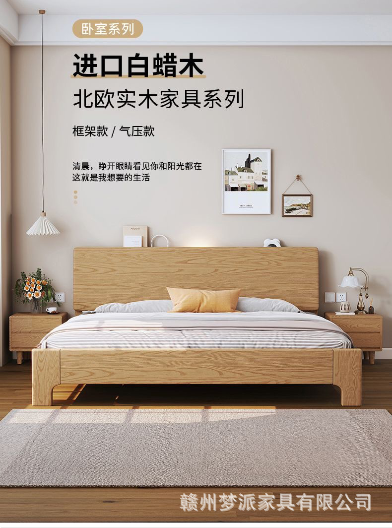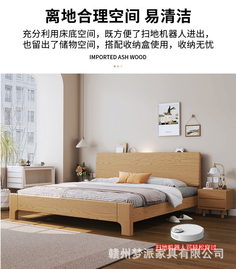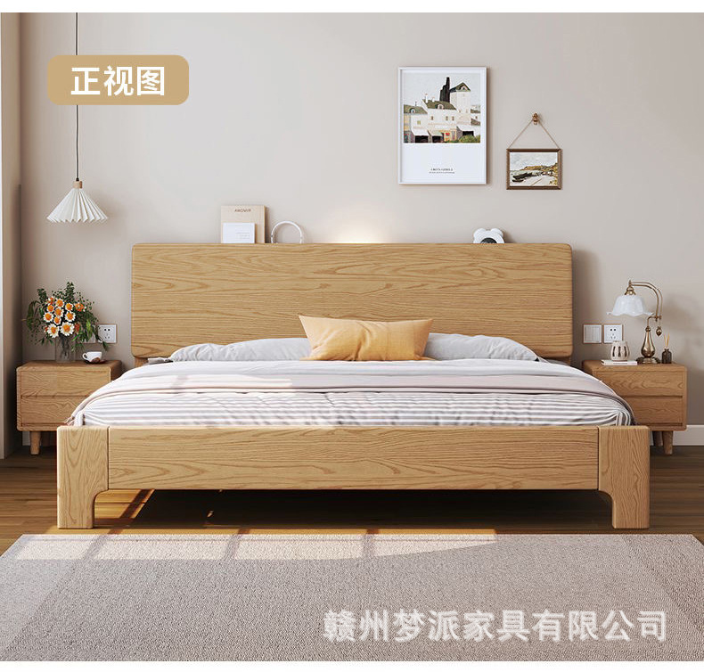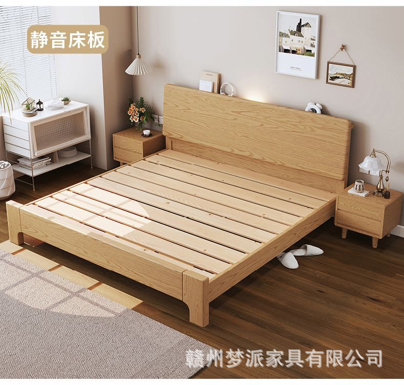 북유럽 단단한 나무 침대 더블 침대 1.8 m 마스터 침실 현대 간단한 작은 아파트 1.2 싱글 침대 애쉬 로그 스타일스토어 가기