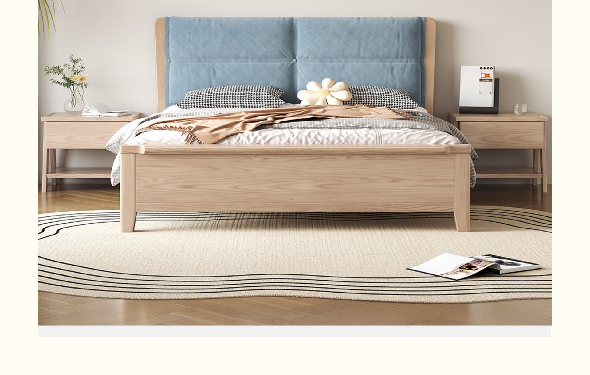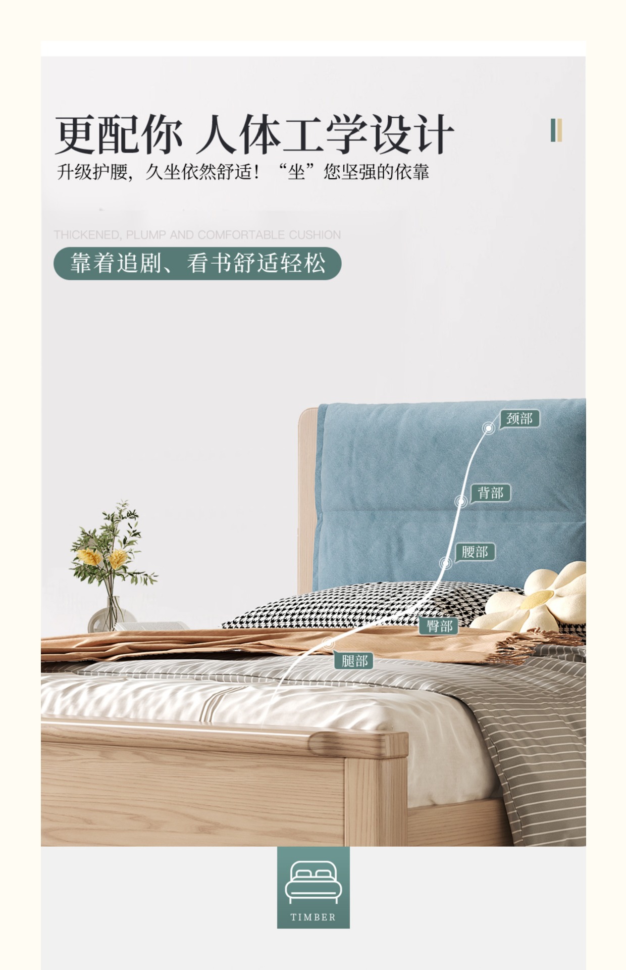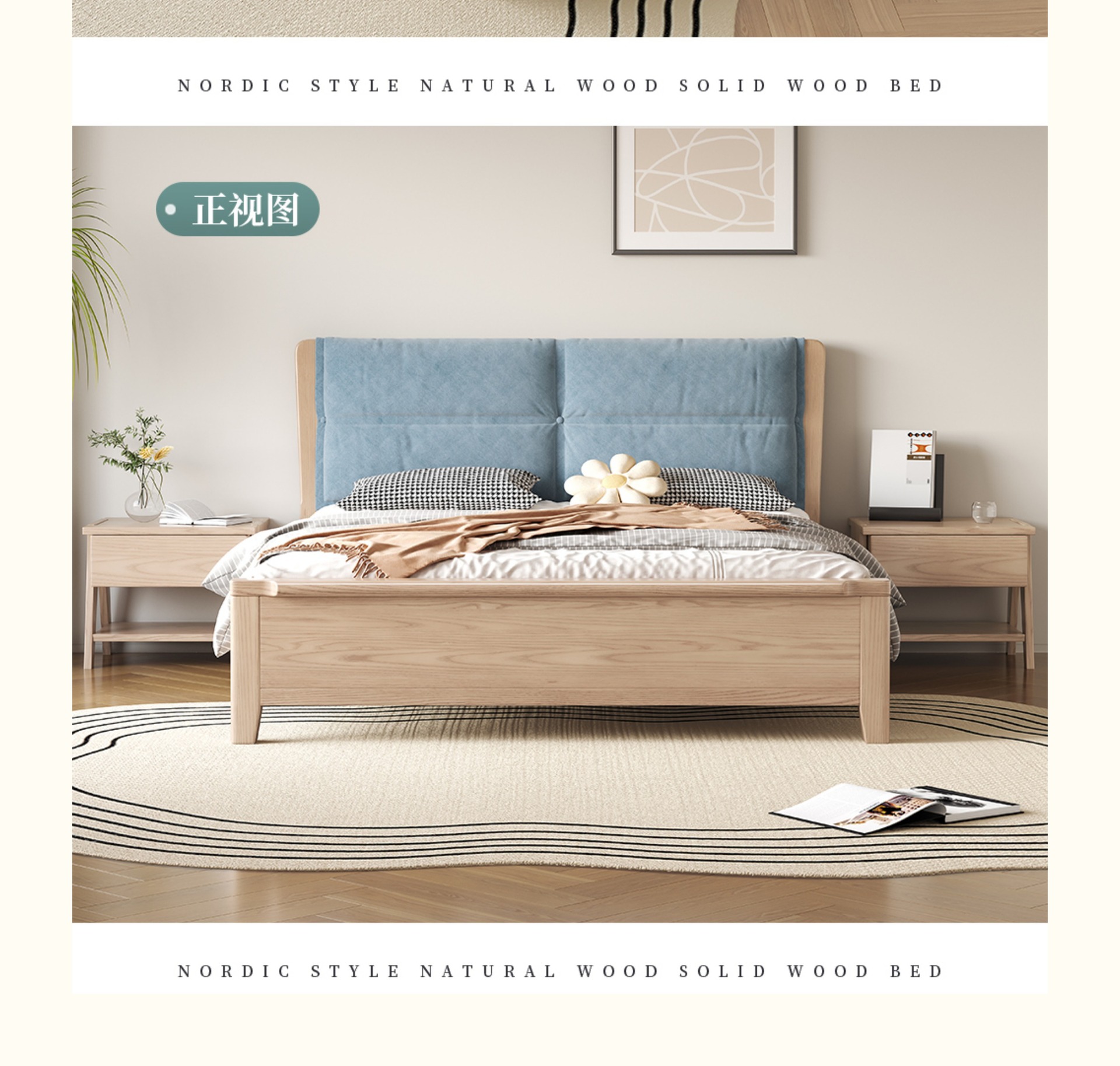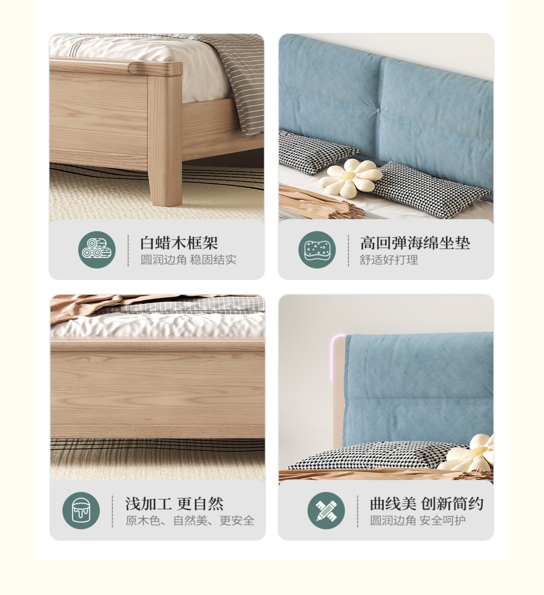 实木床白蜡木现代简约软靠床家用小户型婚床民宿酒店双人床北欧床