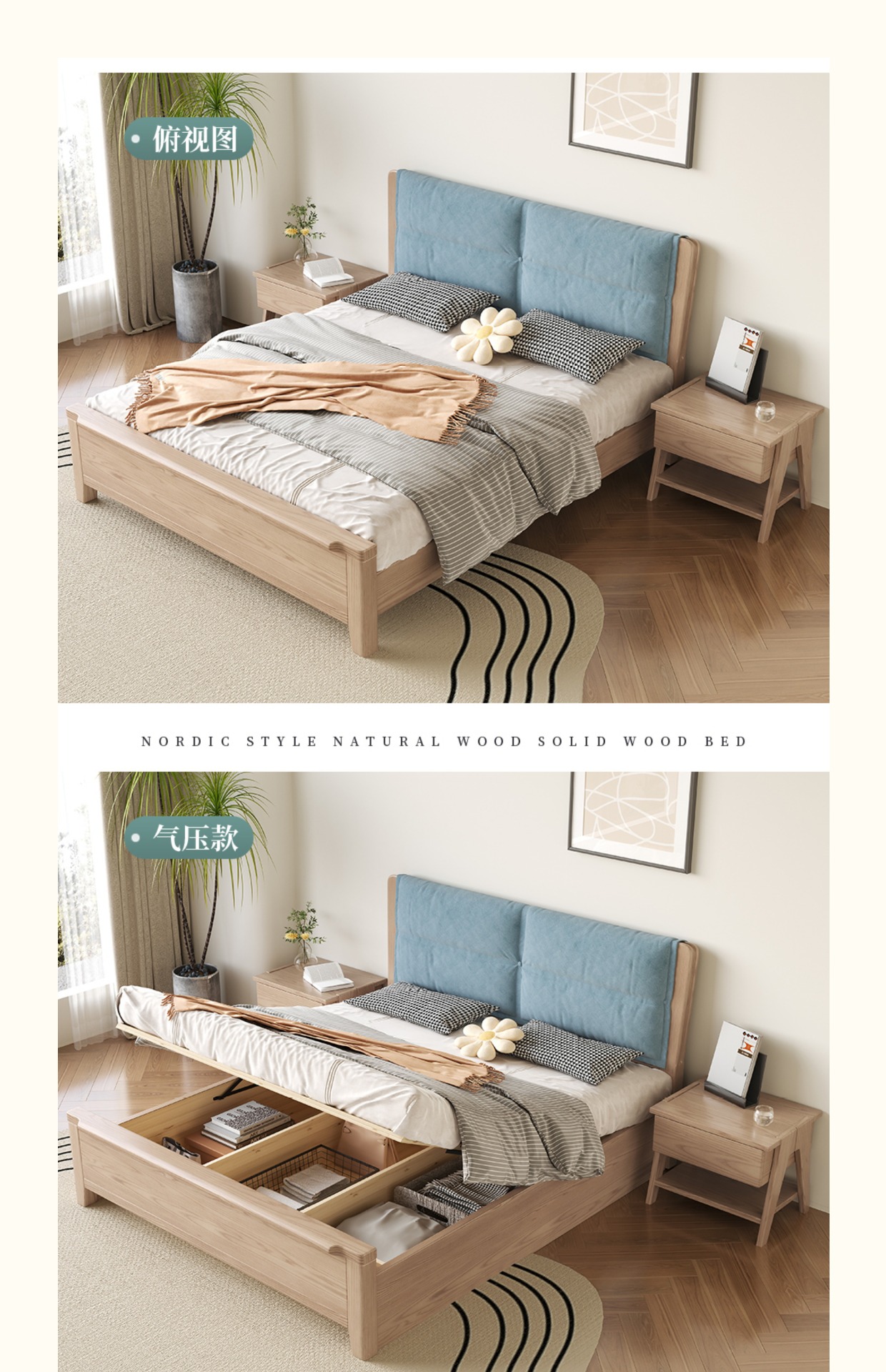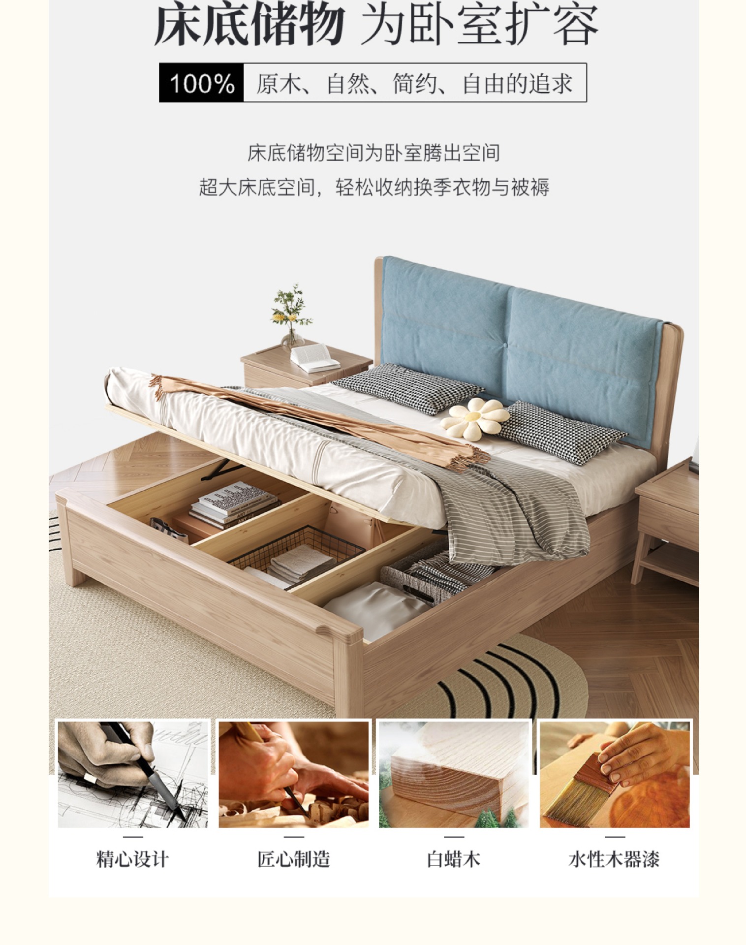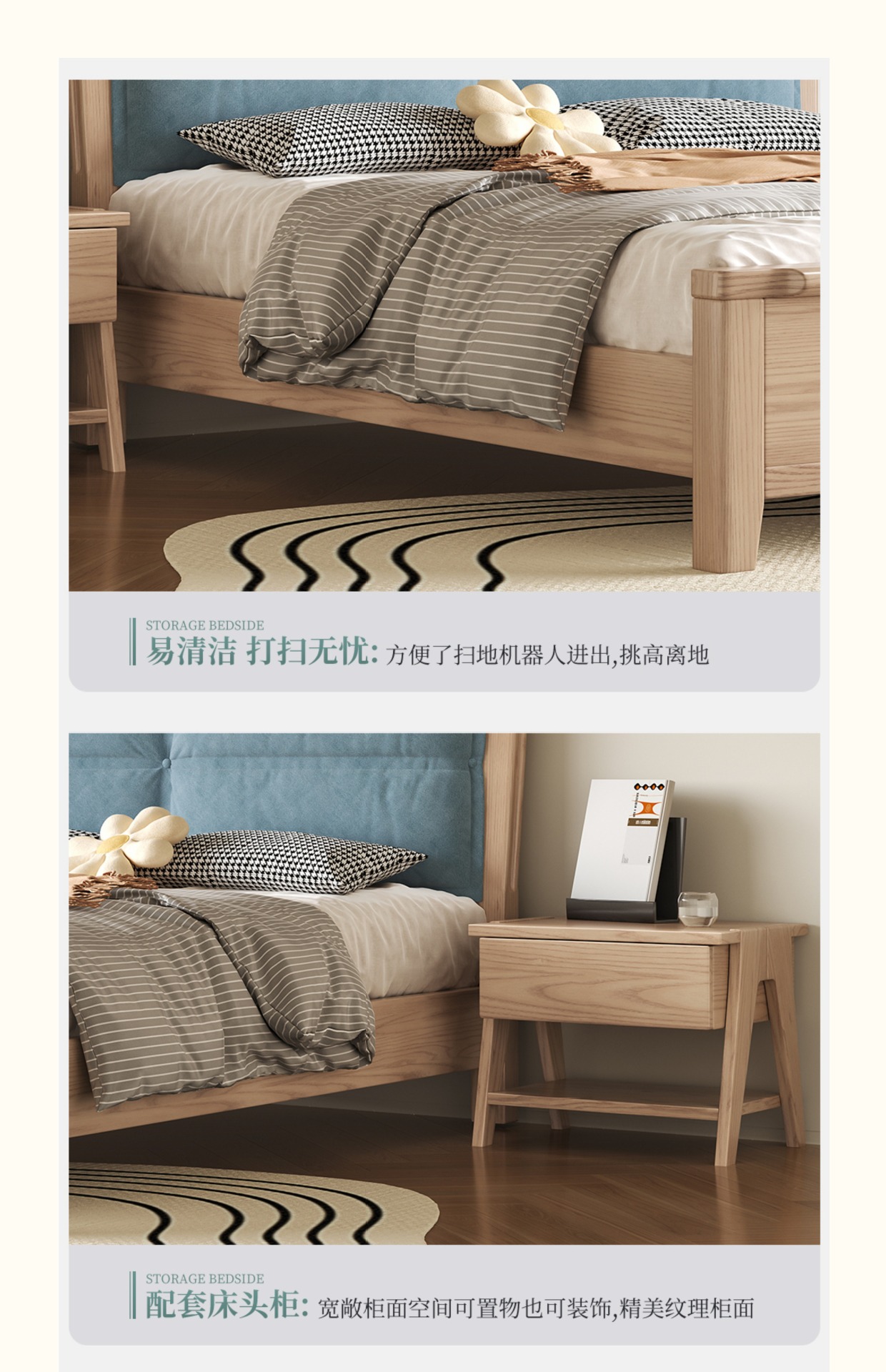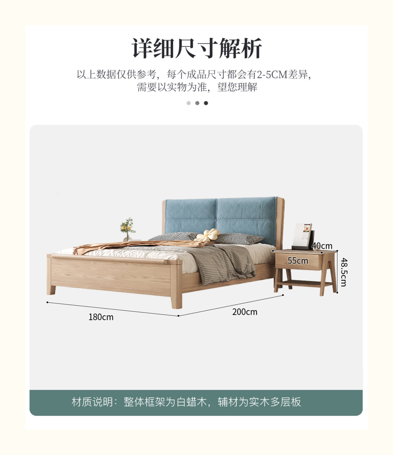 实木床白蜡木现代简约软靠床家用小户型婚床民宿酒店双人床北欧床