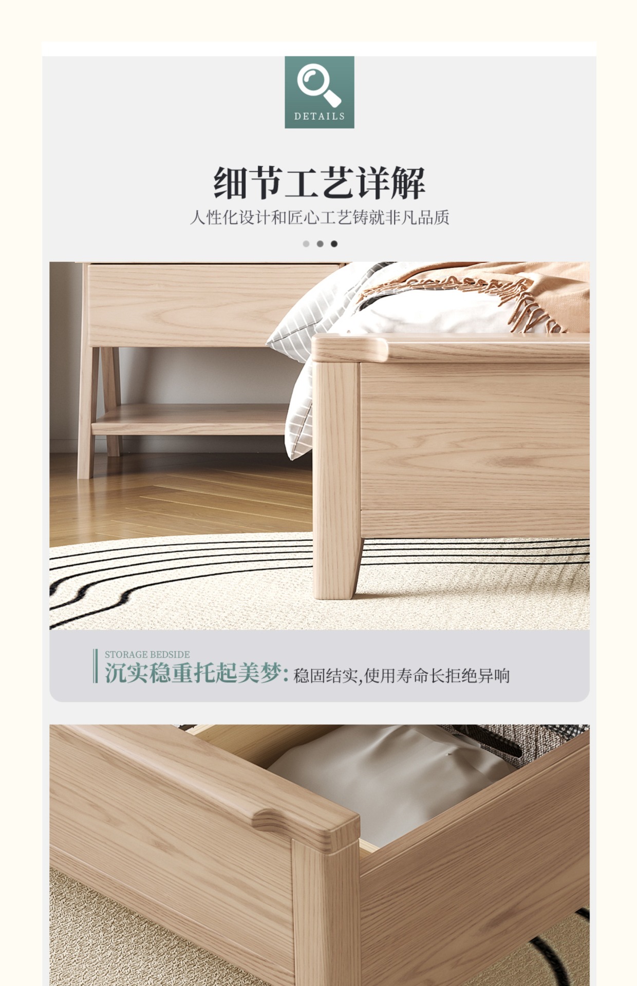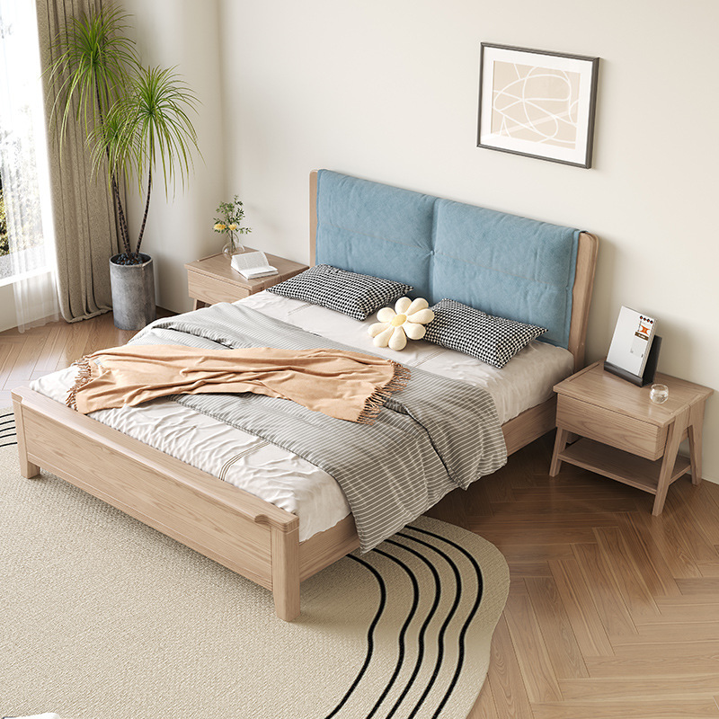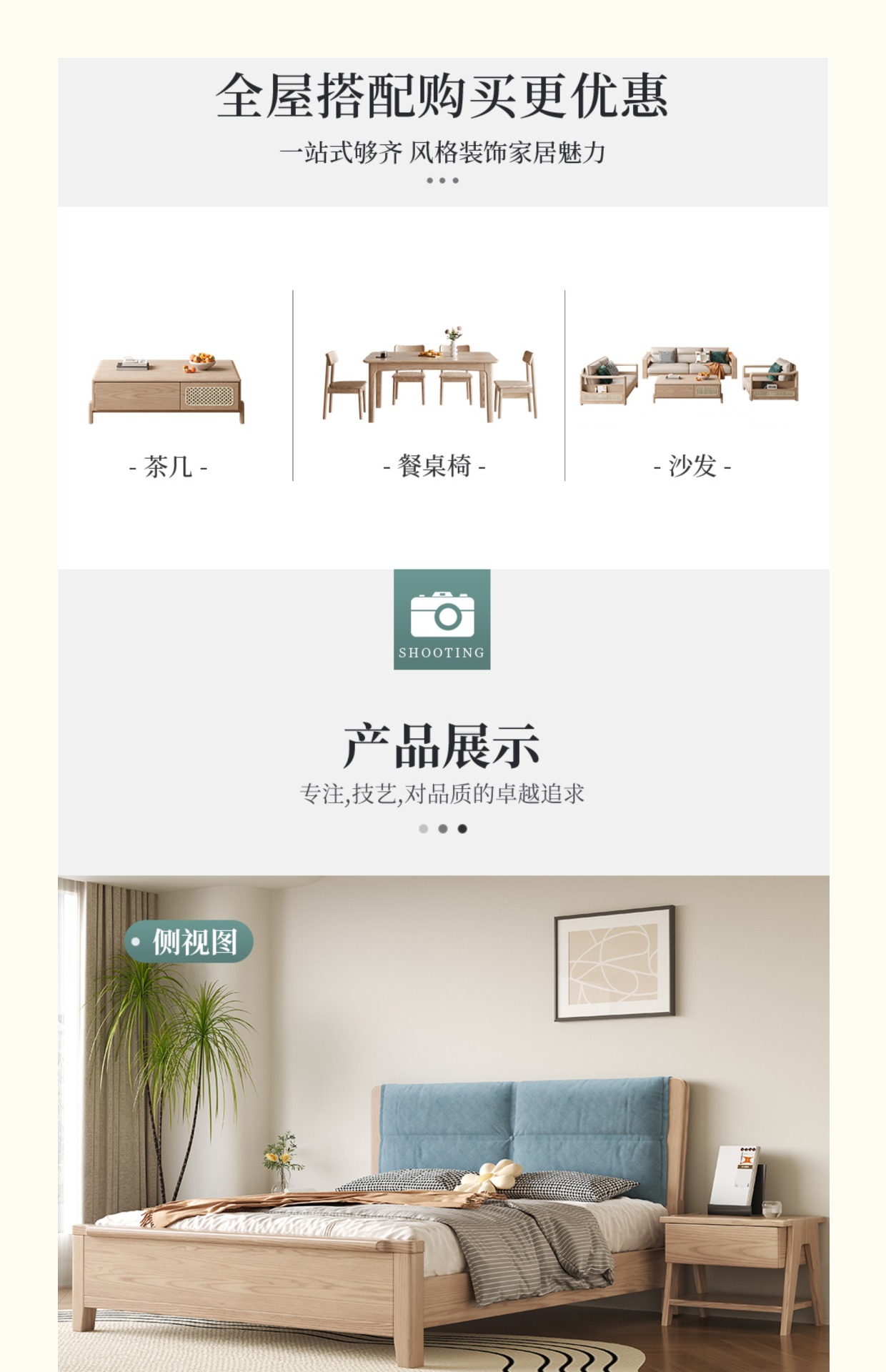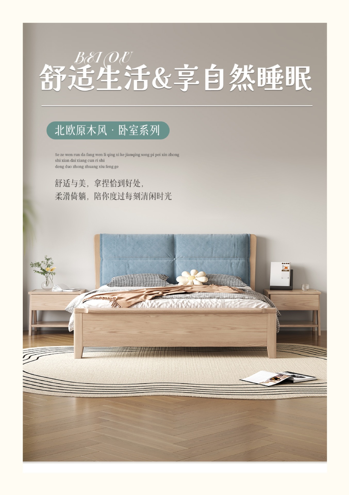 实木床白蜡木现代简约软靠床家用小户型婚床民宿酒店双人床北欧床