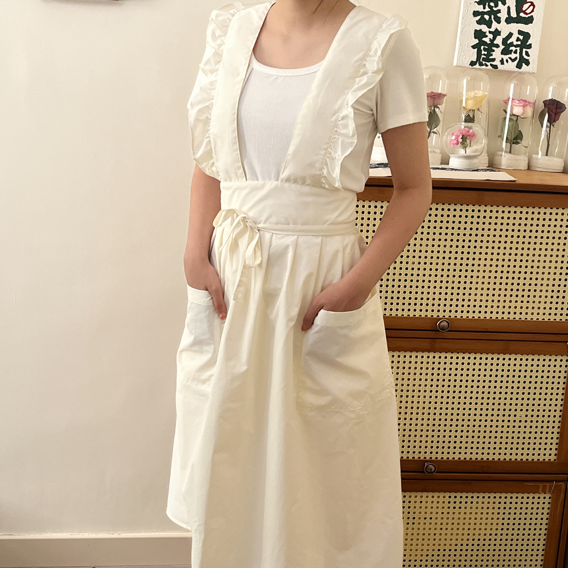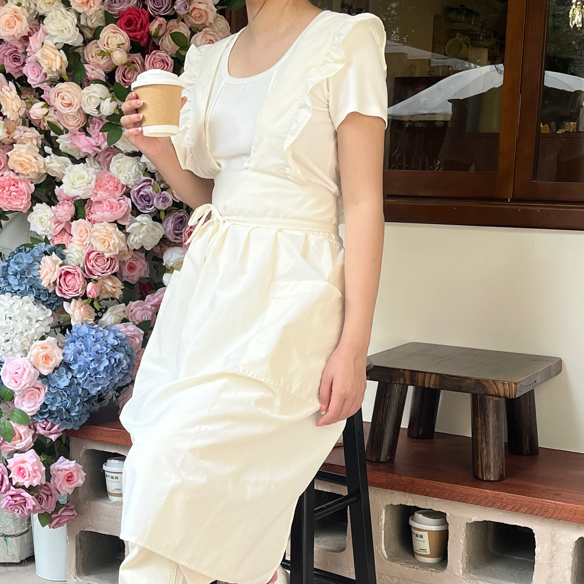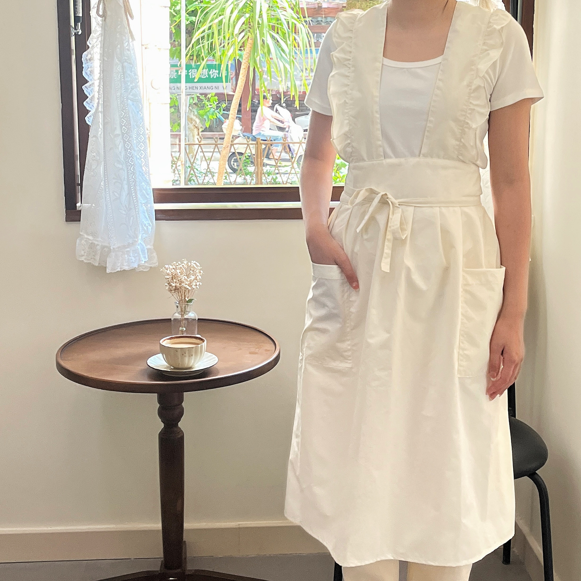 한국 H형 단색 방수 레이스 앞치마 카페 플로럴 더블 포켓 해외 무역 쿠팡