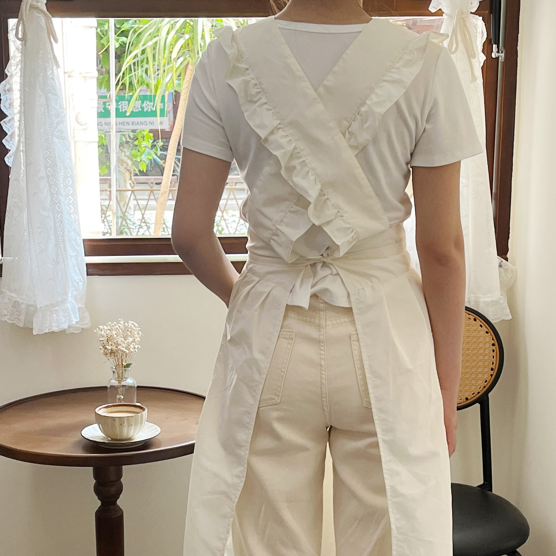 한국 H형 단색 방수 레이스 앞치마 카페 플로럴 더블 포켓 해외 무역 쿠팡스토어 가기