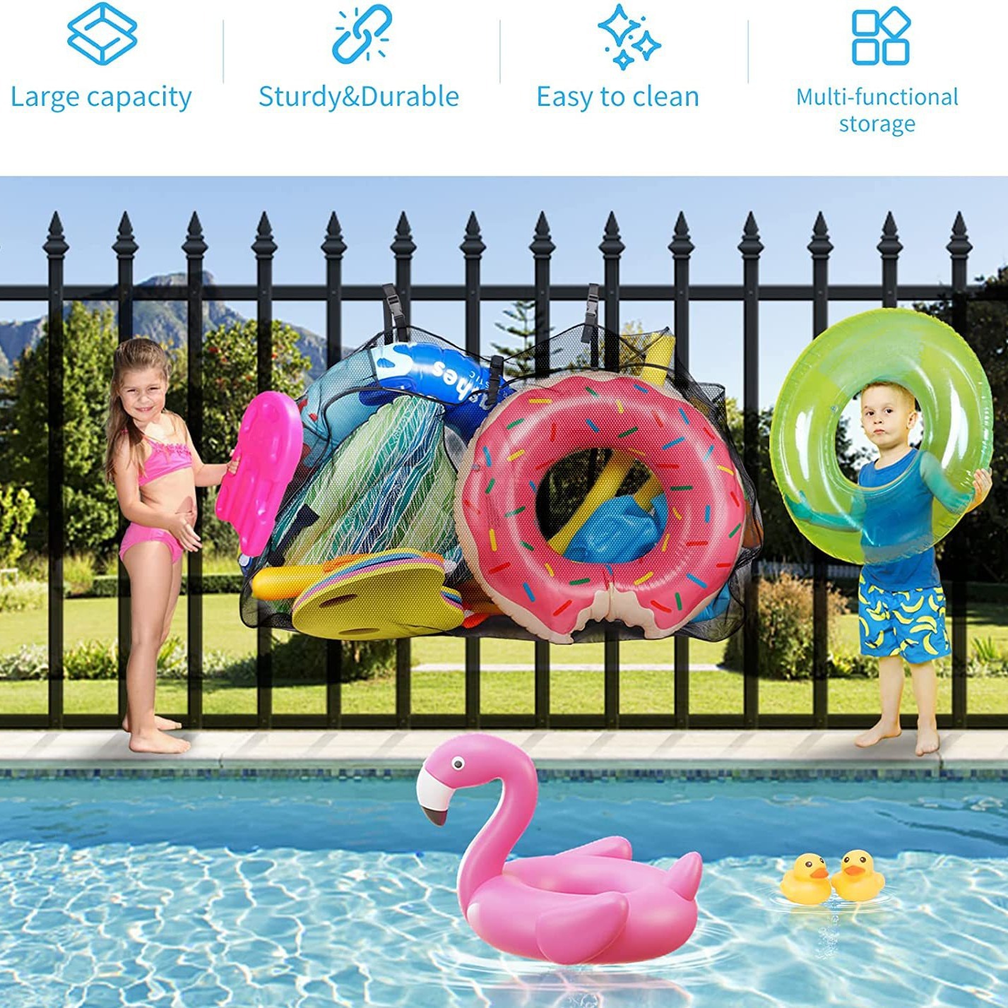 수영장 울타리 교수형 가방 야외 수영 반지/공 대용량 울타리 메쉬 가방 대형 보관 메쉬 가방