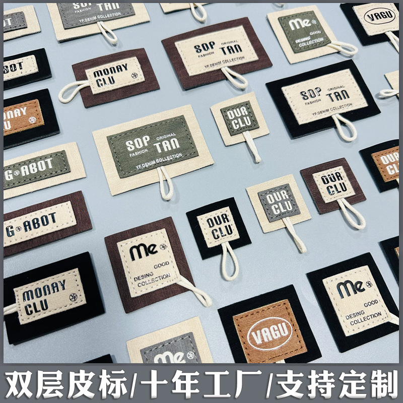 더블 레이어 가죽 로고 10 년 공장 자동차 라인 교수형 로프 조합 PU 가죽 인쇄 의류 장식 로고 크리에이티브 가죽 배지스토어 가기