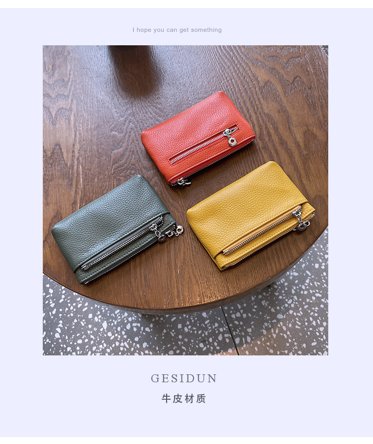 유럽과 미국의 국경 동전 지갑 정품 가죽 여성의 간단한 다기능 키 케이스 지퍼 소가죽 핸드백 공장 도매