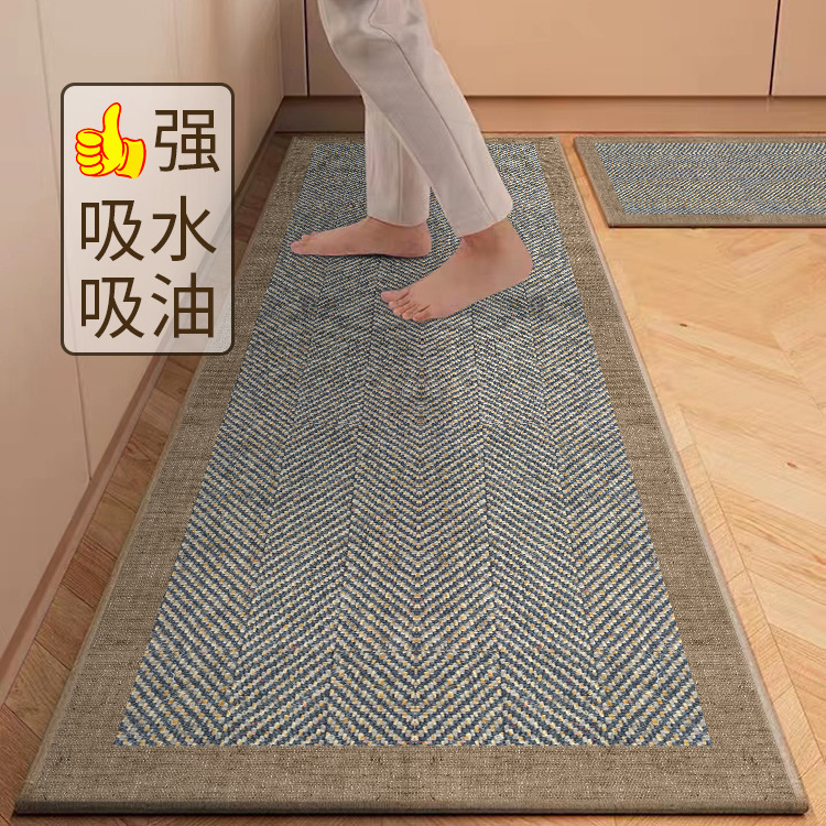 현대 간단한 주방 바닥 매트 물 흡수 오일 흡수 미끄럼 방지 카펫 린넨 패턴 인쇄 긴 문 매트 발 매트스토어 가기