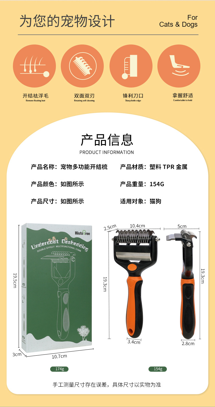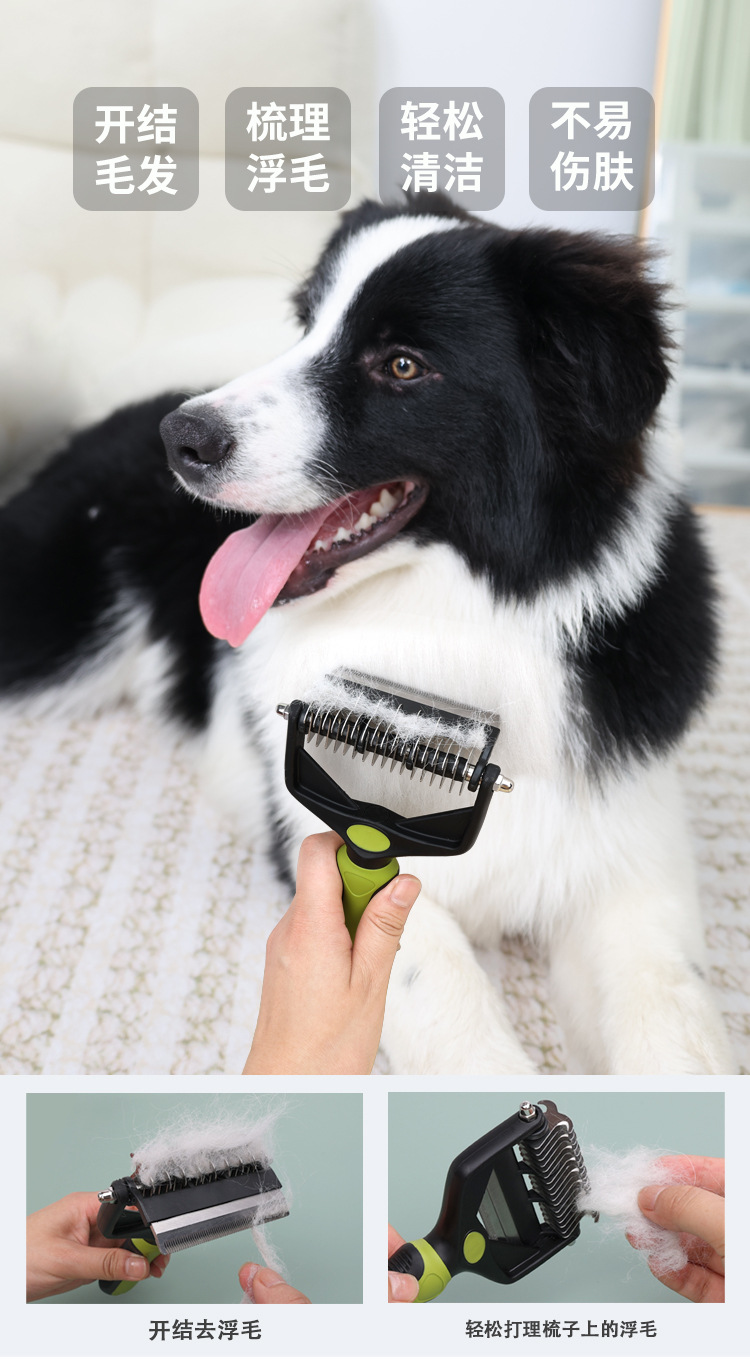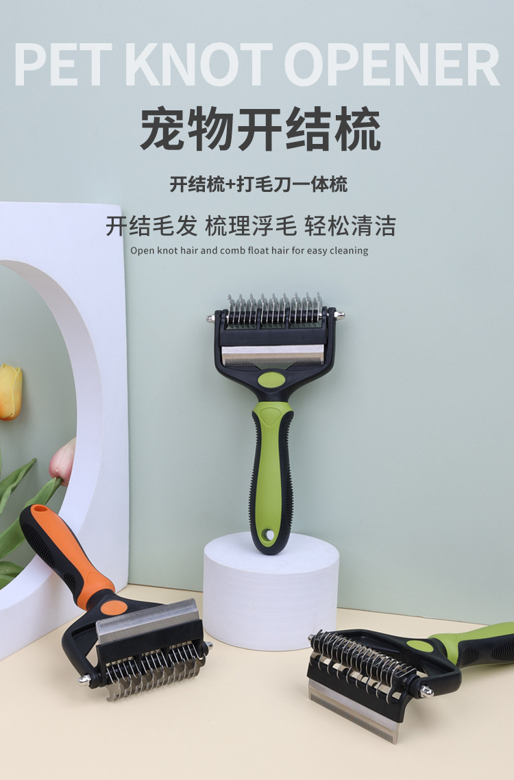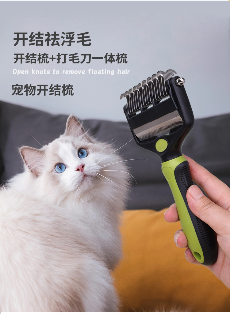 애완 동물 양면 오픈 매듭 빗 투인원 고양이 빗 개 미용 헤어 커터 제모 얇은 빗 애완 동물 용품스토어 가기