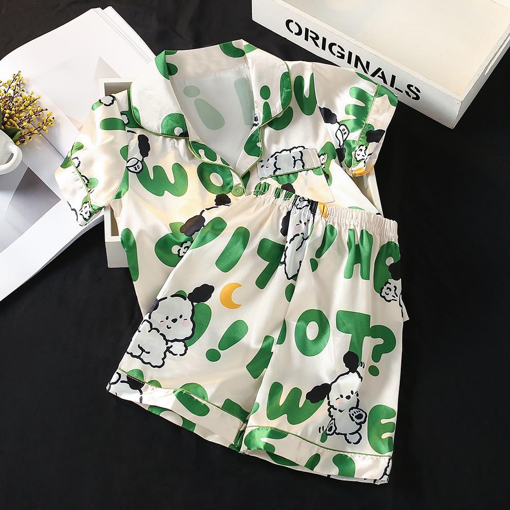 어린이 잠옷 반팔 반바지 사데 여아 잠옷 아이스 실크 남아 잠옷 여름 가정복 만화 착용