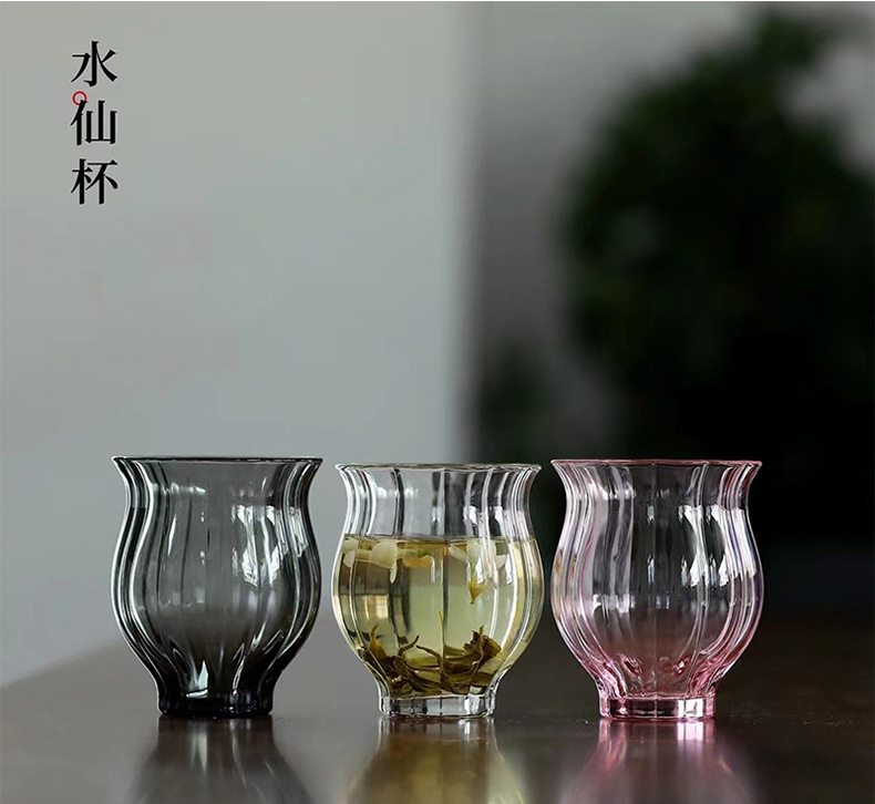 홈 높은 붕규산 유리 수선화 마스터 컵 차 시음 컵 투명 물 컵 쿵푸 차 컵 차 세트 도매