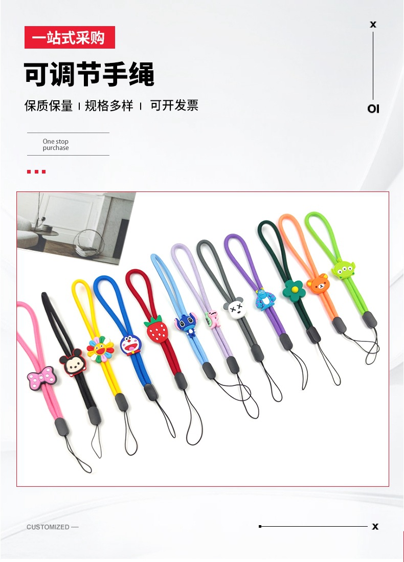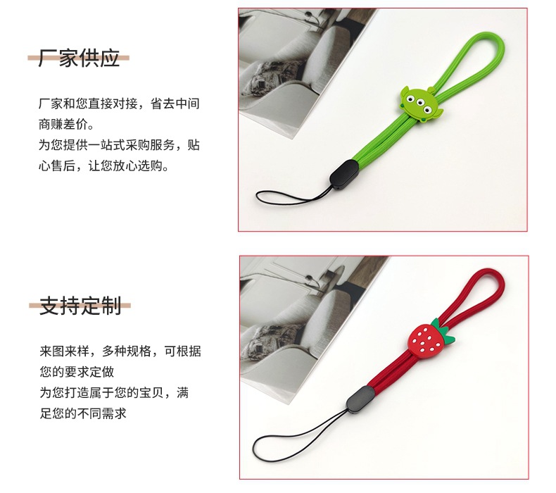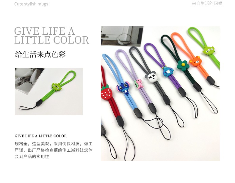 만화 휴대 전화 끈 귀여운 새로운 손목 스트랩 짧은 단단한 잃어버린 로프 U 디스크 카메라 펜던트 여성 패션스토어 가기