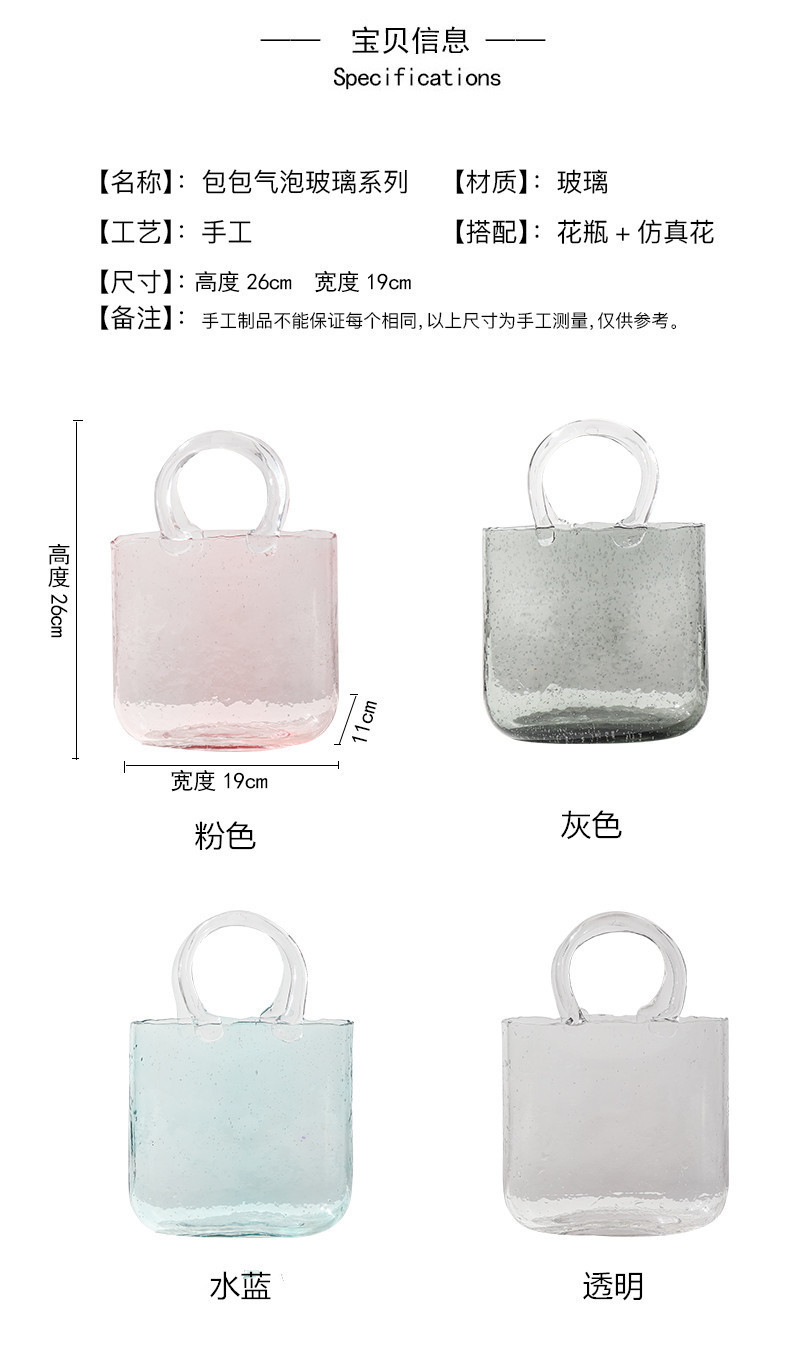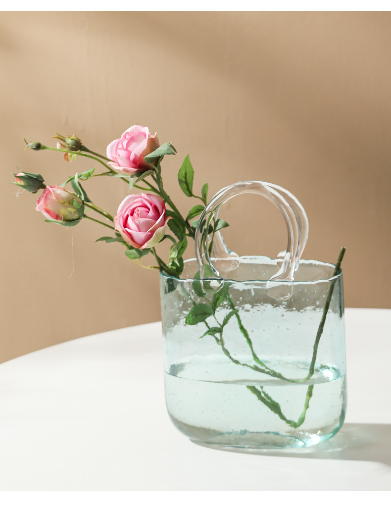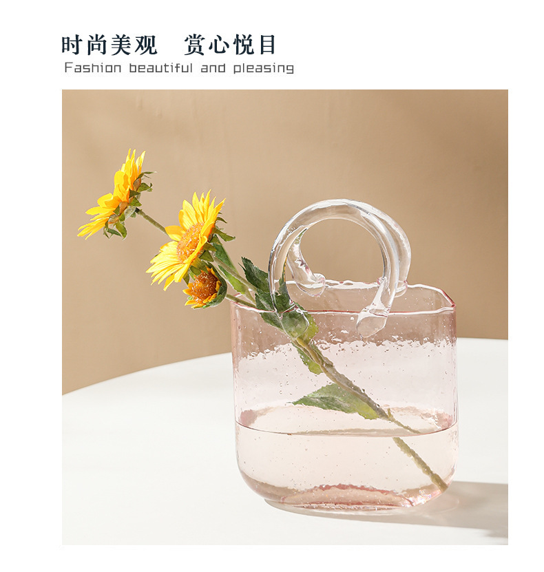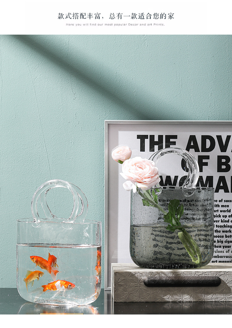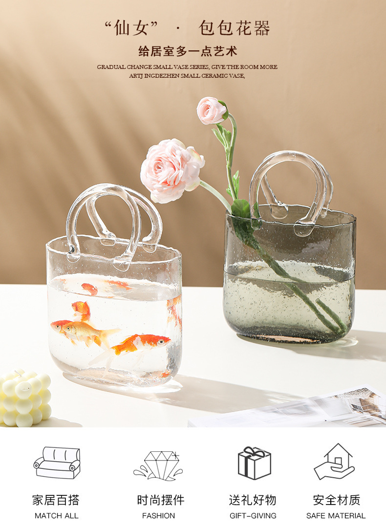 아마존 투명 유리 핸드백 모양 어항 꽃병 장식품 꽃 거실 꽃꽂이 수경 장식 화분