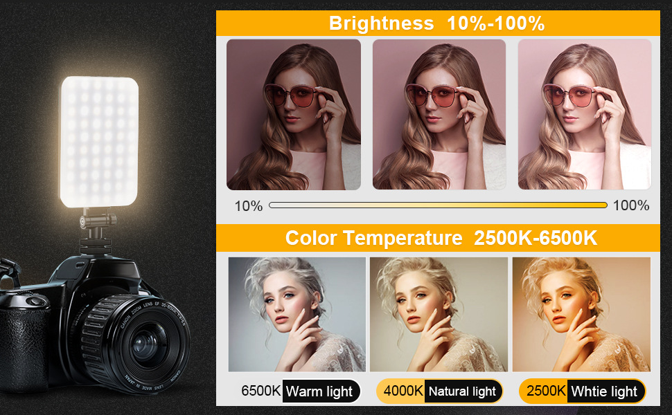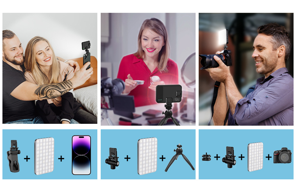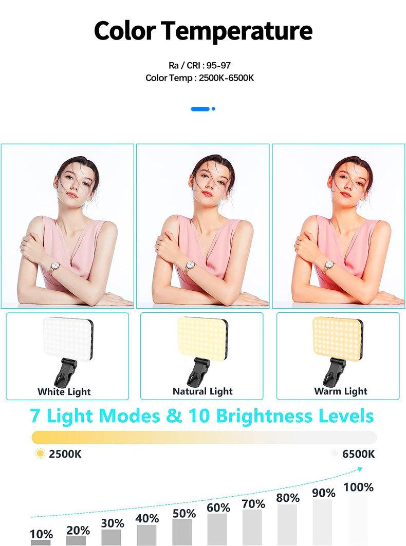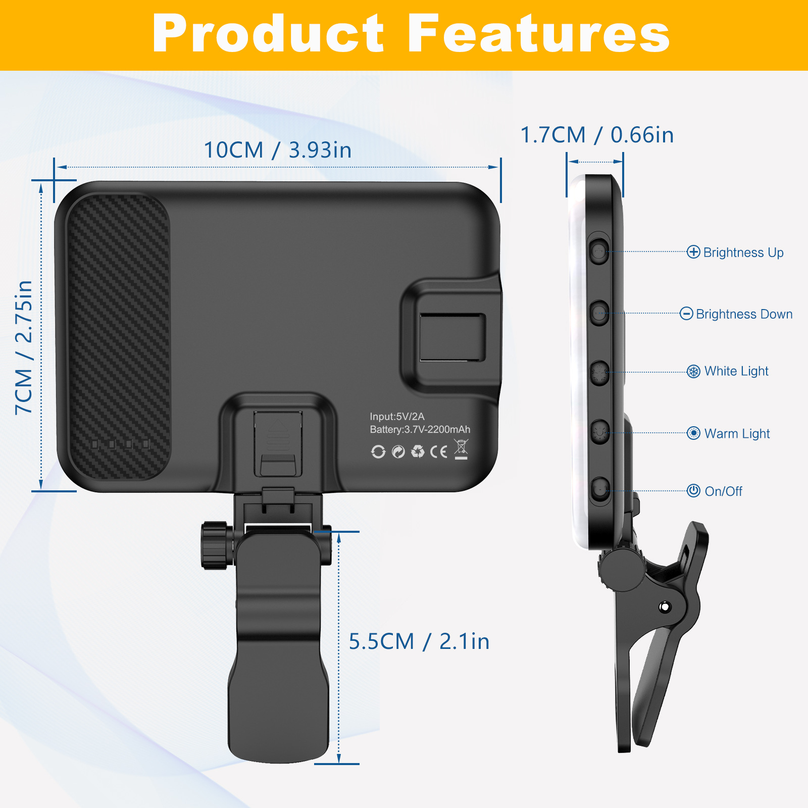LED 视频灯,3色相机灯可调光,带 2200 mAh 电池,便携式灯光摄影可充电,亮度可调,适用于 YouTube,直播,化妆,Vlog,Tiktok,视频会议