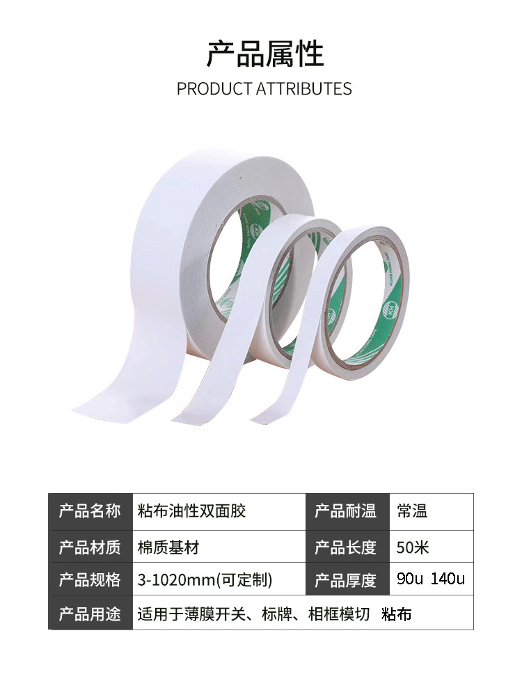 • 넓은 3.0 cmX50m * 백색 기름 양면 접착제 90u