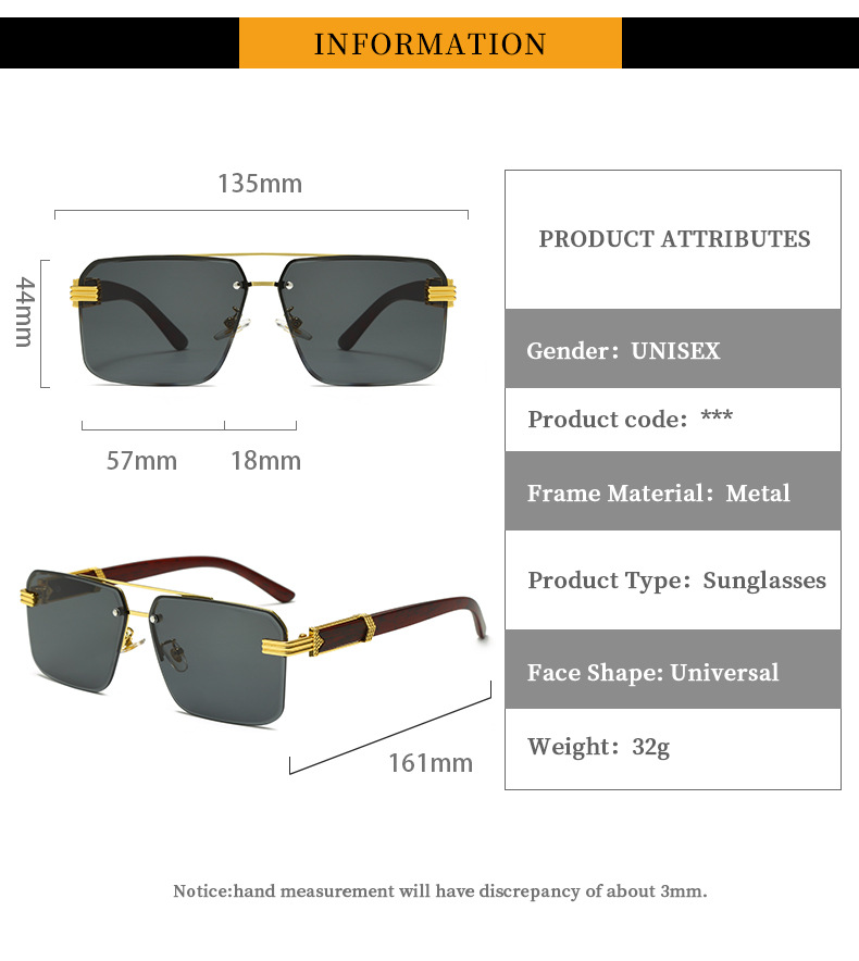 2023 새로운 상자 패션 선글라스 여성 패션 여성 인터넷 연예인 같은 스타일 프레임리스 트리밍 선글라스