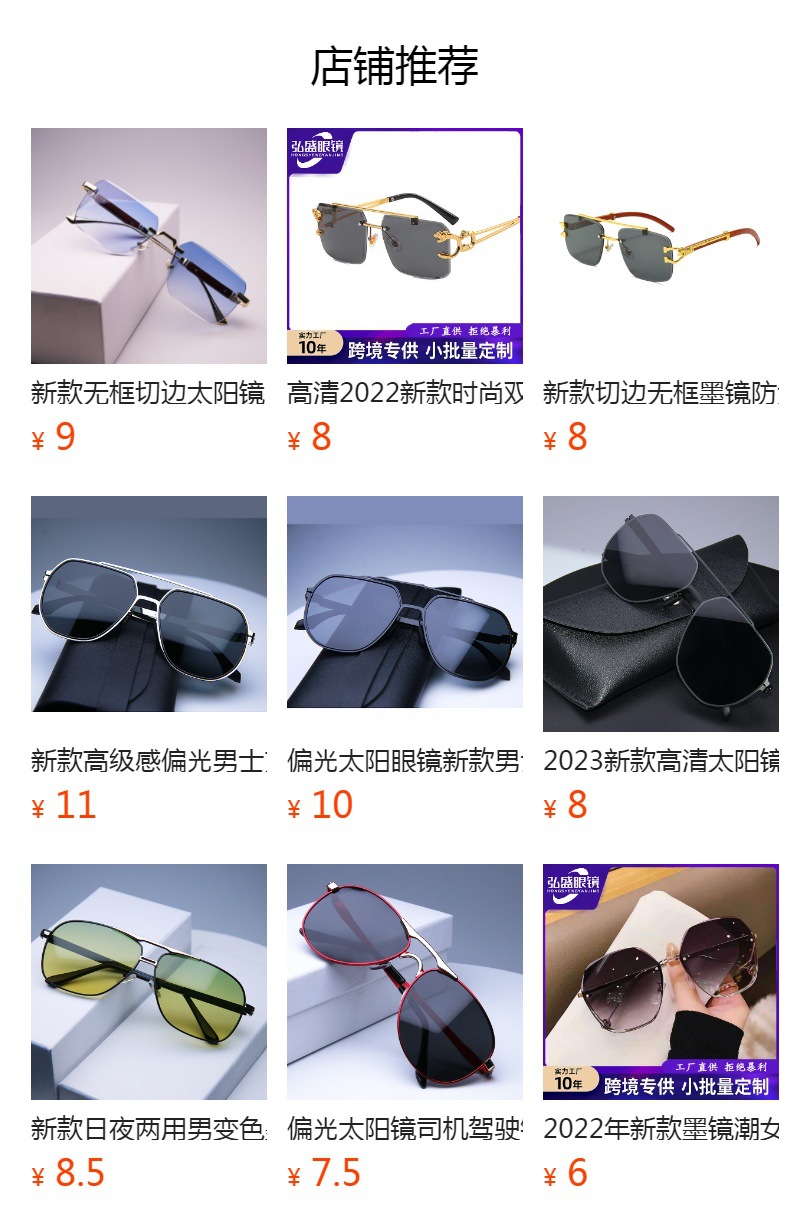 2023 새로운 상자 패션 선글라스 여성 패션 여성 인터넷 연예인 같은 스타일 프레임리스 트리밍 선글라스스토어 가기