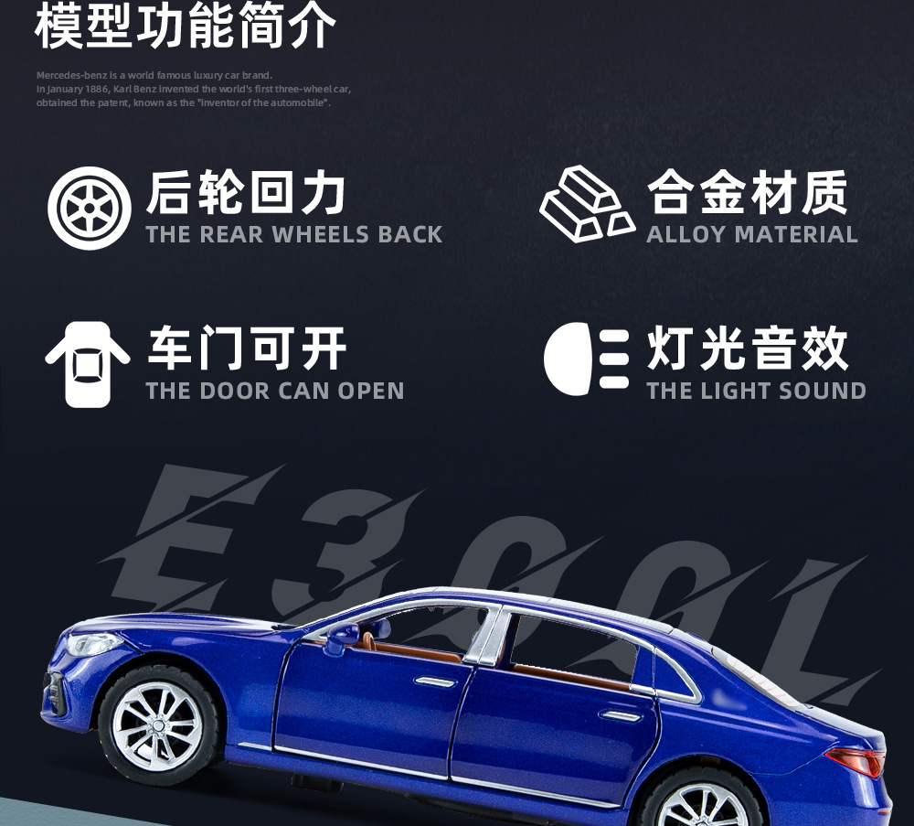 Xinhao Di 1:32 Big Ben E300 세단 소리와 빛 풀백 자동차 어린이 장난감 장식품 시뮬레이션 합금 자동차 모델