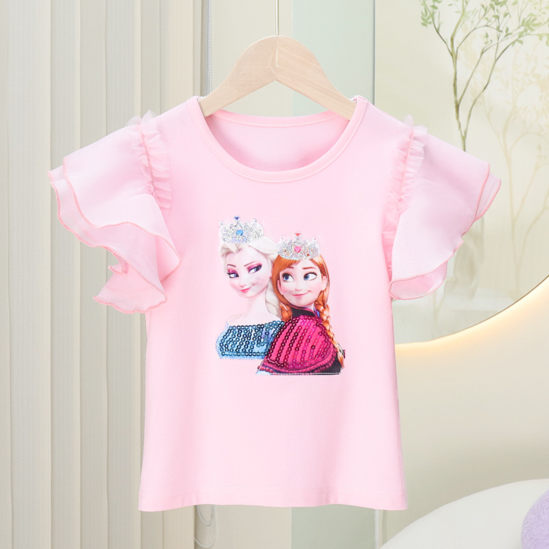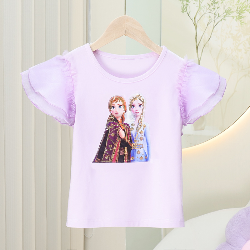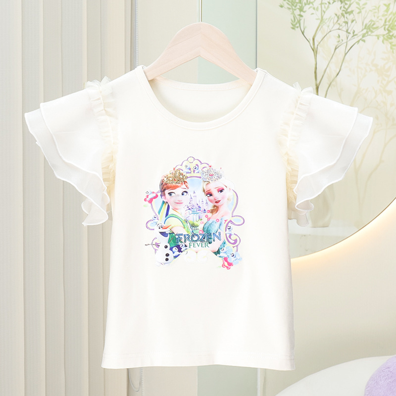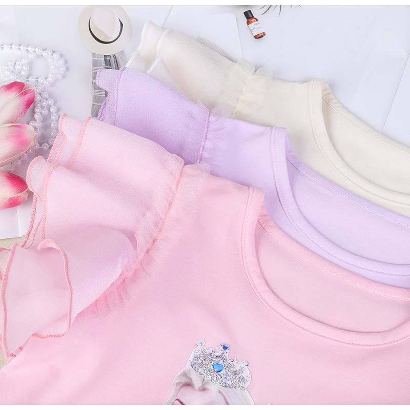 2023 봄과 여름 새로운 소녀 면 반팔 티셔츠 탑 얇은 모든 경기 반팔 티셔츠 여아 캐주얼 겉옷 티셔츠