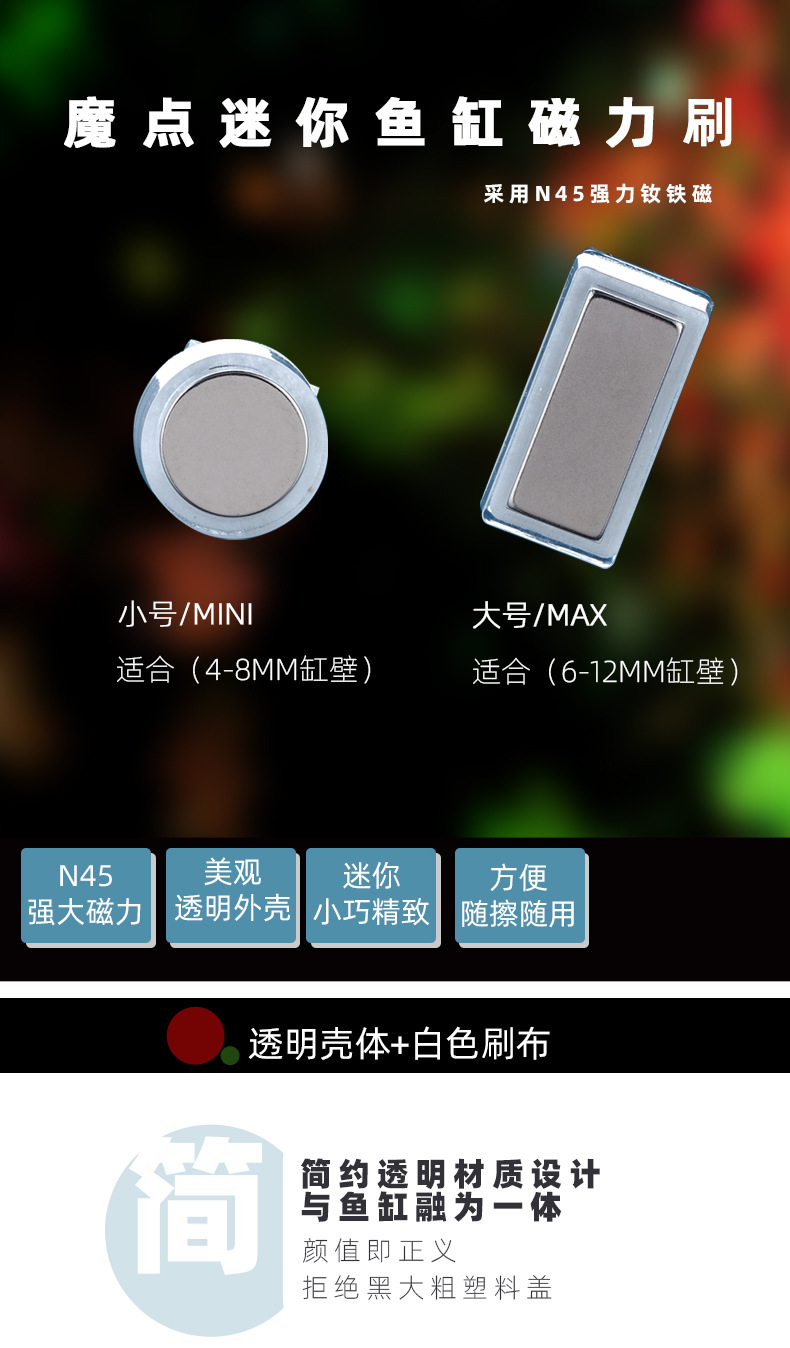 매직 포인트 어항 마그네틱 브러시 강한 자석 소형 미니 유리 탱크 잔디 탱크 조류 스크랩 청소 도구 청소 유물