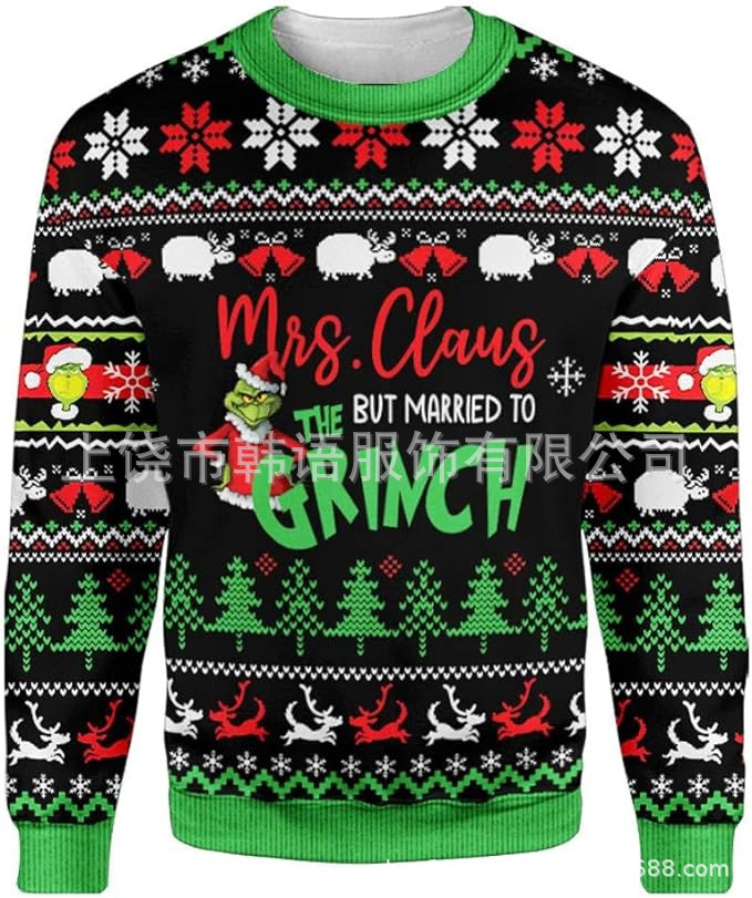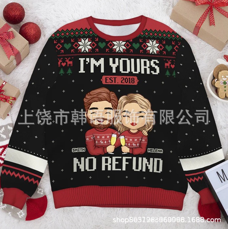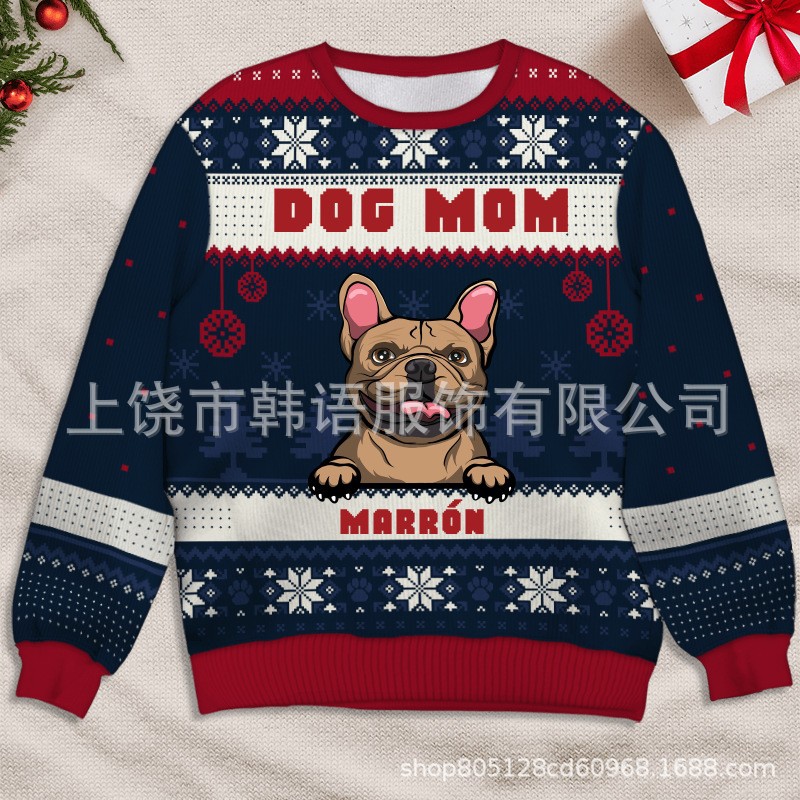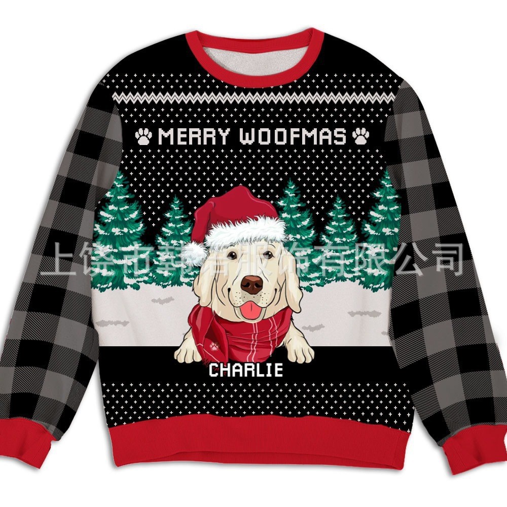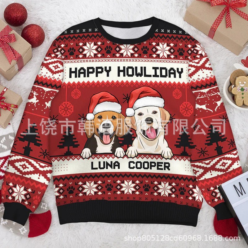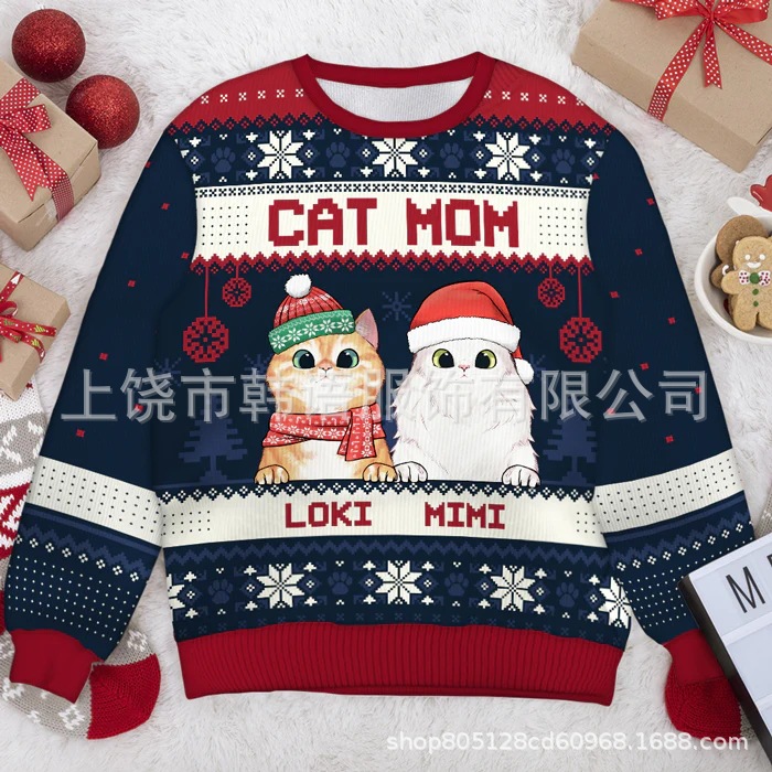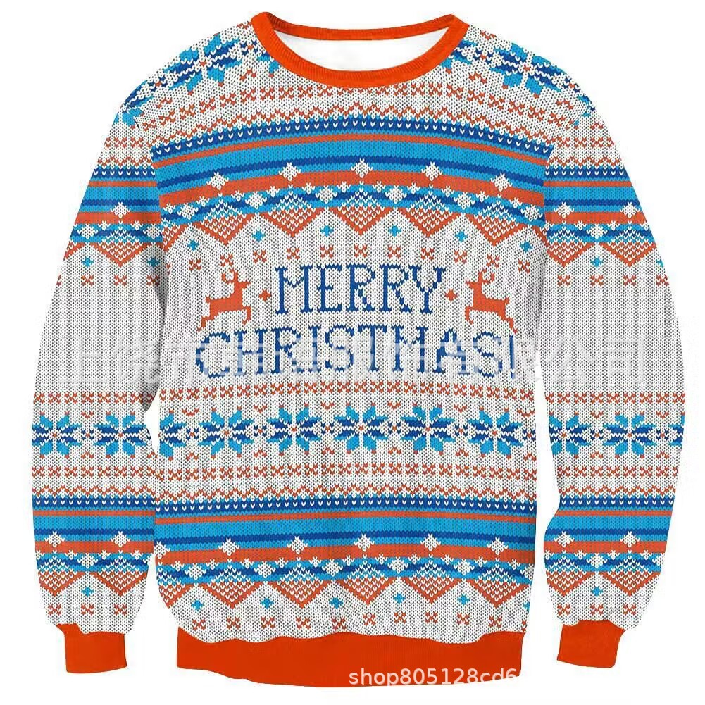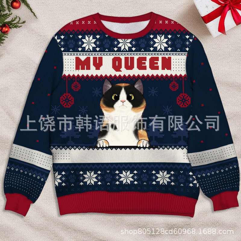 국경 간 대외 무역 크리스마스 새로운 라운드 넥 스웨터 캐주얼 3D 인쇄 산타 클로스 연인 유럽과 미국 공장 직판