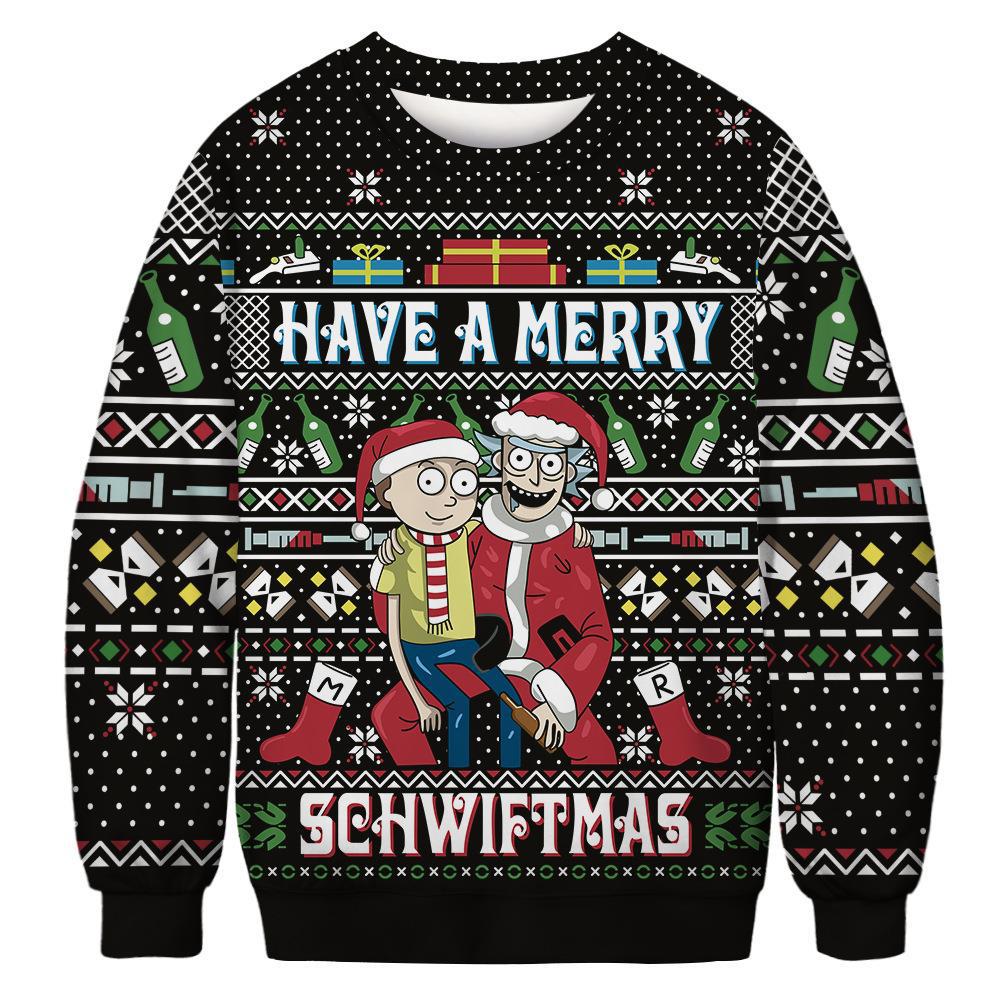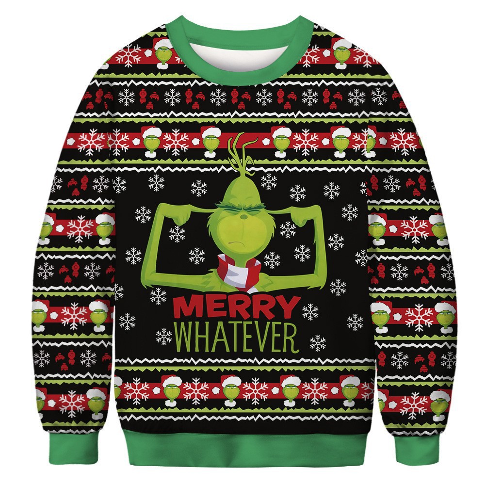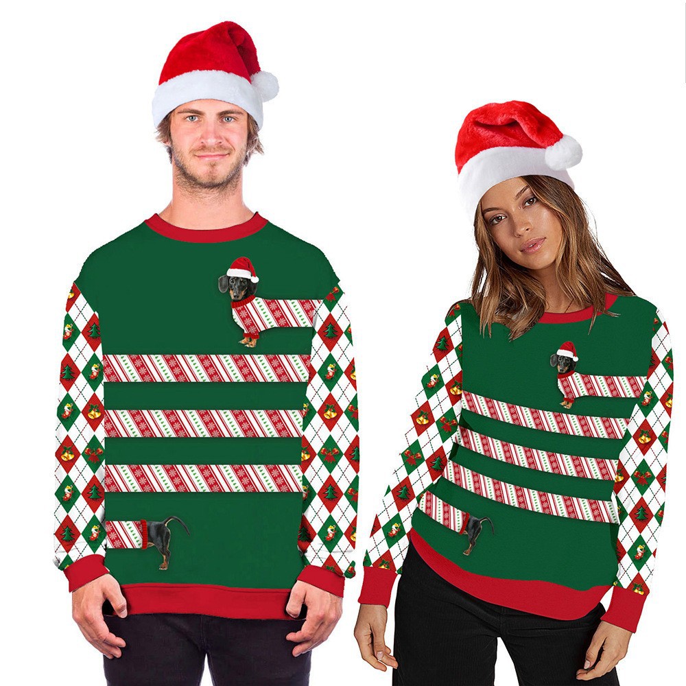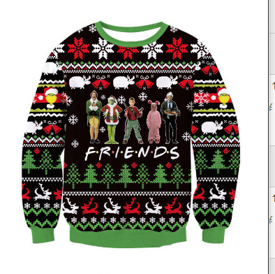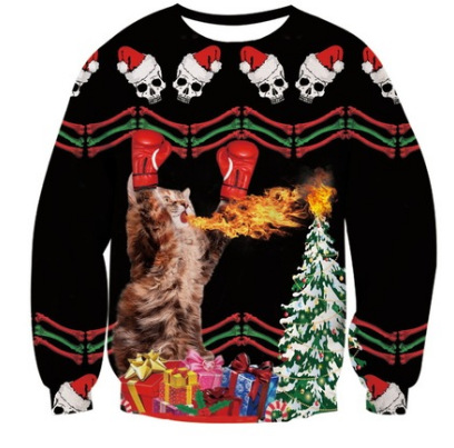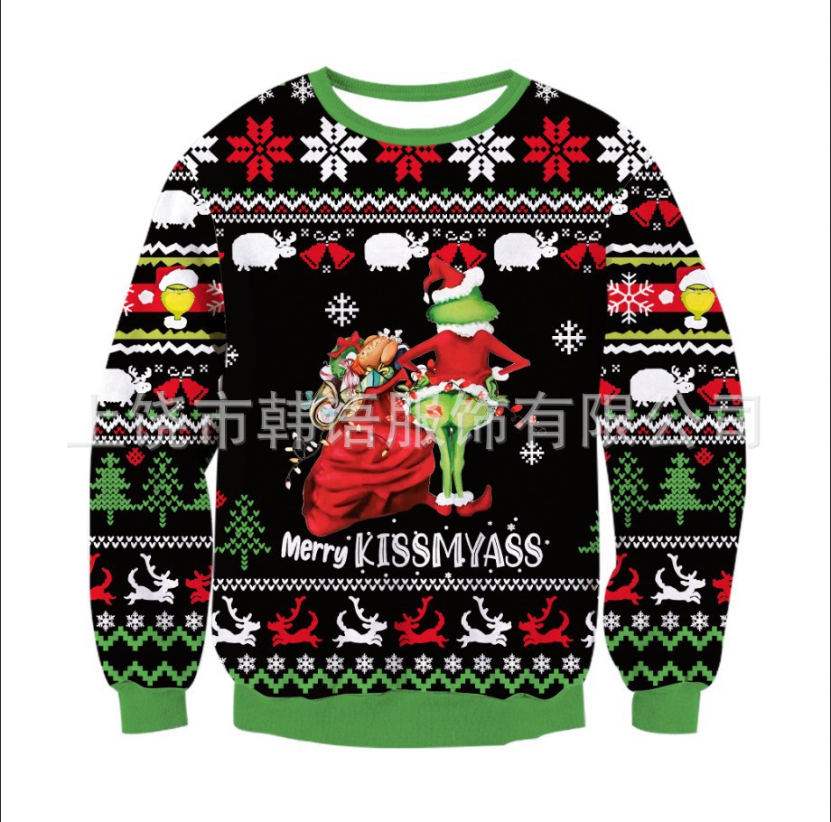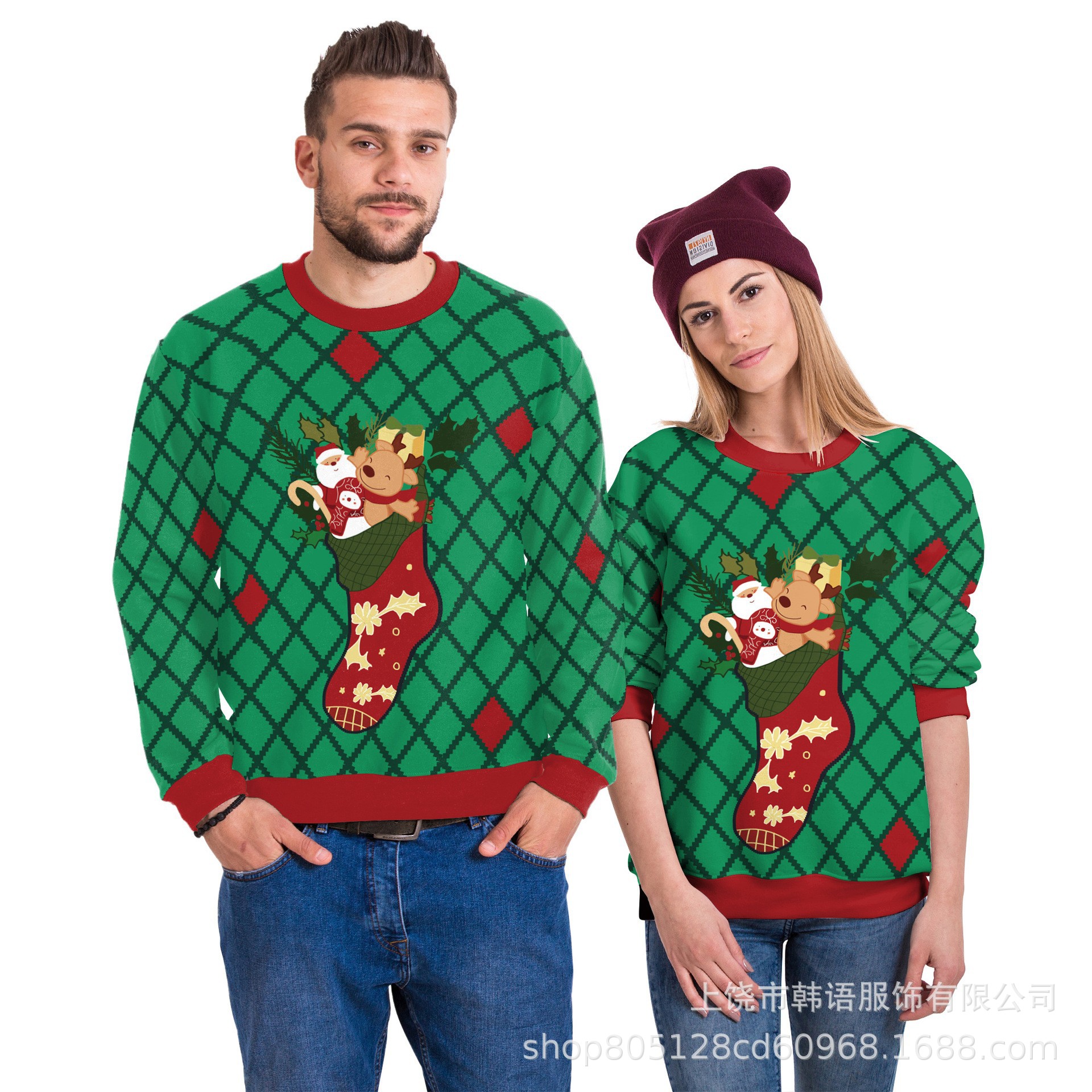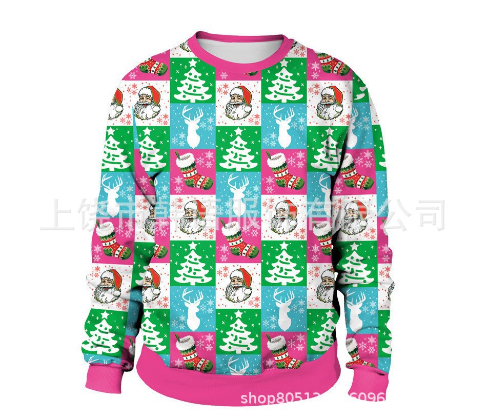 국경 간 대외 무역 크리스마스 새로운 라운드 넥 스웨터 캐주얼 3D 인쇄 산타 클로스 연인 유럽과 미국 공장 직판스토어 가기
