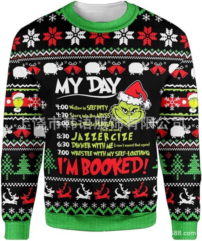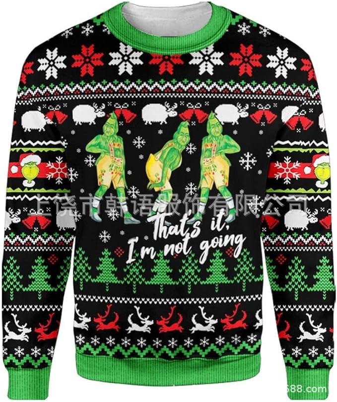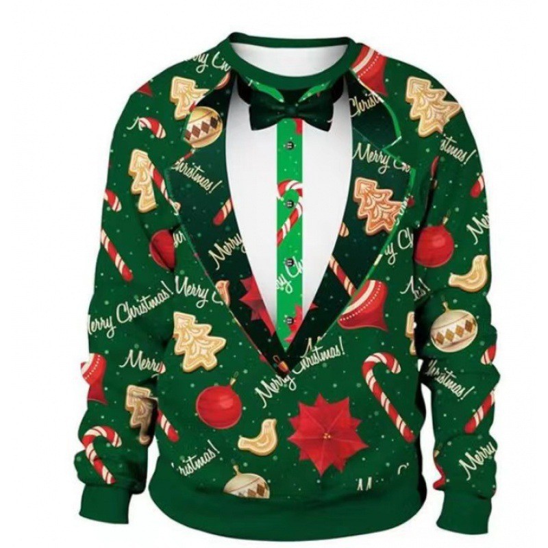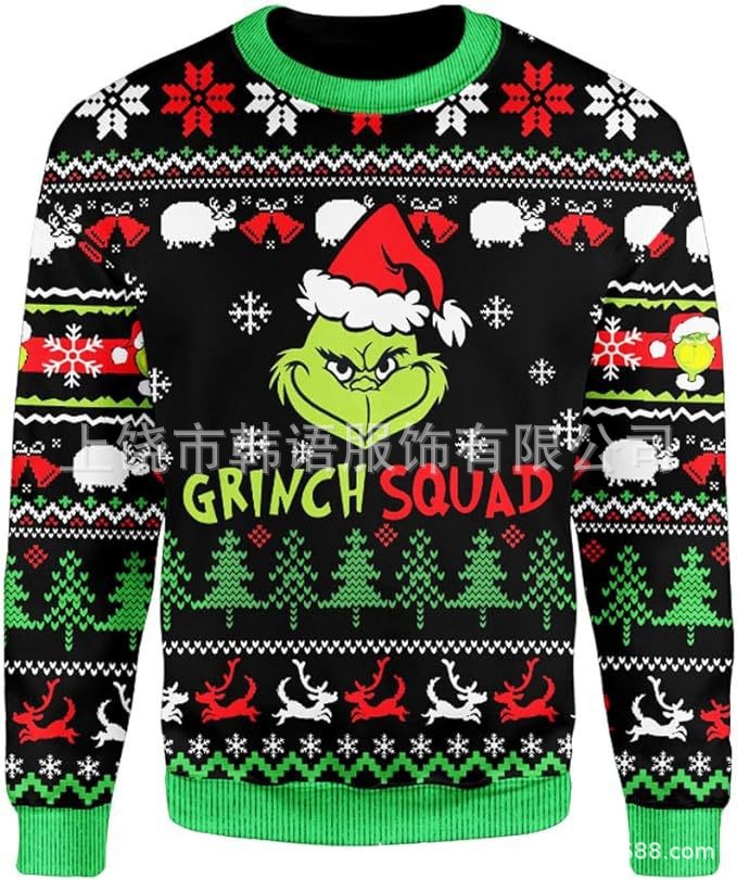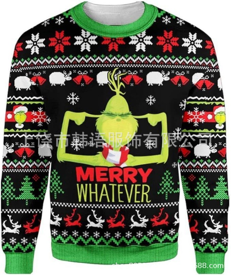 圣诞节圆领卫衣休闲搞怪圣诞老人跨境外贸男士3D数码印花情侣服装
