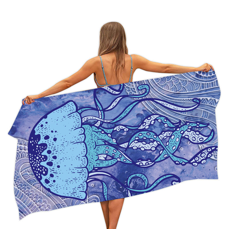 지도에 목욕타월 비치 타월 도매 흡수성 속건성 타월 직사각형 비치 매트 디지털 인쇄 목욕타월 숄