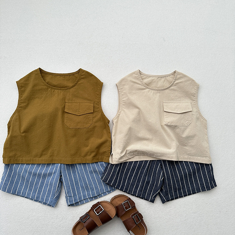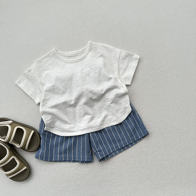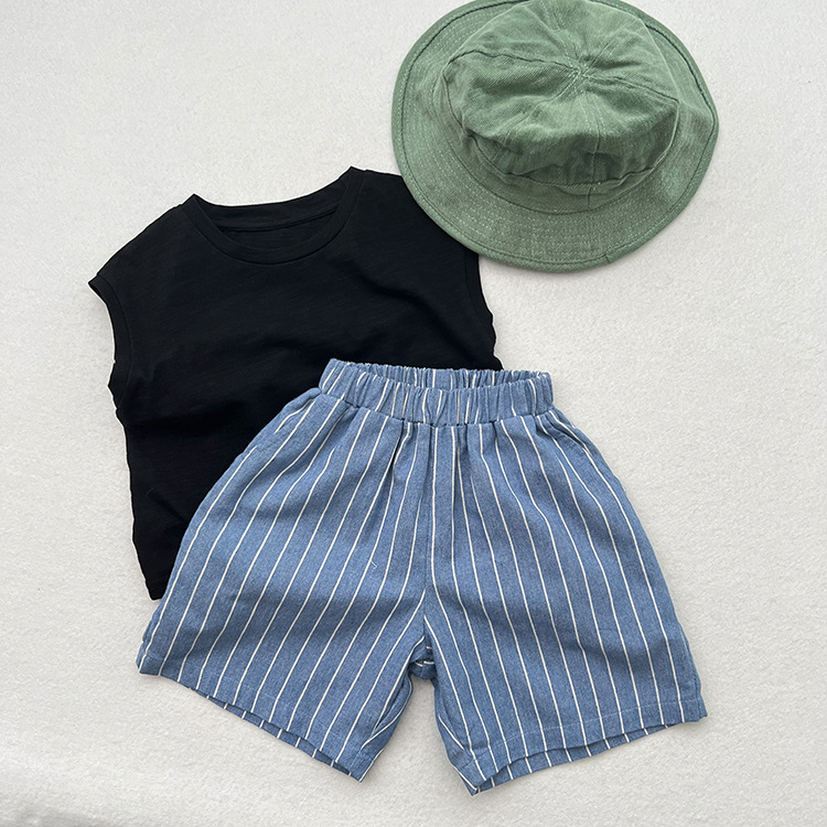 얇고 부드러운 통기성 ~ 여름 새로운 소년 소녀 한국 세로 줄무늬 바지 아기 유치원 캐주얼 바지면과 린넨 바지스토어 가기