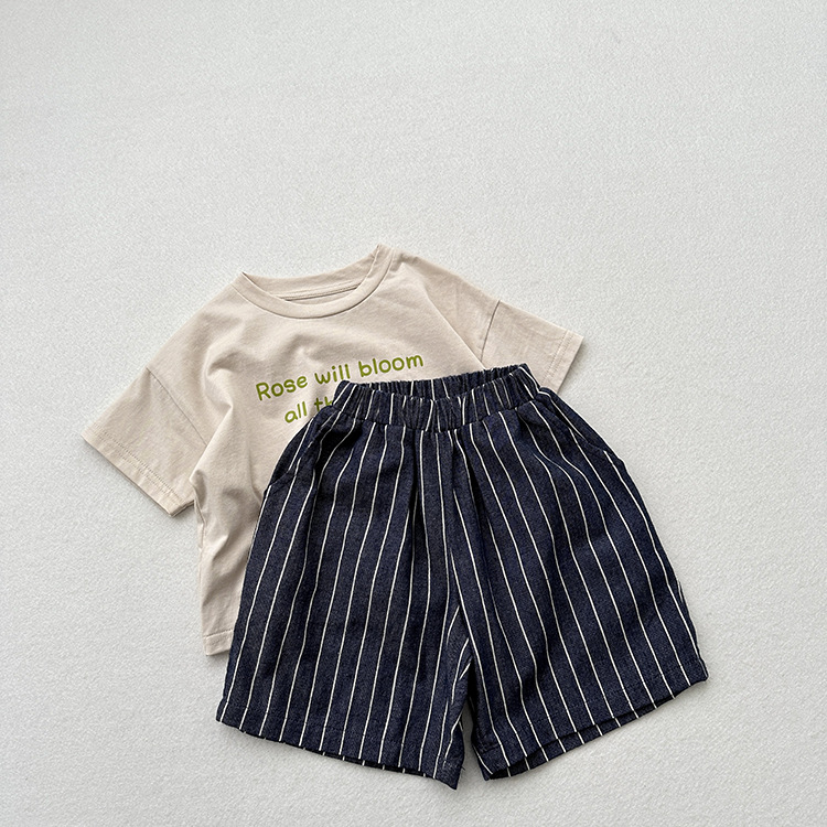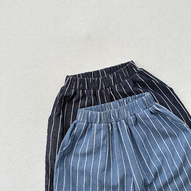 얇고 부드러운 통기성 ~ 여름 새로운 소년 소녀 한국 세로 줄무늬 바지 아기 유치원 캐주얼 바지면과 린넨 바지