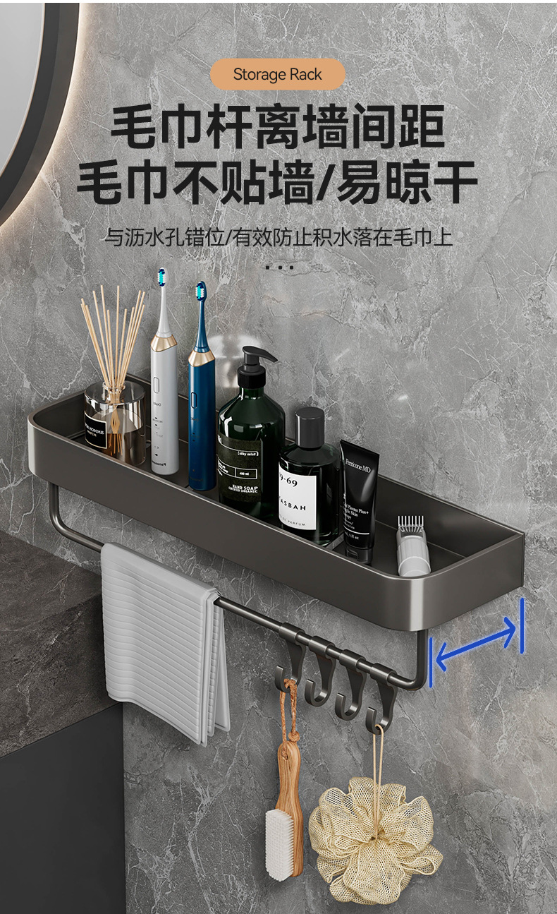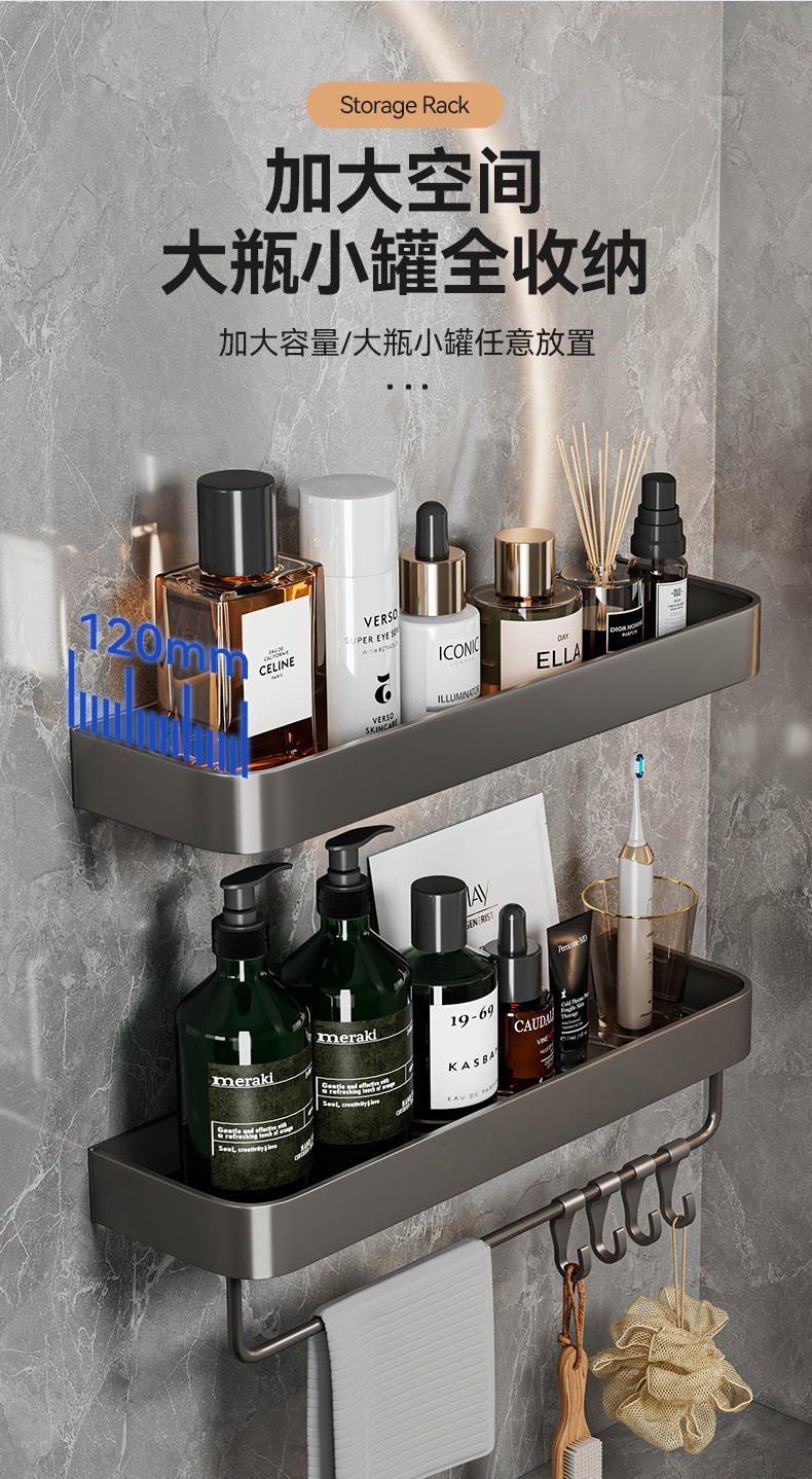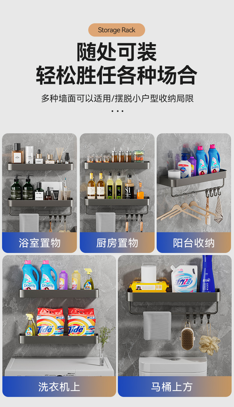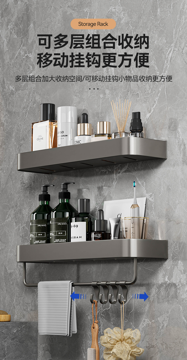 욕실 화장실 수납 선반 벽걸이형 세면대 펀치 없는 욕실 벽 화장실 수납 걸이