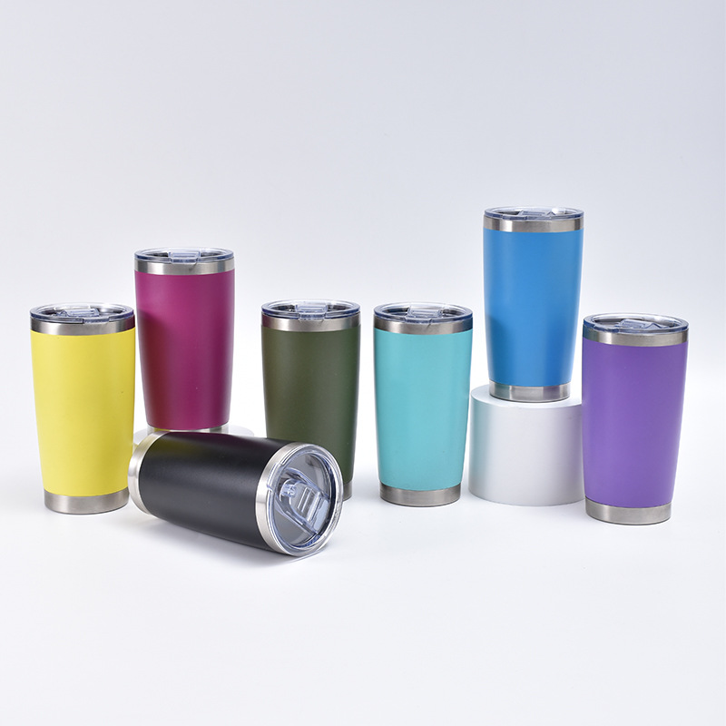 맞춤형 20 온스 스프레이 플라스틱 자동차 컵 304 스테인레스 스틸 더블 레이어 진공 보온병 컵 자동차 휴대용 아이스 컵 재고