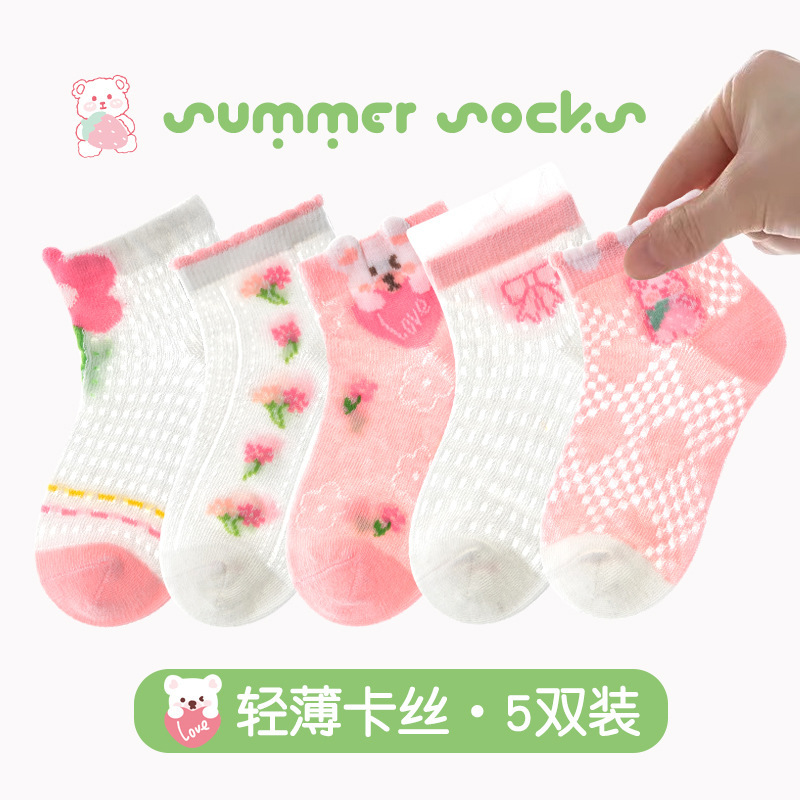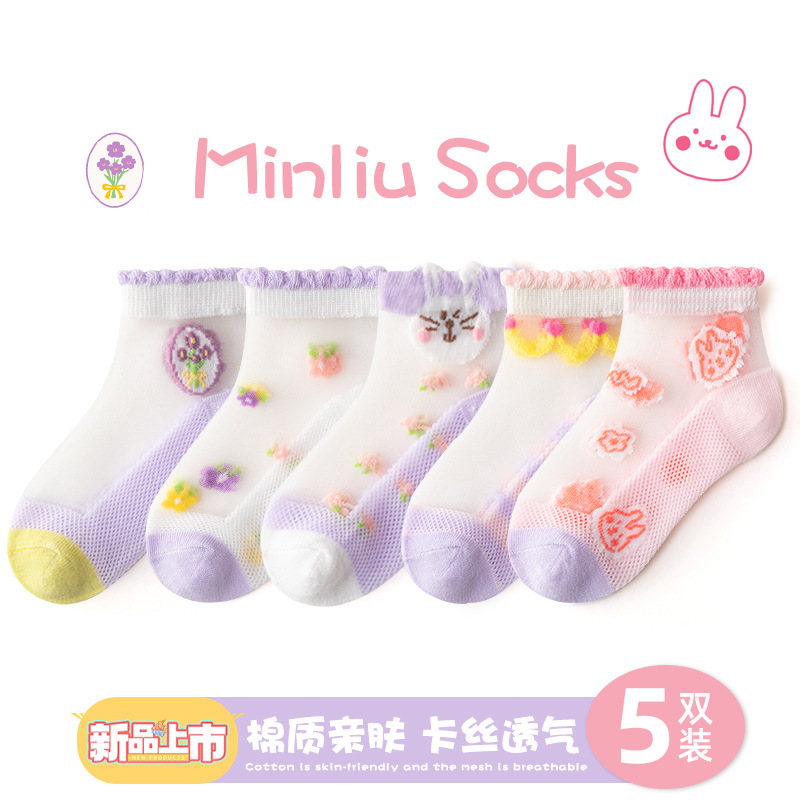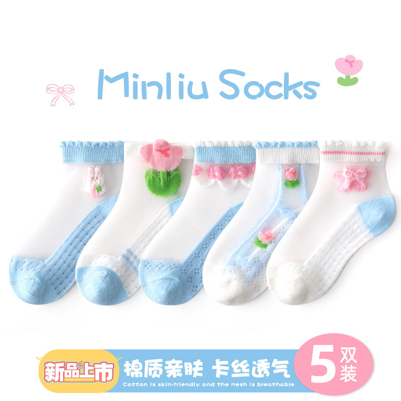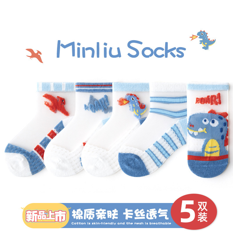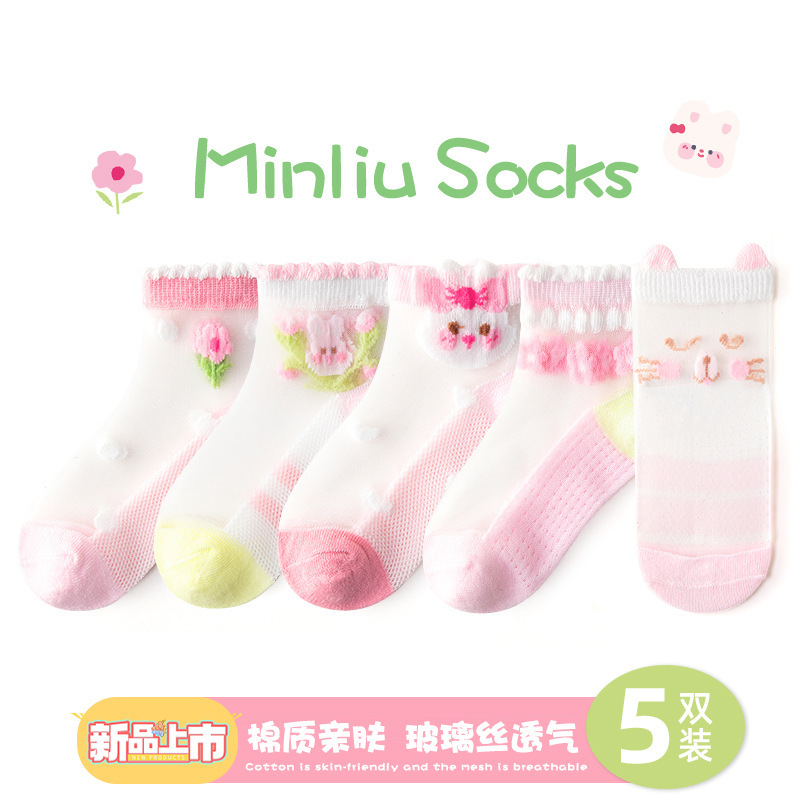 어린이 양말 어린이 양말 양말 여름 가벼운 유리 실크 양말 소녀 핑크 소년 만화 보트 양말 도매