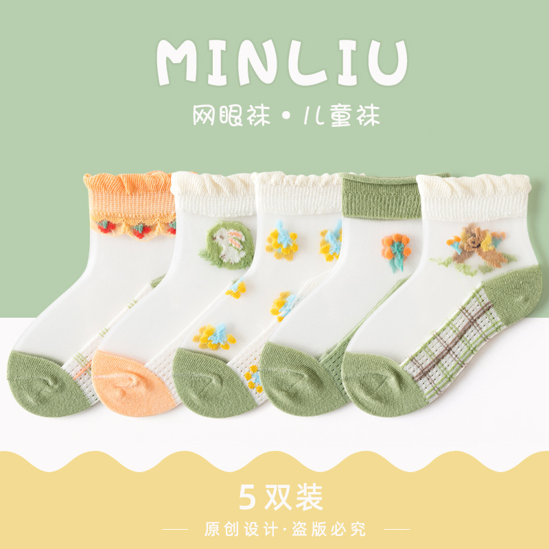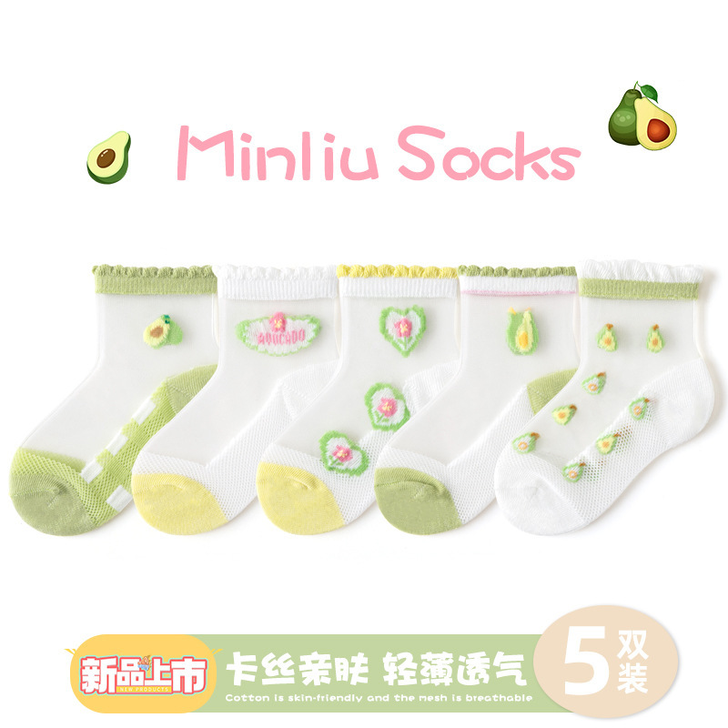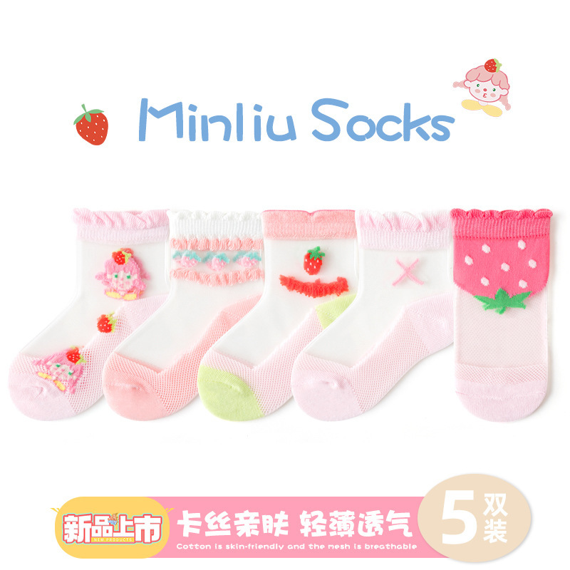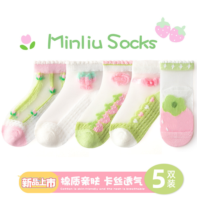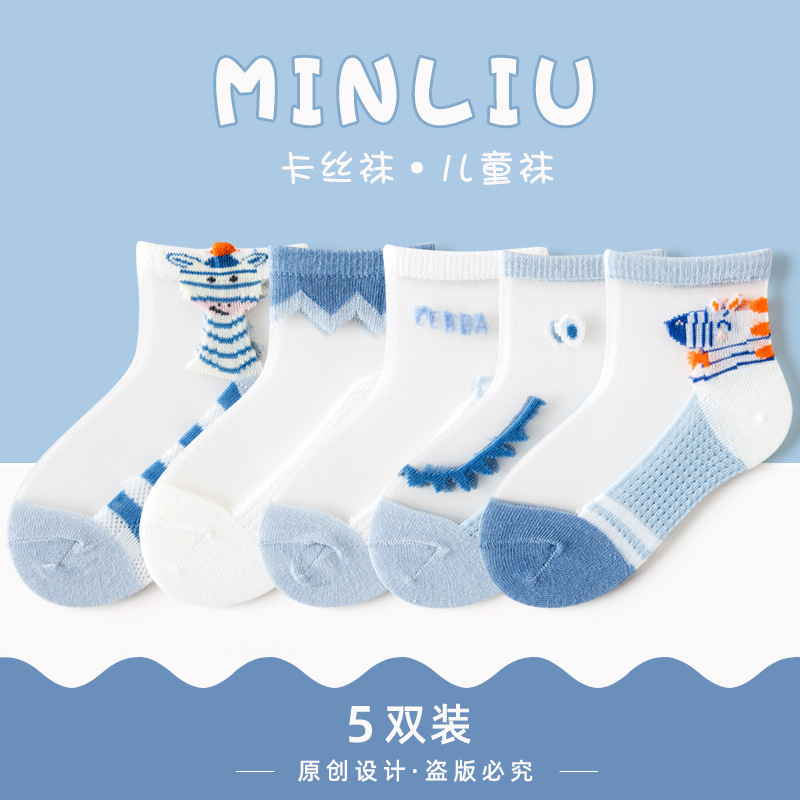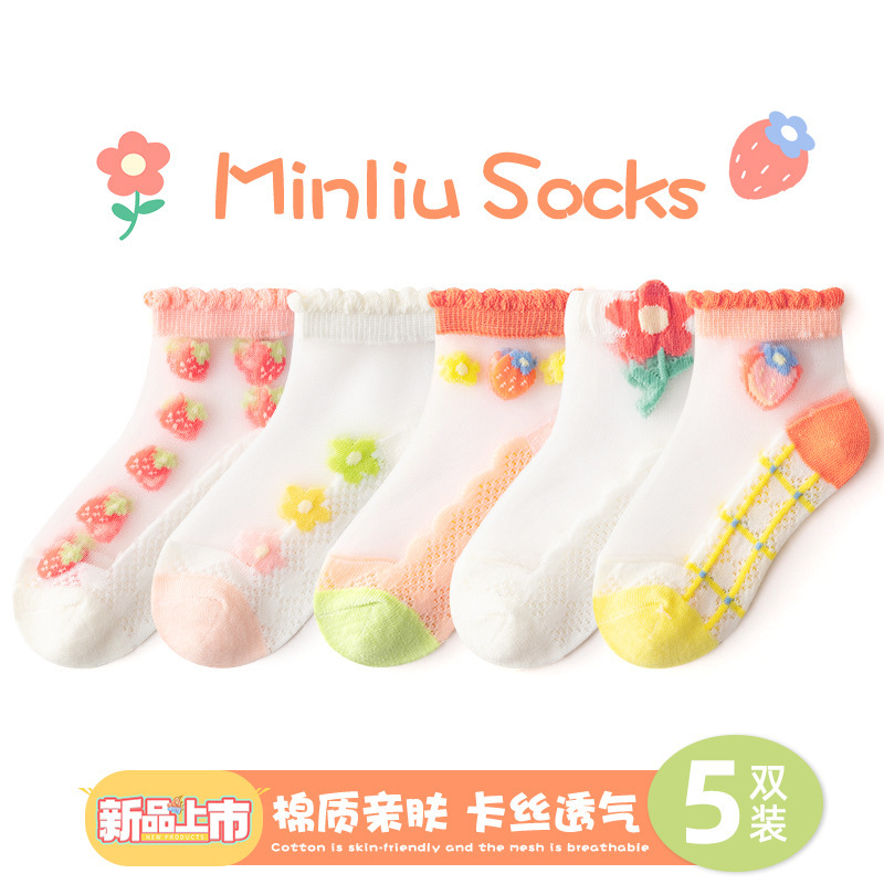 어린이 양말 어린이 양말 양말 여름 가벼운 유리 실크 양말 소녀 핑크 소년 만화 보트 양말 도매