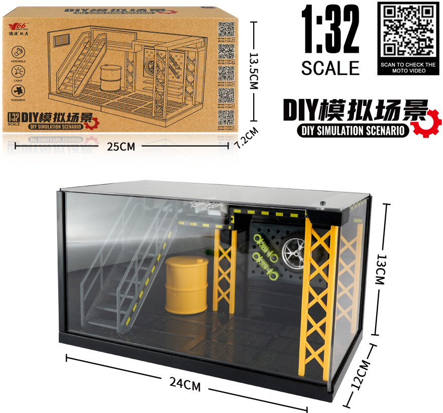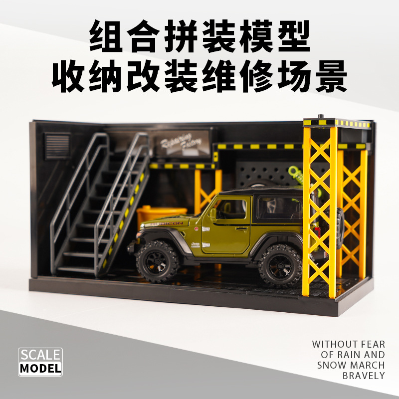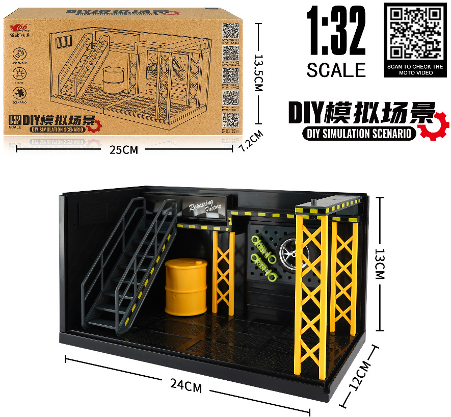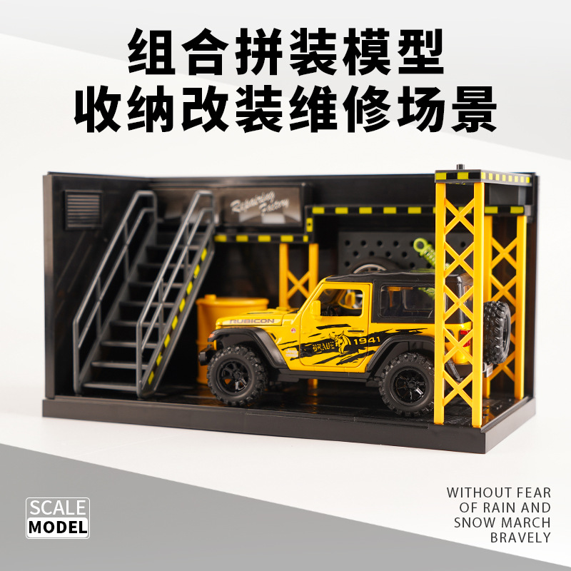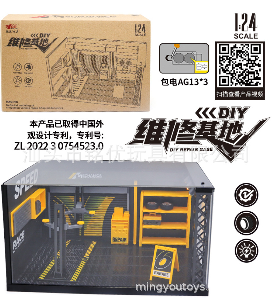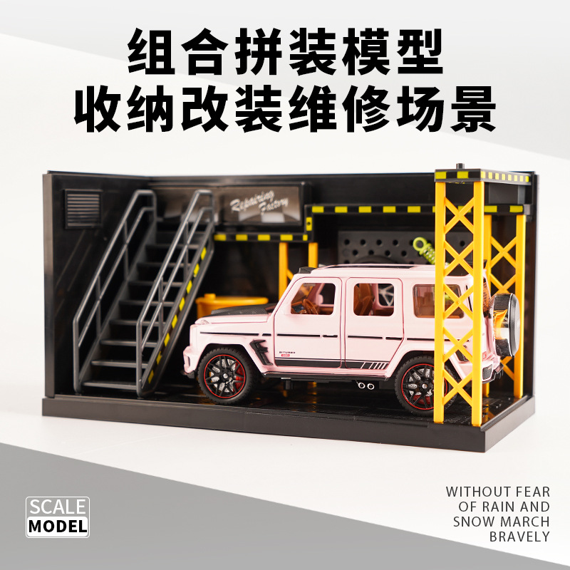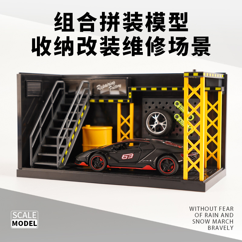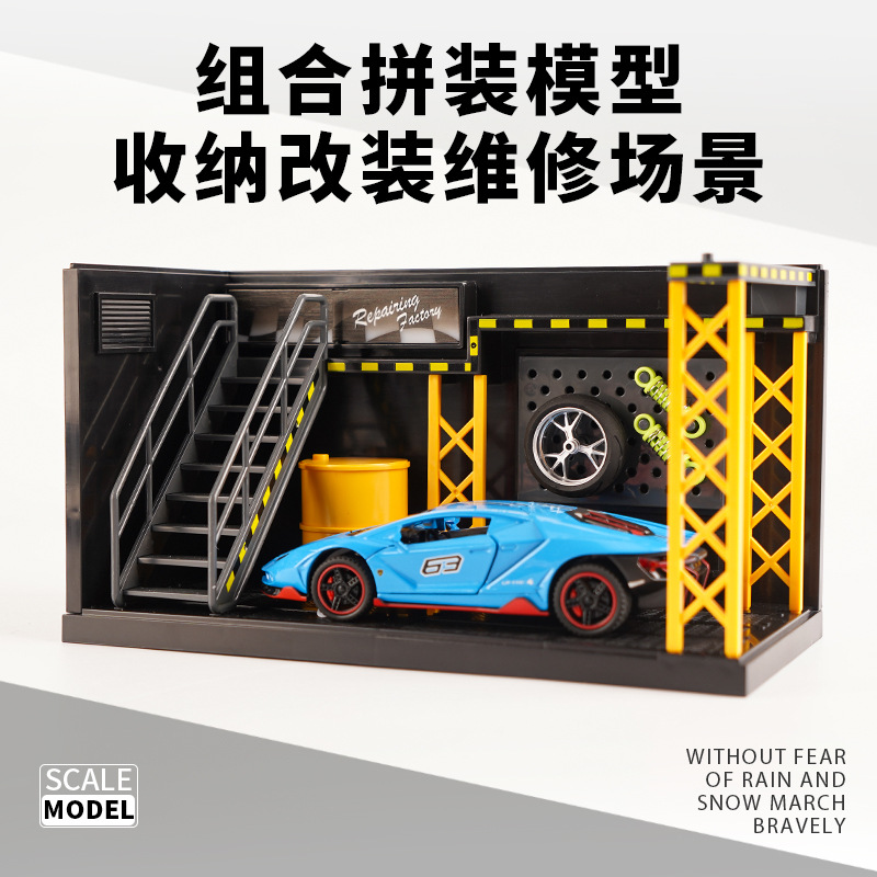 Mingyuan 1:24 주차 공간 경합금 DIY 장면 수리 공장 모형 저장 주차장 소년 장난감
