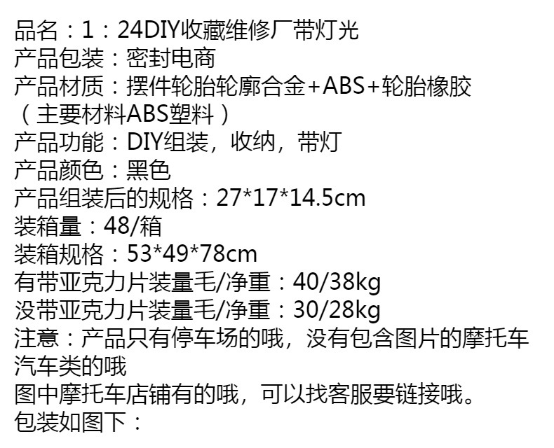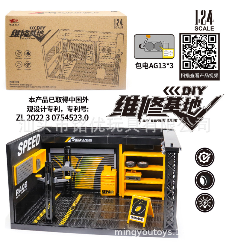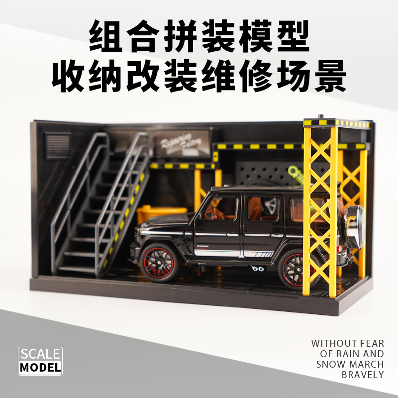 Mingyuan 1:24 주차 공간 경합금 DIY 장면 수리 공장 모형 저장 주차장 소년 장난감스토어 가기