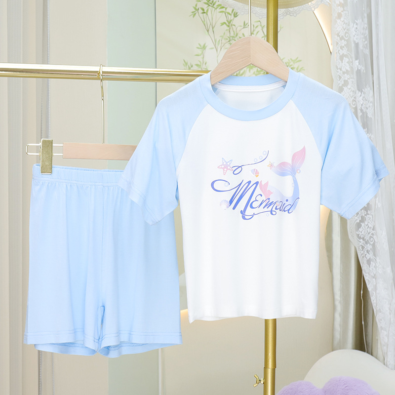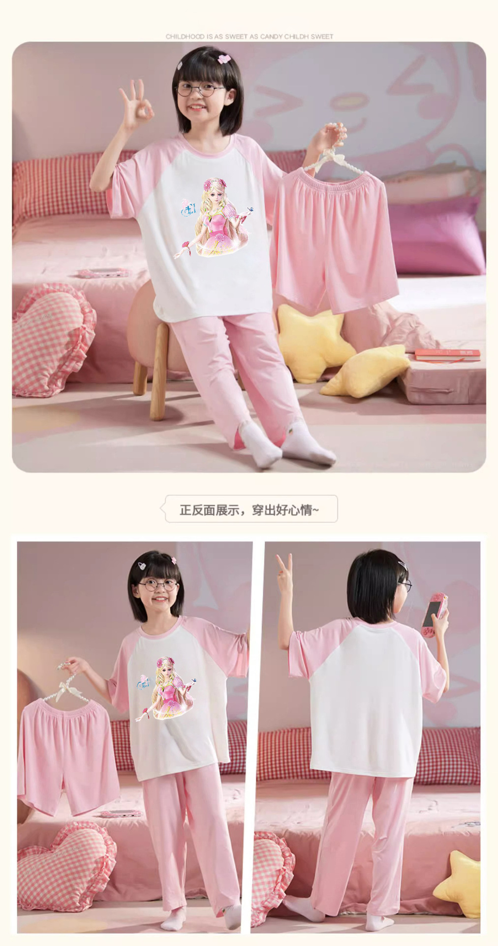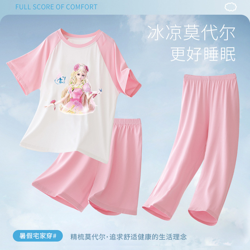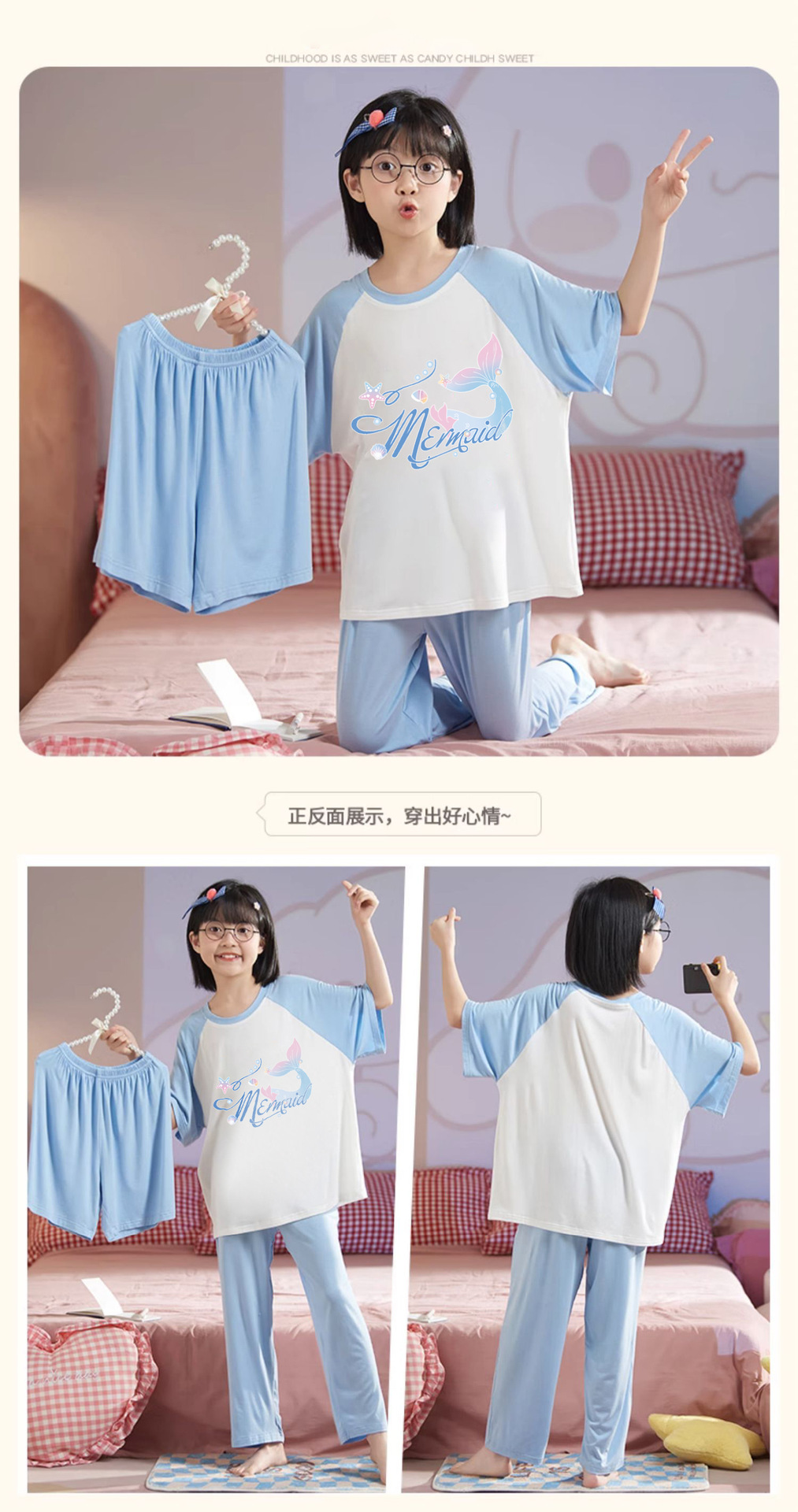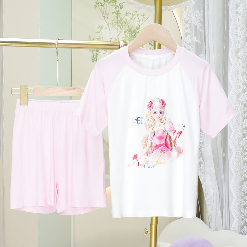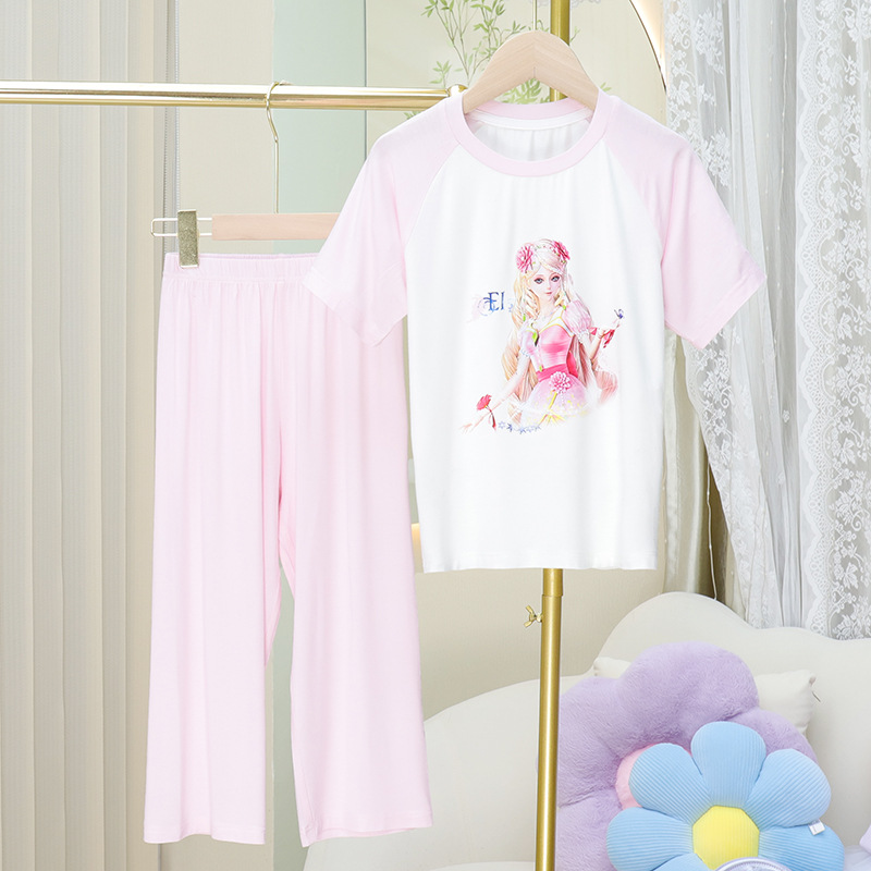 2024 여름 신상 여아 모달 홈웨어 세트 어린이용 가볍고 통기성 좋은 잠옷 투피스 세트 만화 그림스토어 가기